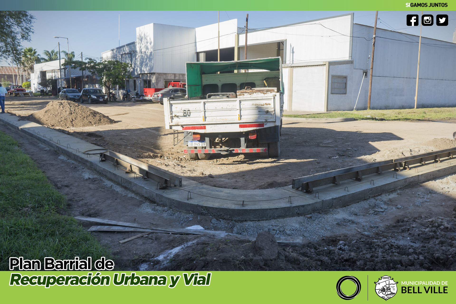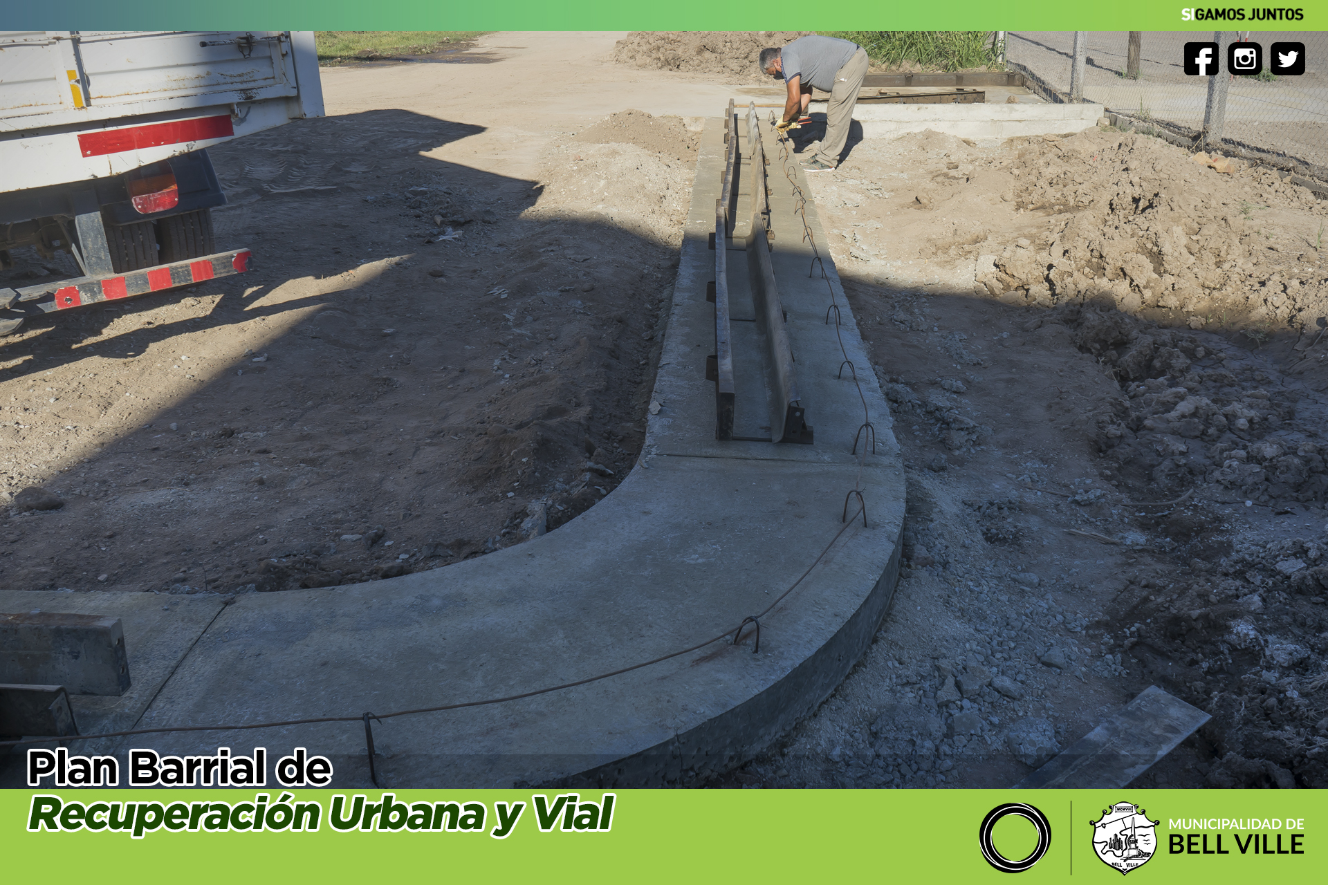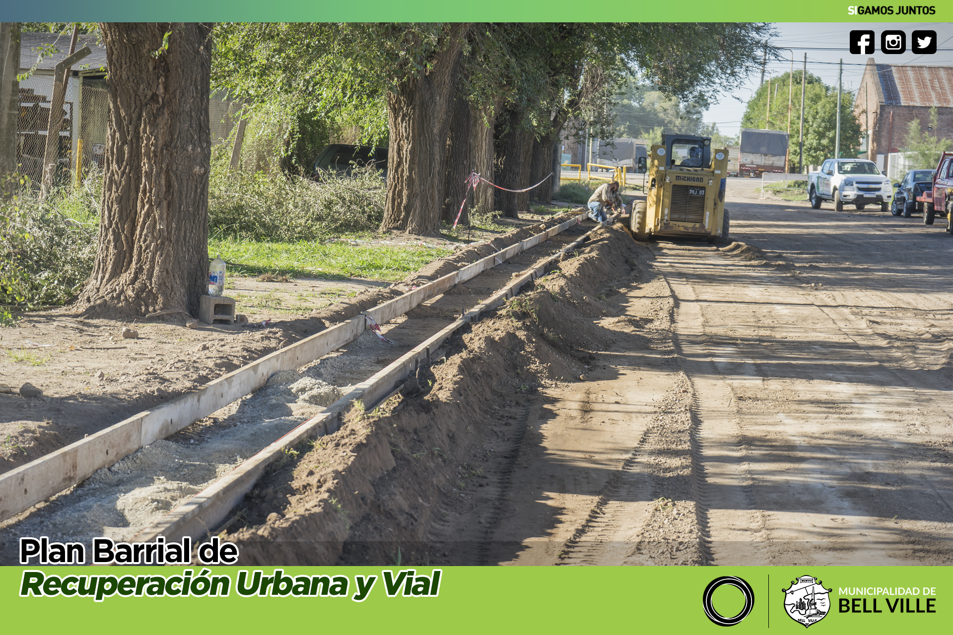 Se trabaja en la obra de cordón cuneta de calle Junín, en el barrio Villa Carlitos.