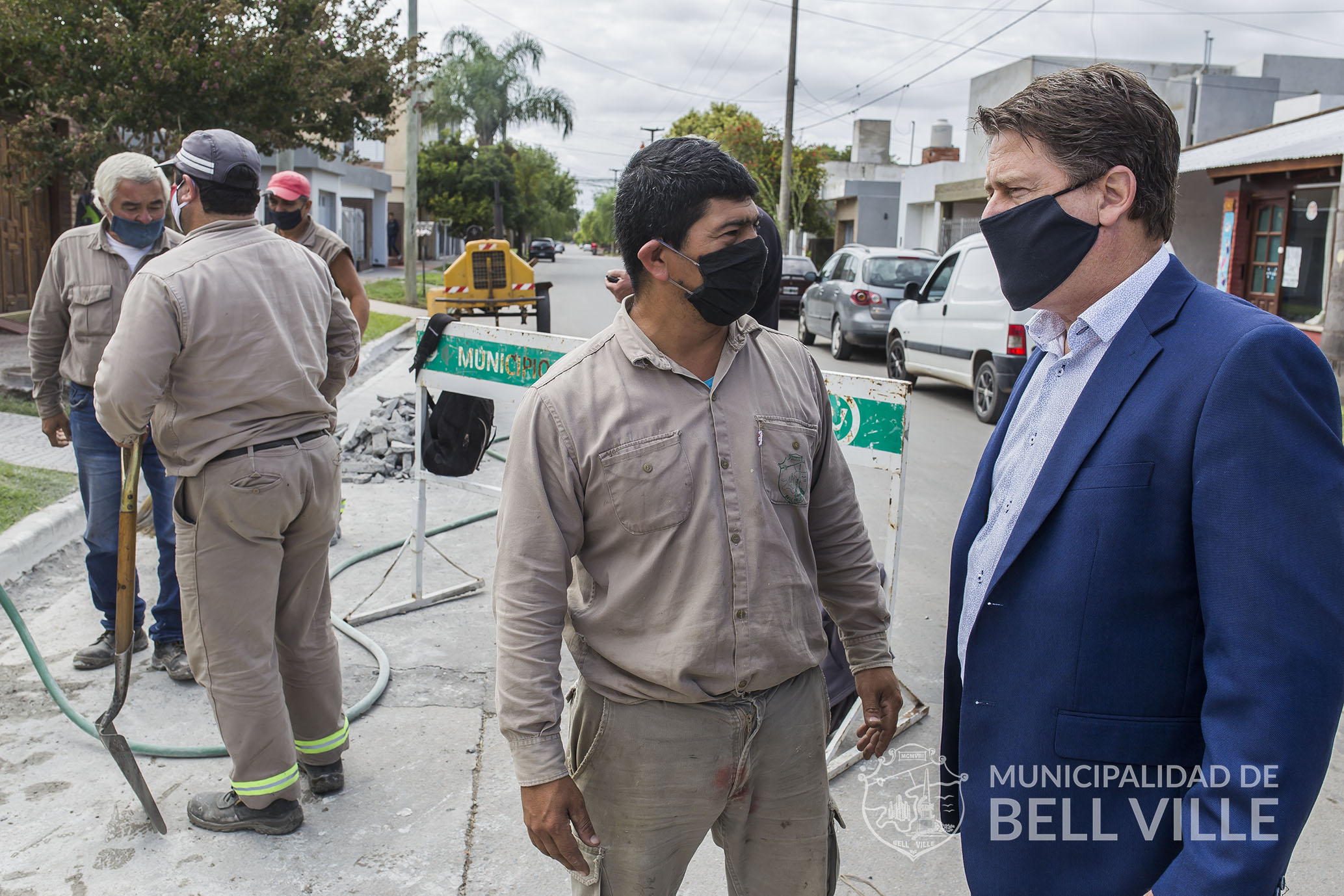 Como lo hace en sus recorridas periódicas, el intendente dialoga con los empleados municipales que cumplen con la tarea y con los vecinos.