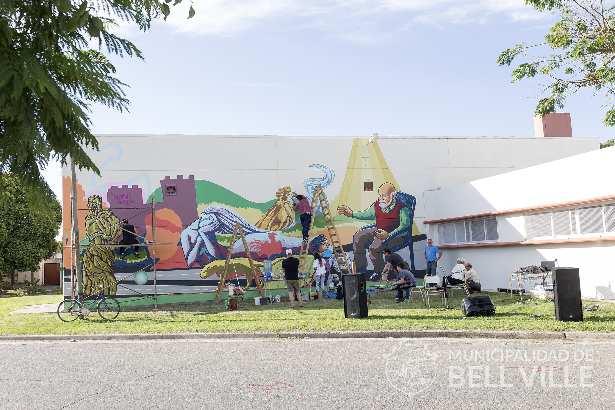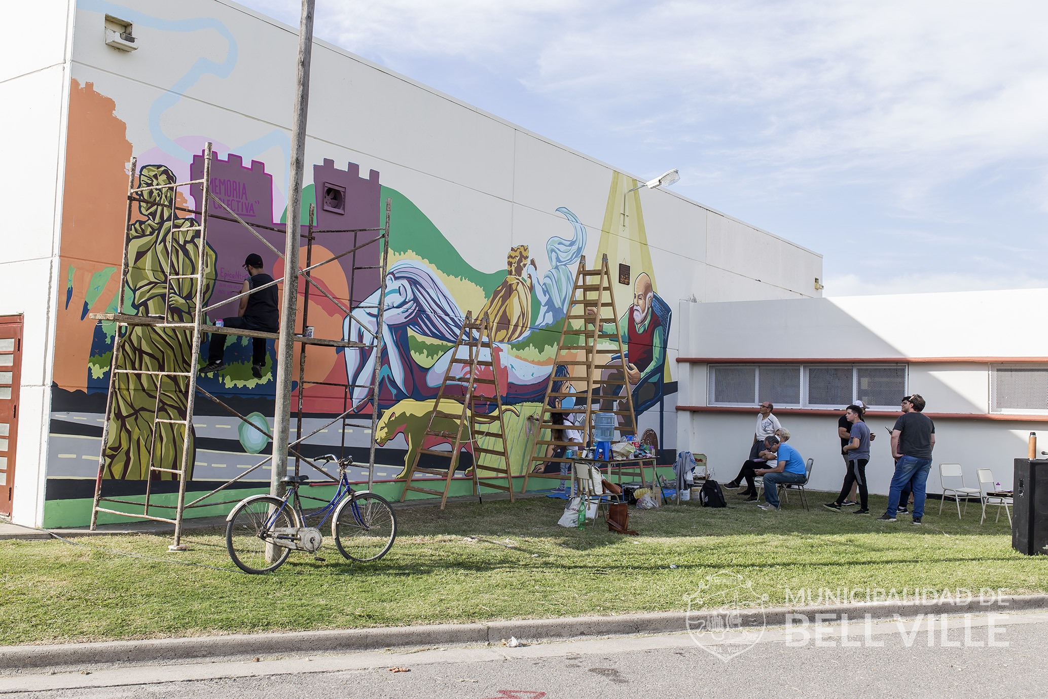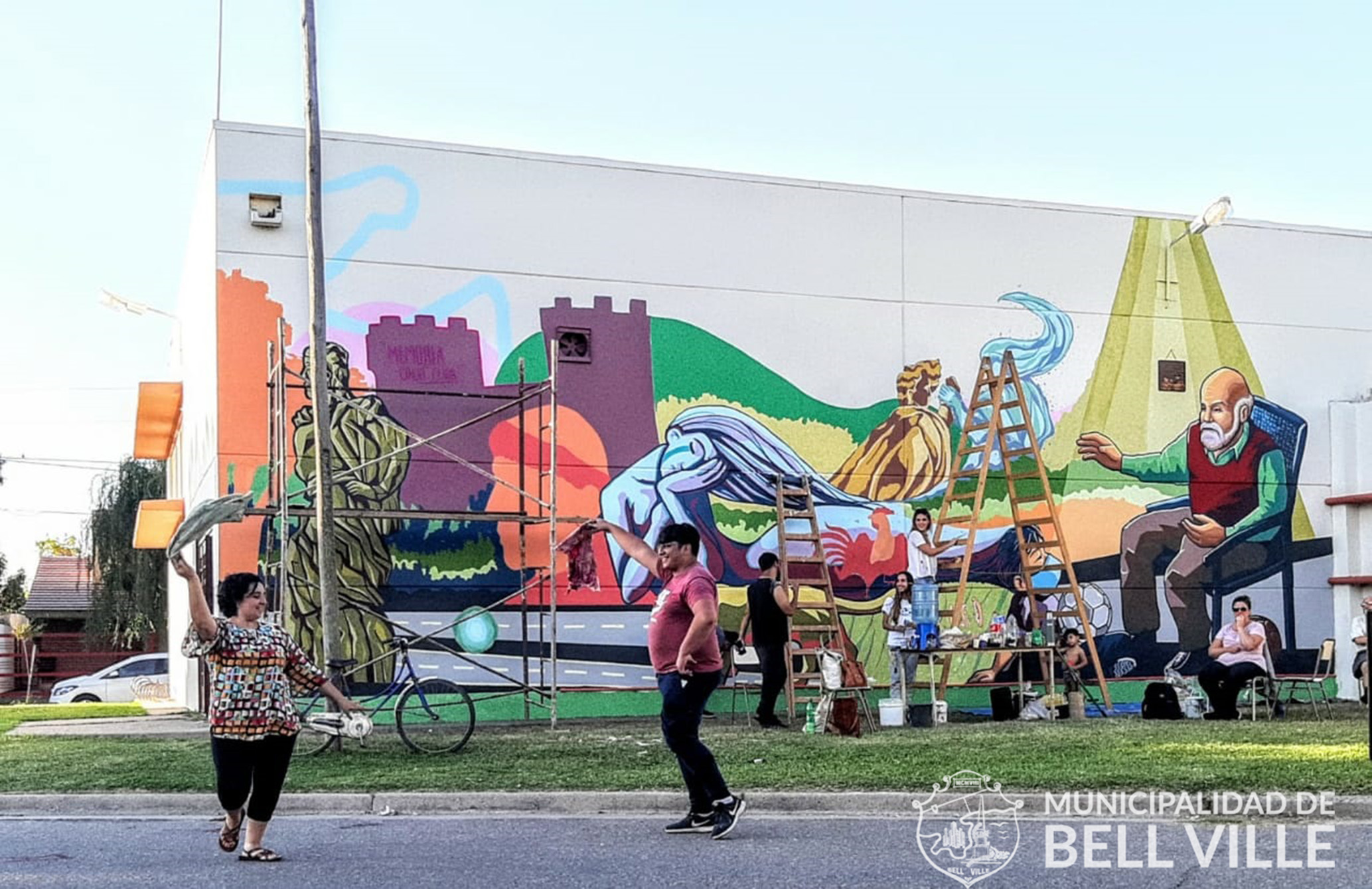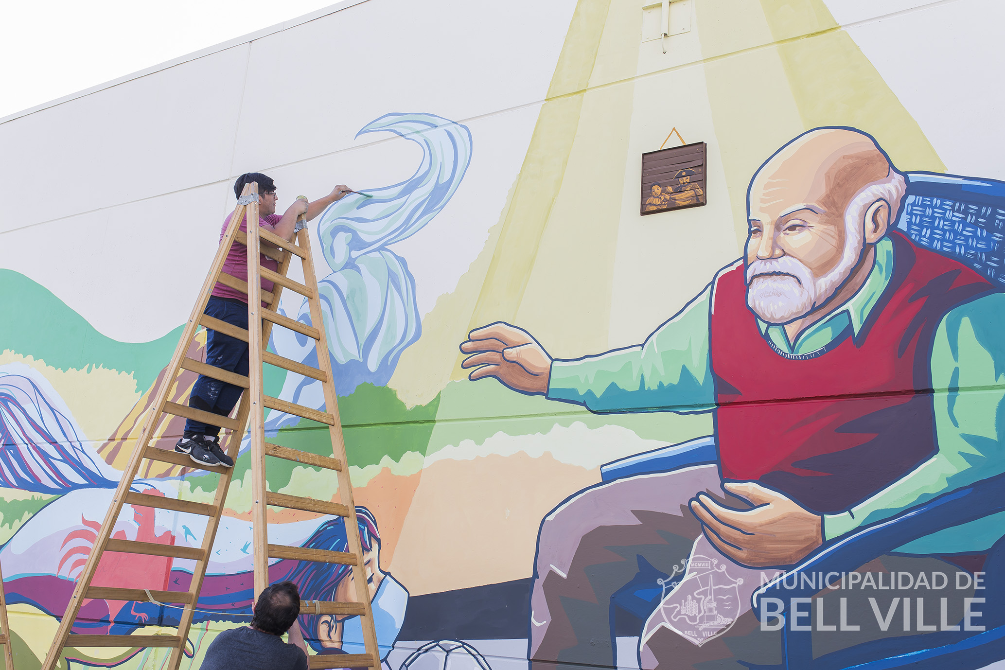 Para el mural el municipio aportó también la pintura y otros elementos para facilitar el trabajo, mientras que la temática fue elegida por los propios bellvillenses e interpretada cabalmente por Yapura y Arévalo.