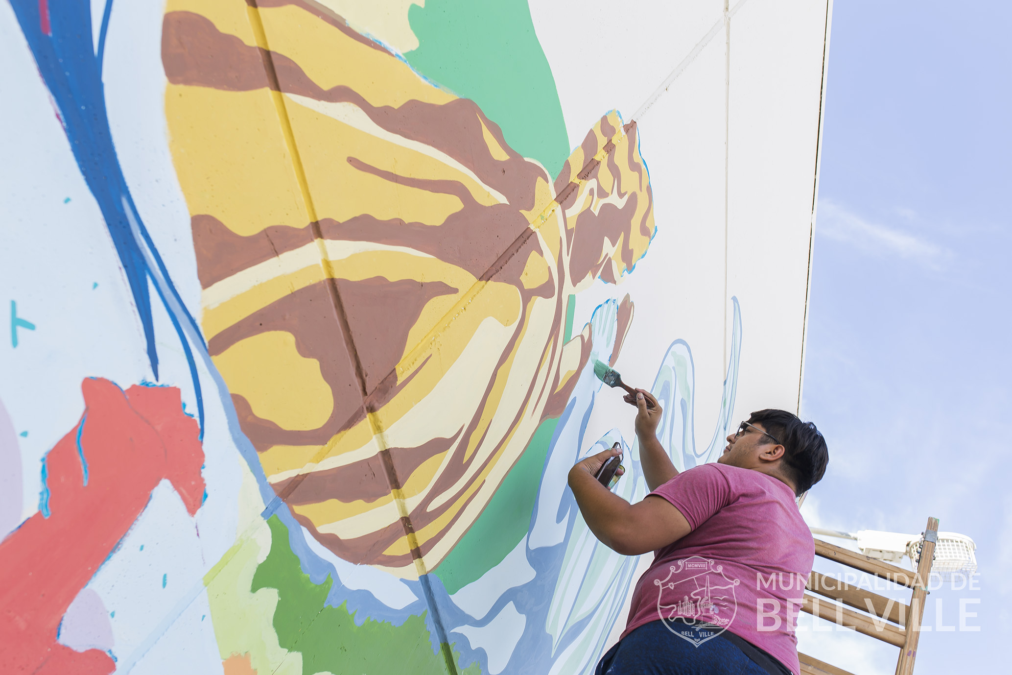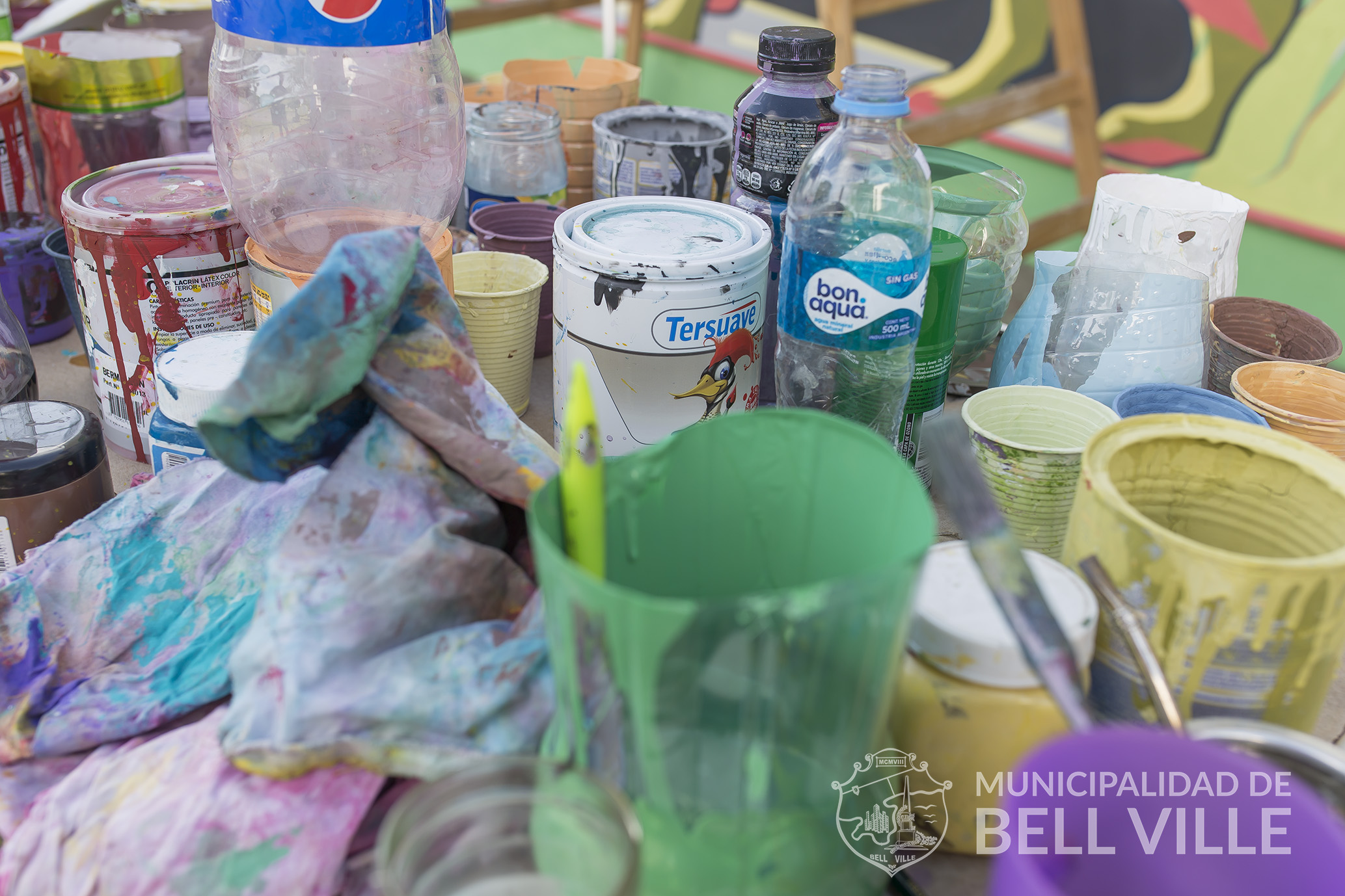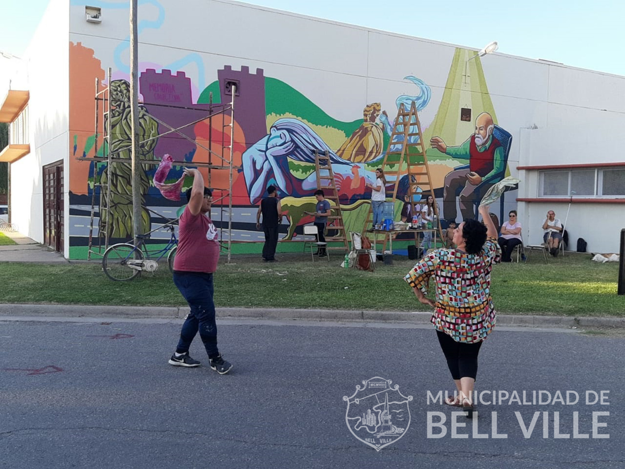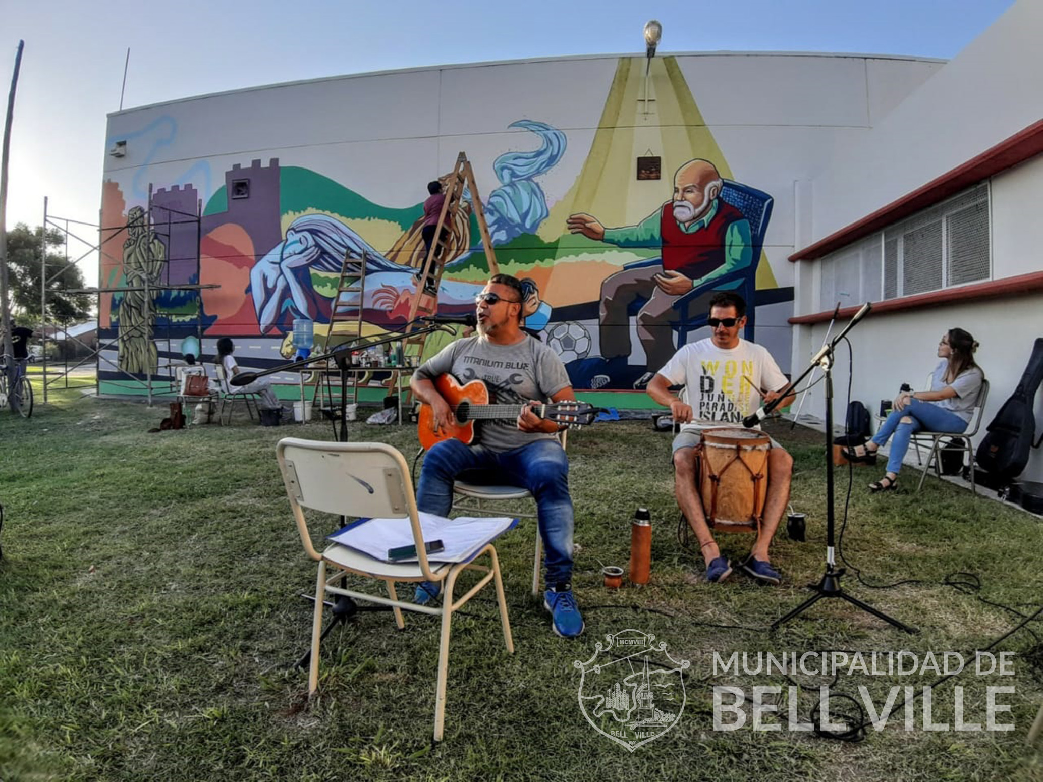 Para el mural el municipio aportó también la pintura y otros elementos para facilitar el trabajo, mientras que la temática fue elegida por los propios bellvillenses e interpretada cabalmente por Yapura y Arévalo.