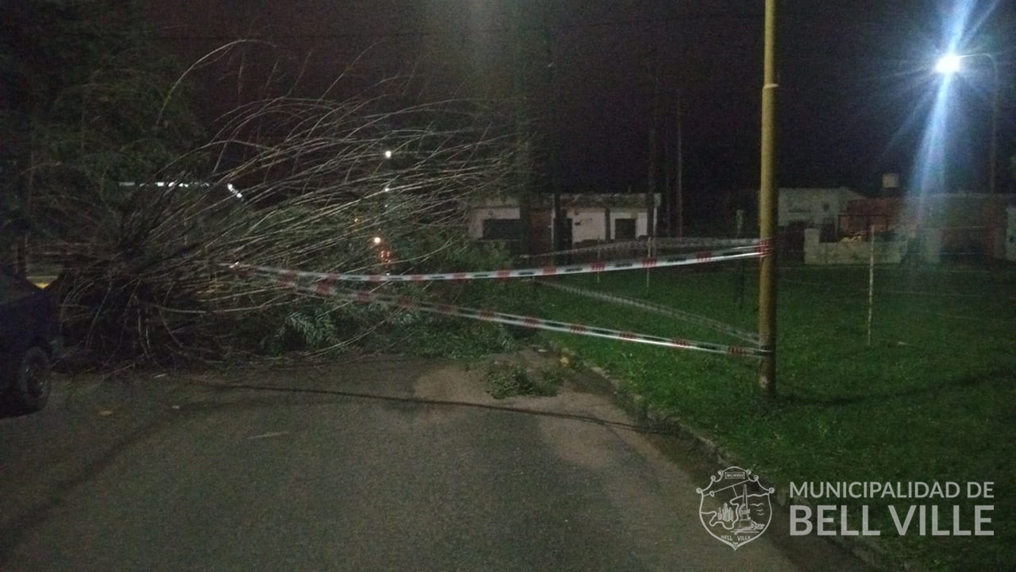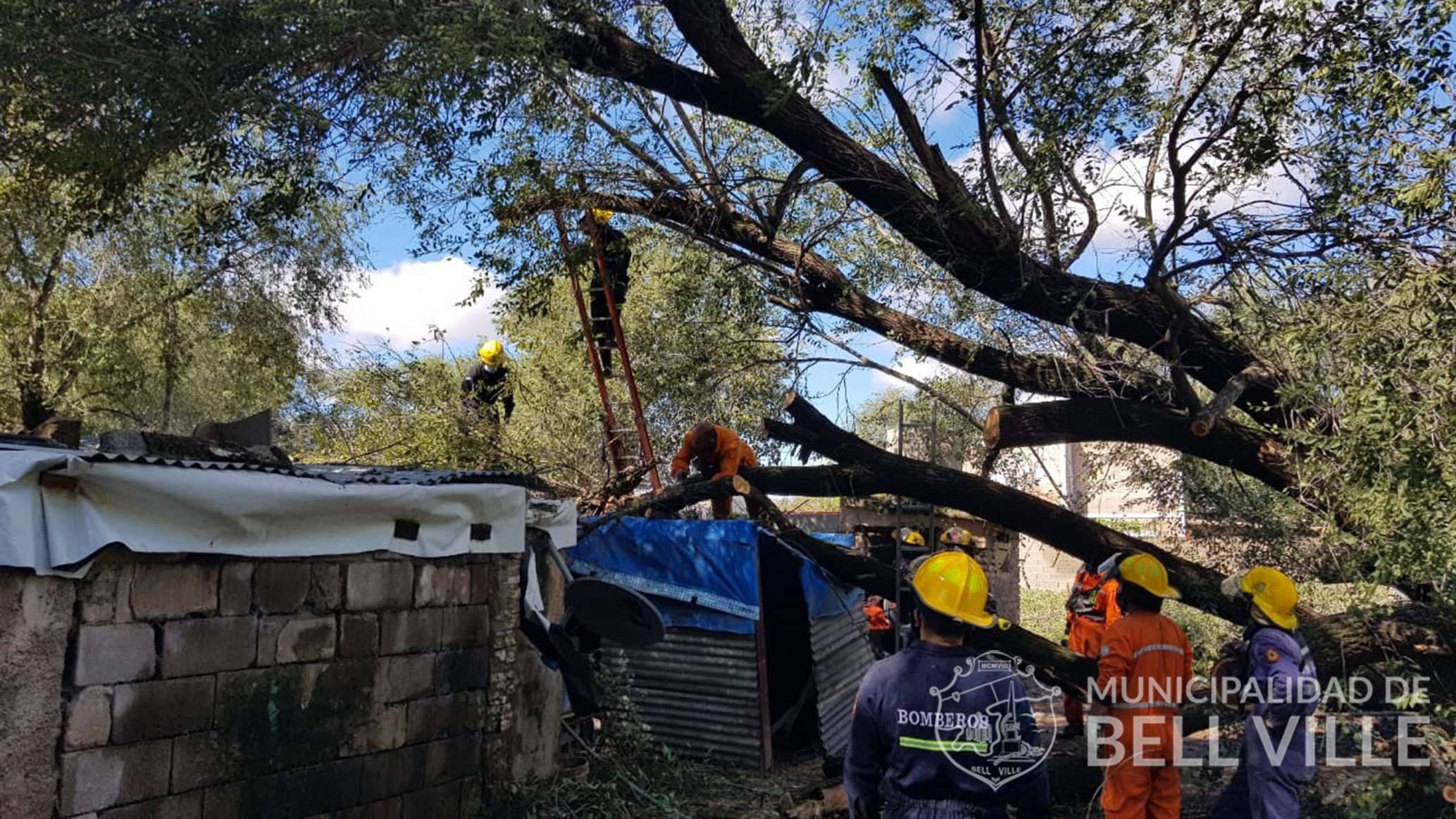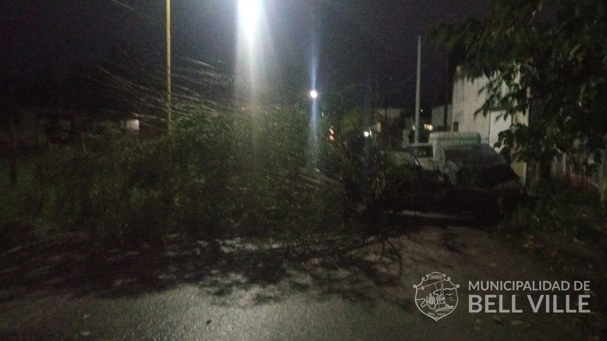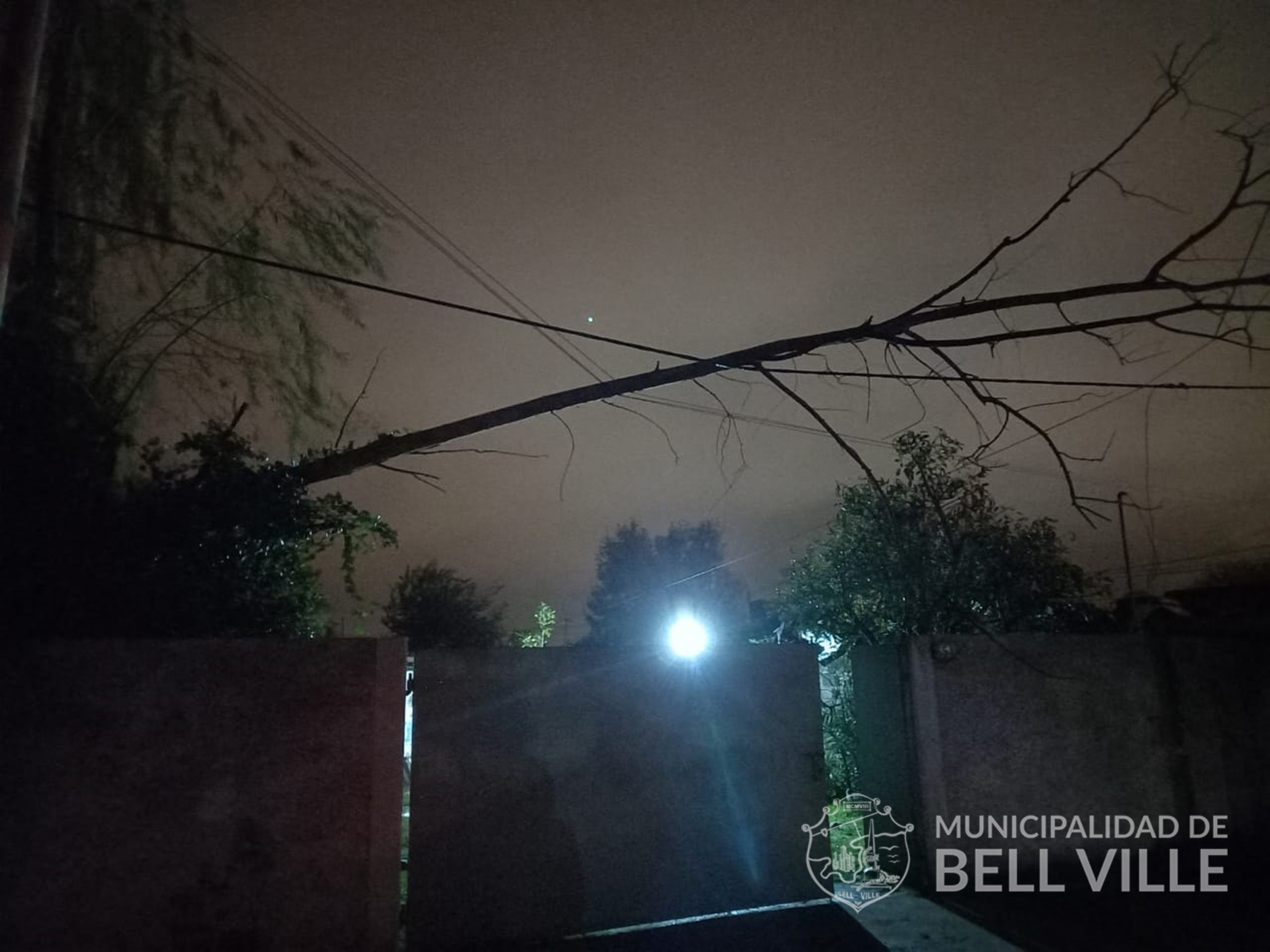 En las tareas de remoción de árboles y ramas intervinieron bomberos voluntarios y personal de diferentes áreas municipales (Obras, Servicios Públicos y Tránsito), bajo la coordinación de Defensa Civil.