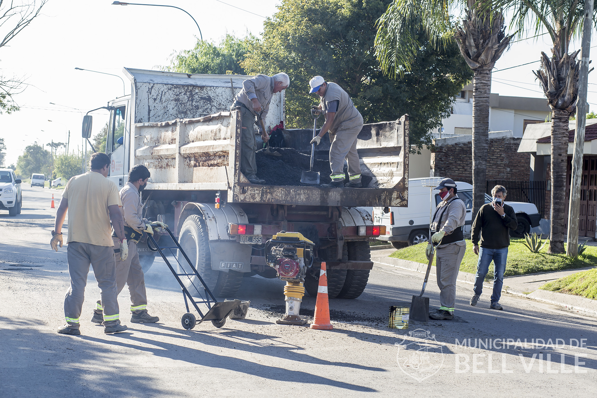 La actividad comenzó en una primera etapa, con las avenidas Faustino Molina y gran parte de España. Ahora con la llegada de más material se trabajó en calle Vélez Sarsfield y bulevar Presidente Perón, mientras que mañana el bacheo llegará a San Gerónimo.