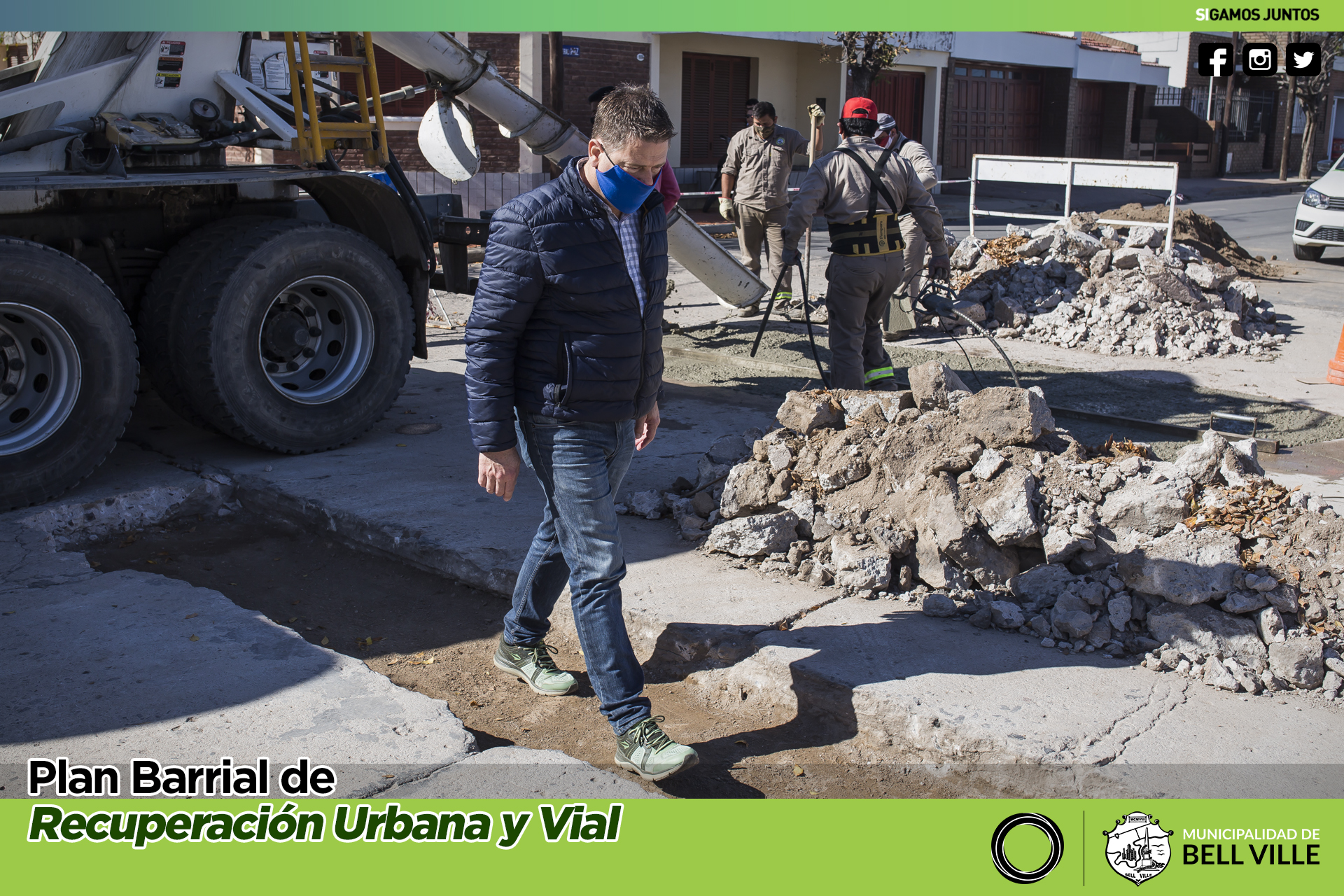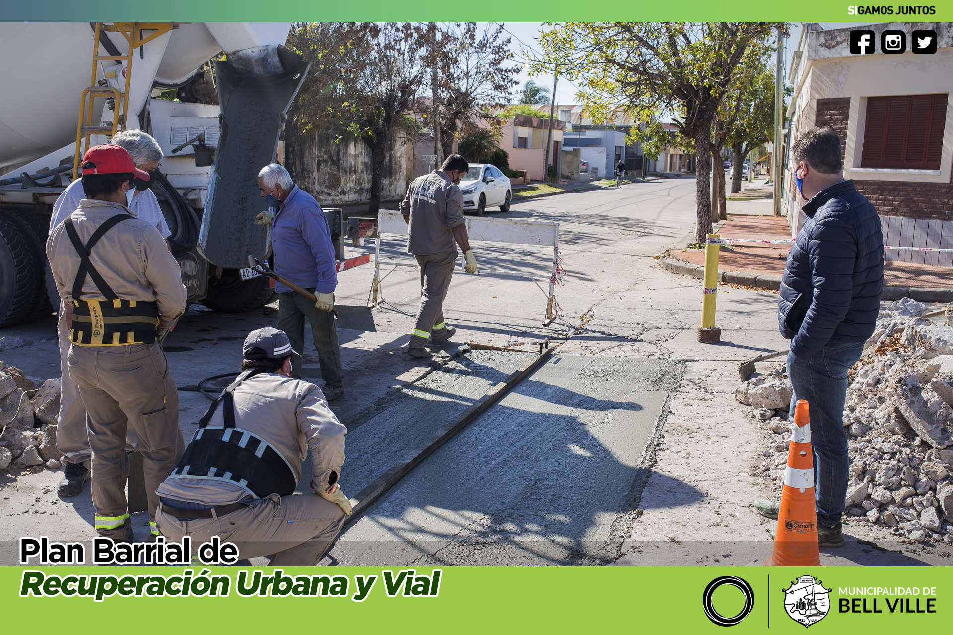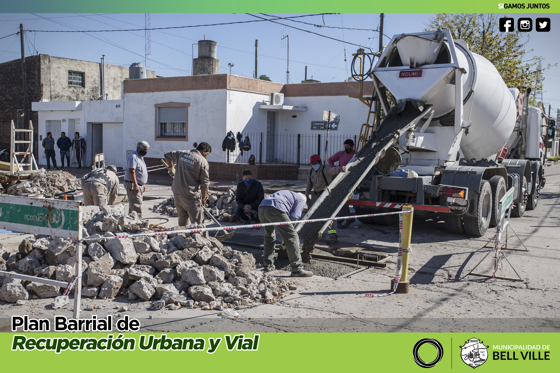 En esta oportunidad y como parte del Plan Barrial de Recuperación Urbana y Vial, el jefe municipal se hizo presente en las tareas de bacheo con hormigón en la esquina de calles Libertad y General Paz.