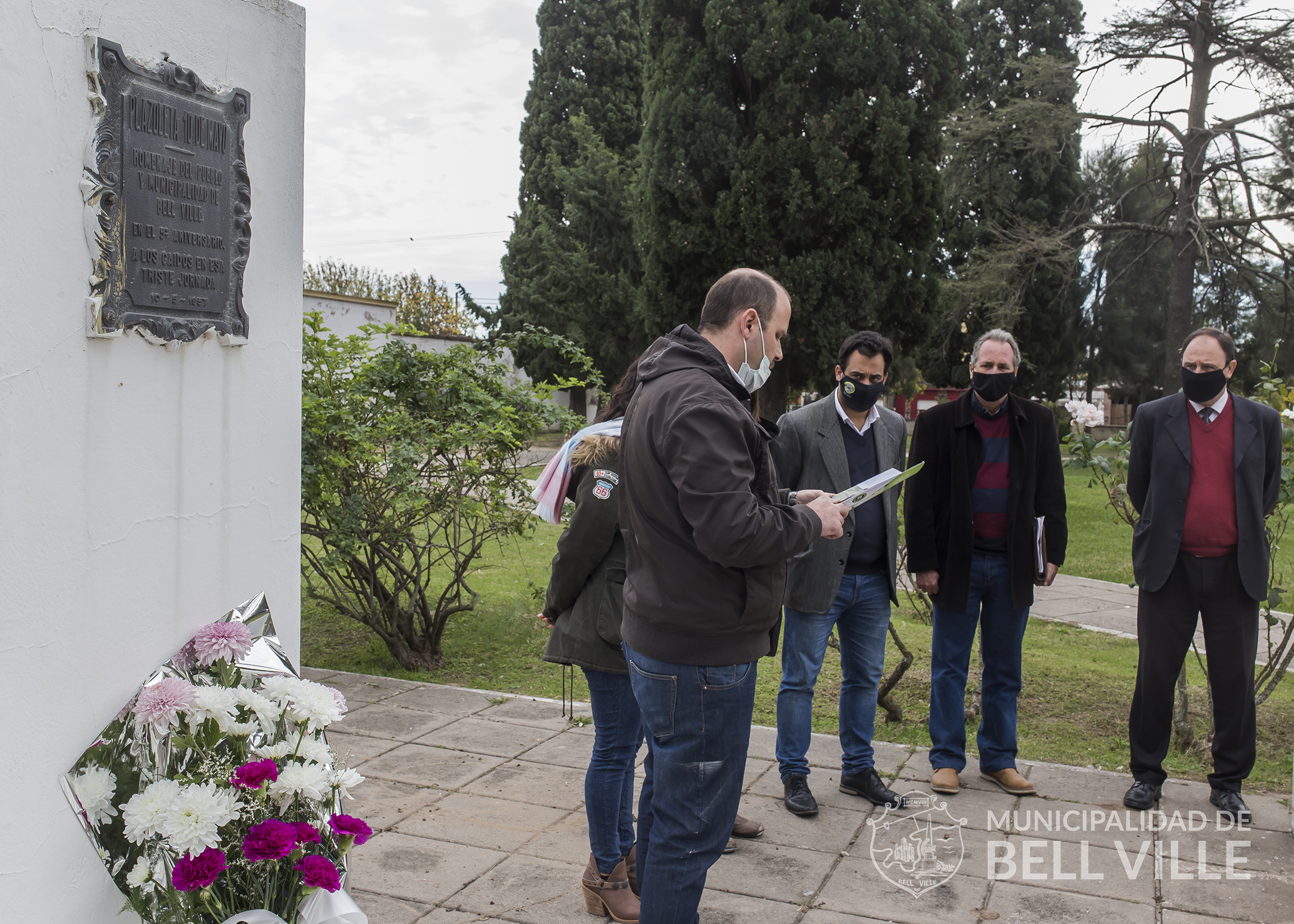 Los secretarios de Gobierno y de Coordinación de Gabinete, Agustín López y Ernesto Borrageros, el asesor letrado Marcelo Filippi, la directora de Comunicaciones, Carolina Pranzoni y los responsables de las áreas de Centros Vecinales y Cultura y Educación, Melva Sartor y Gustavo Calzolari, depositaron una ofrenda floral en memoria de los fallecidos.