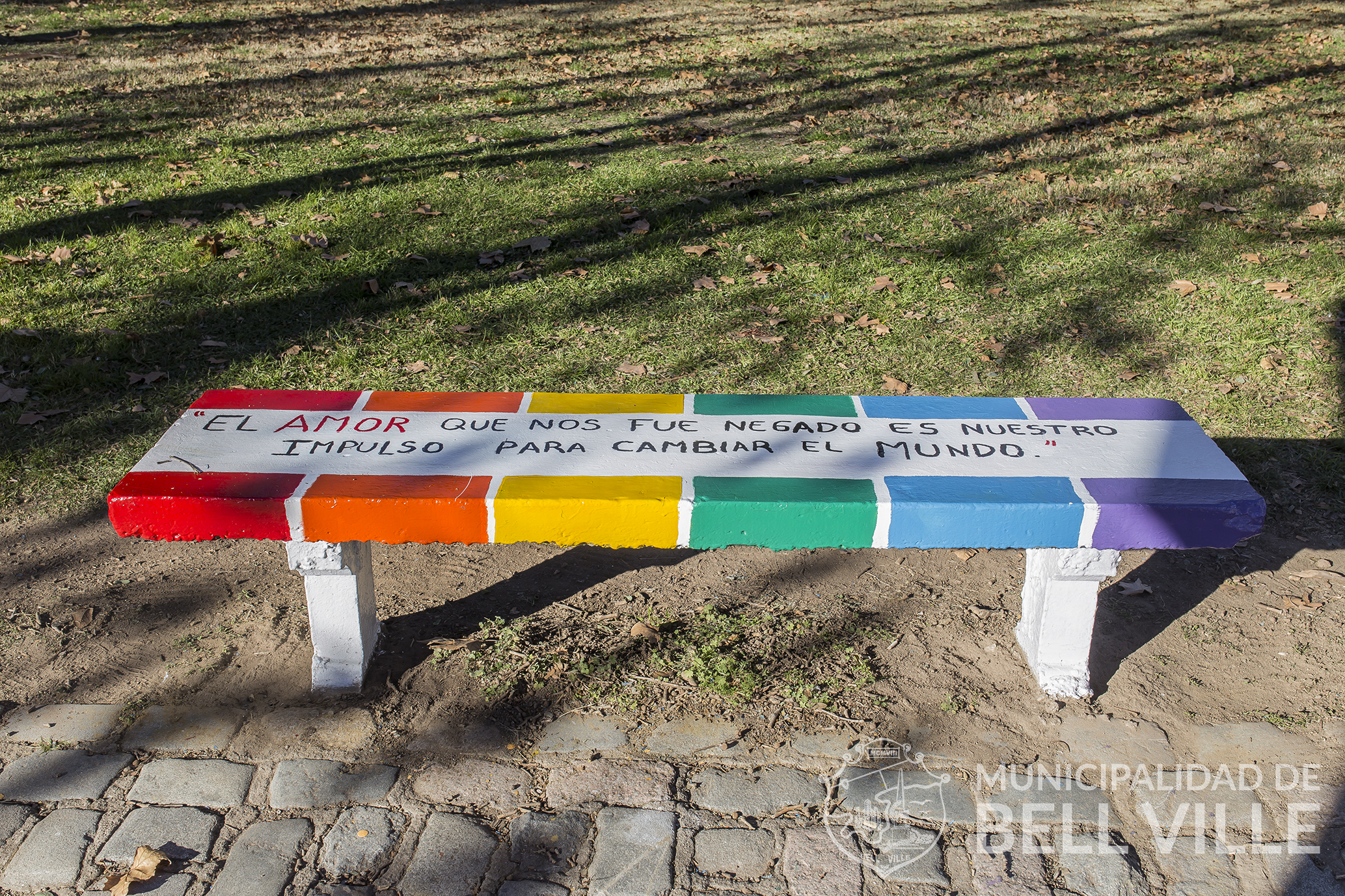 La inscripción en el banco es la siguiente: “El amor que nos fue negado, es nuestro impulso para cambiar el mismo”.