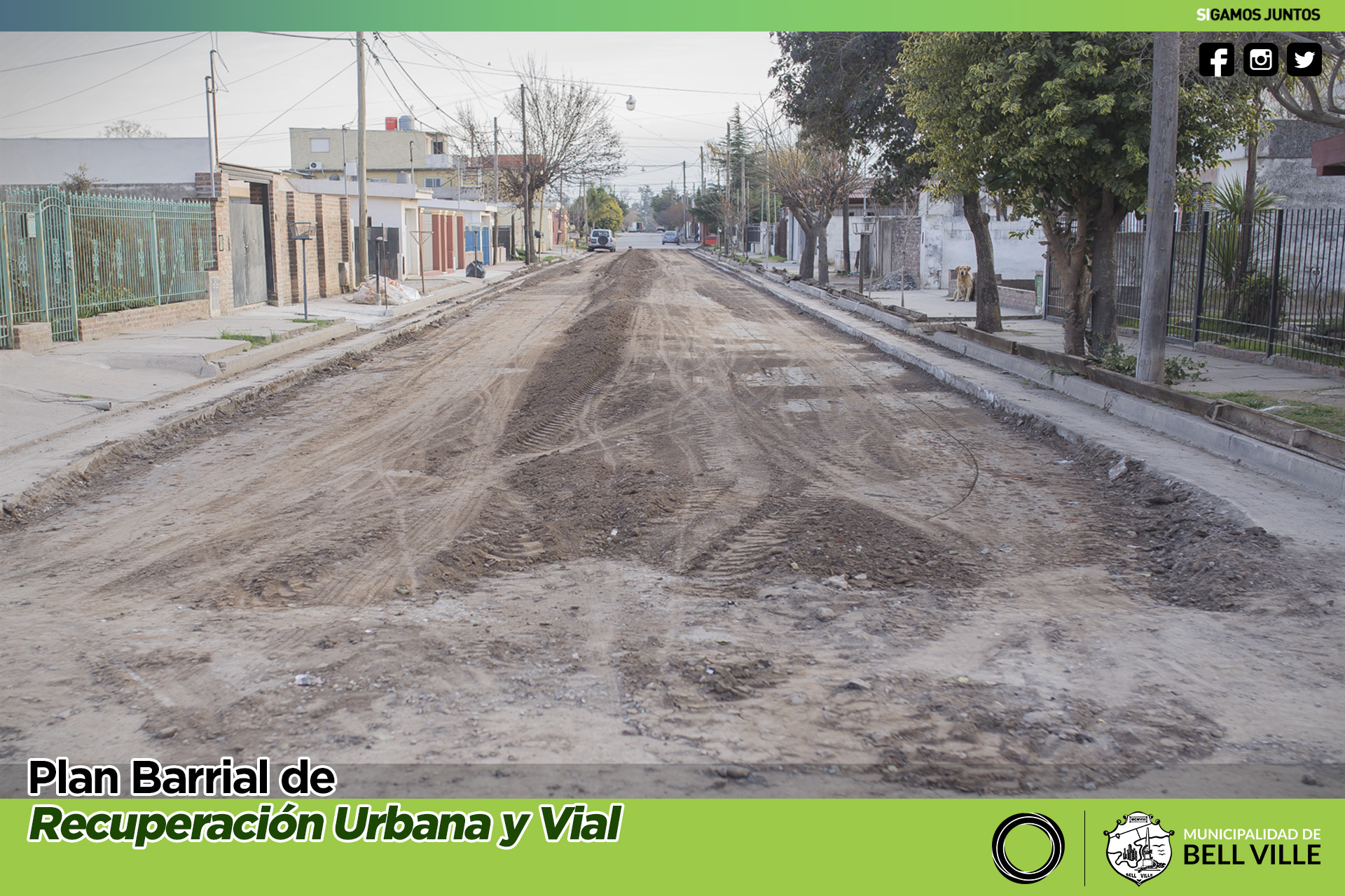 La empresa contratada por la Municipalidad para la ejecución de la obra, está concluyendo con el acondicionamiento de la base para realizar el pavimento con hormigón de calle Mármol, entre Río Negro y San Luis.
