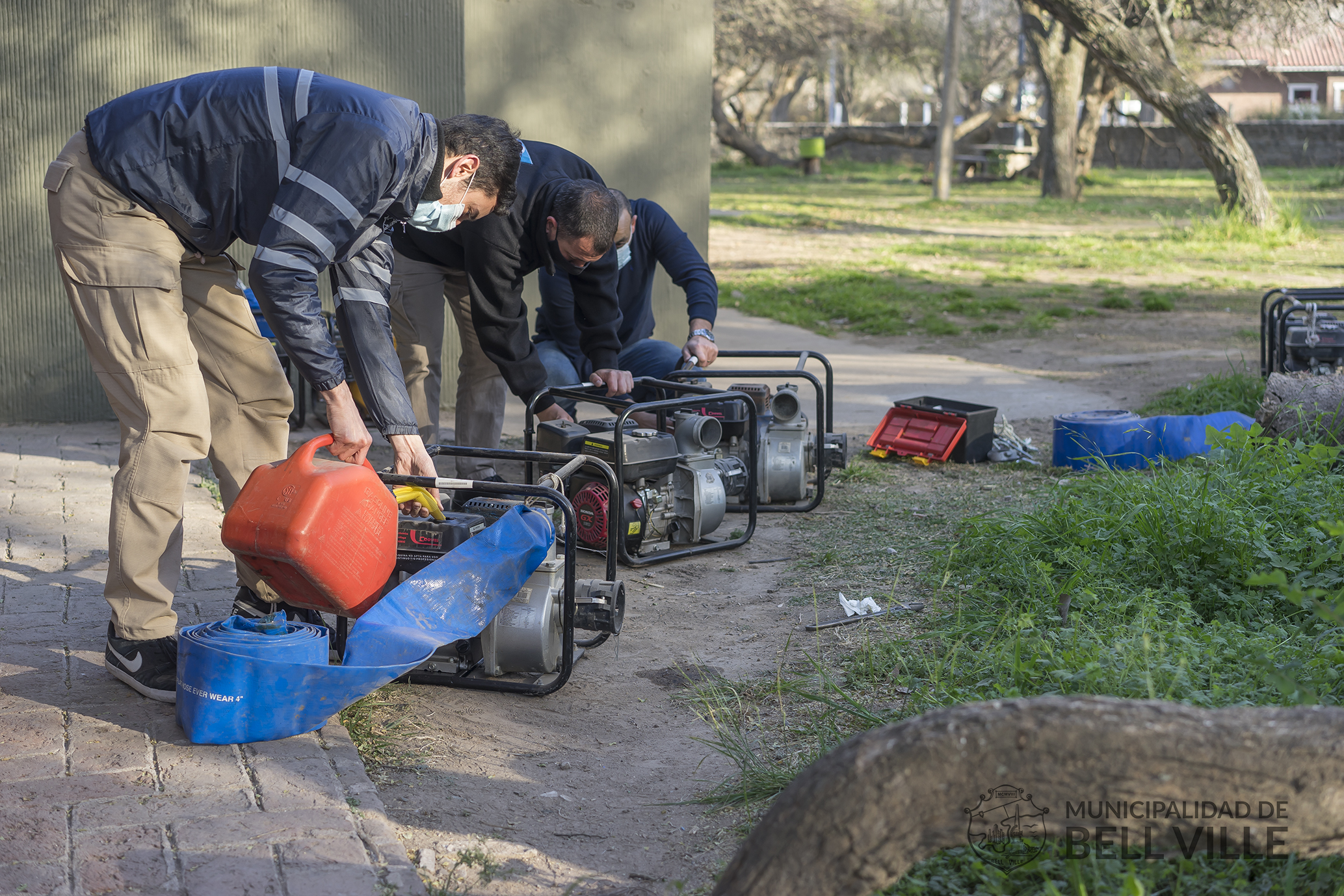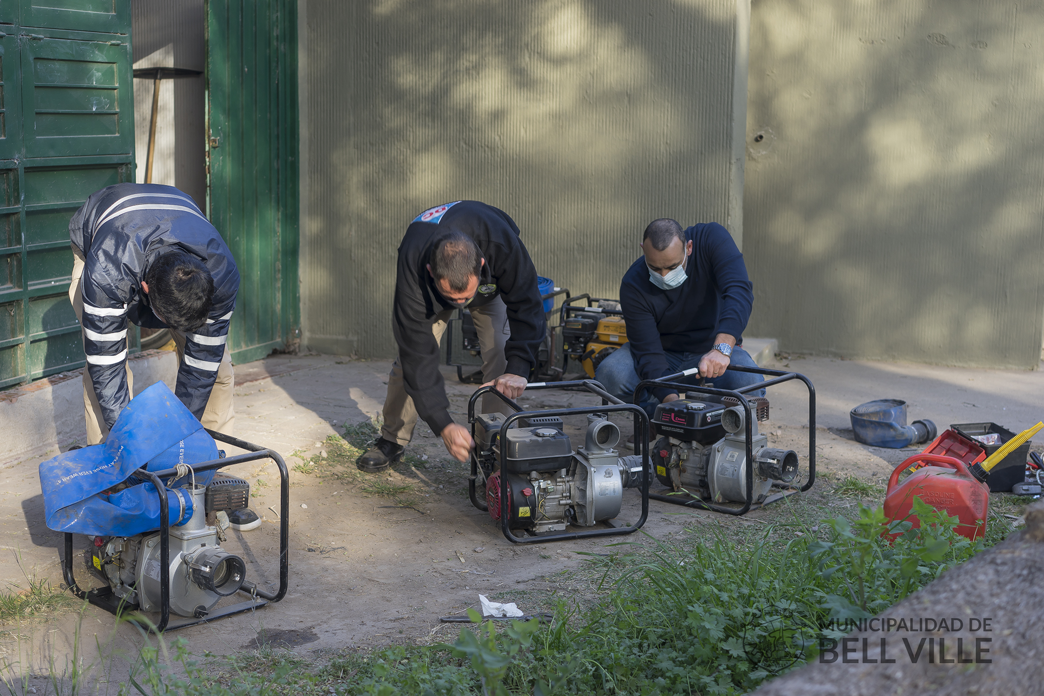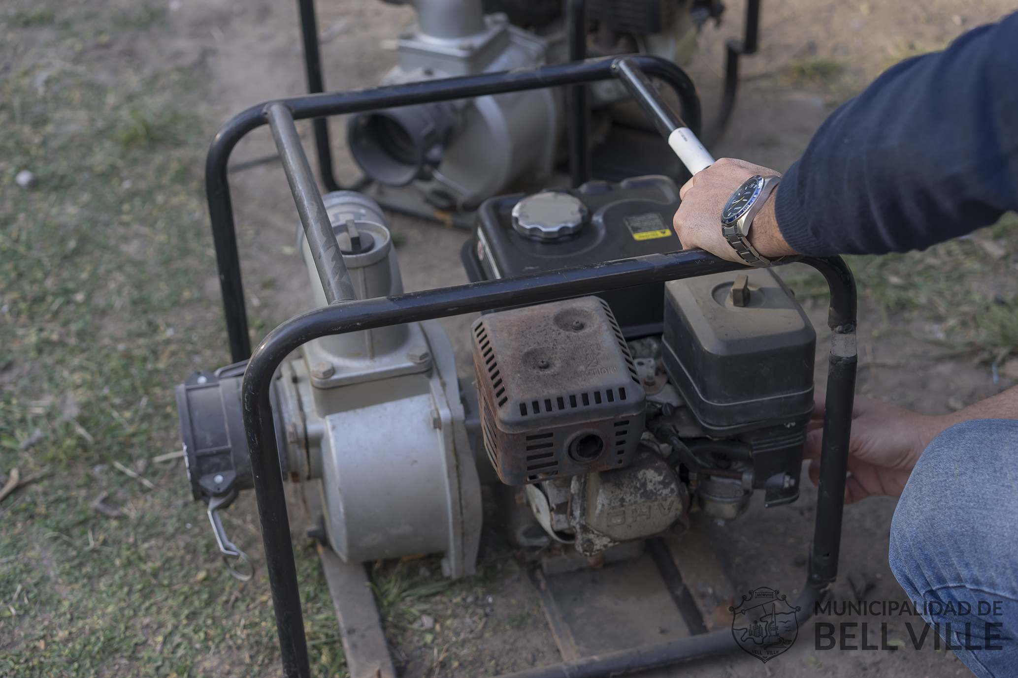 Previo a la época de lluvia intensas y eventuales riesgo de crecidas del río Ctalamochita, personal municipal lleva adelante periódicas tareas de mantenimiento de todas las maquinarias de bombeo de agua.