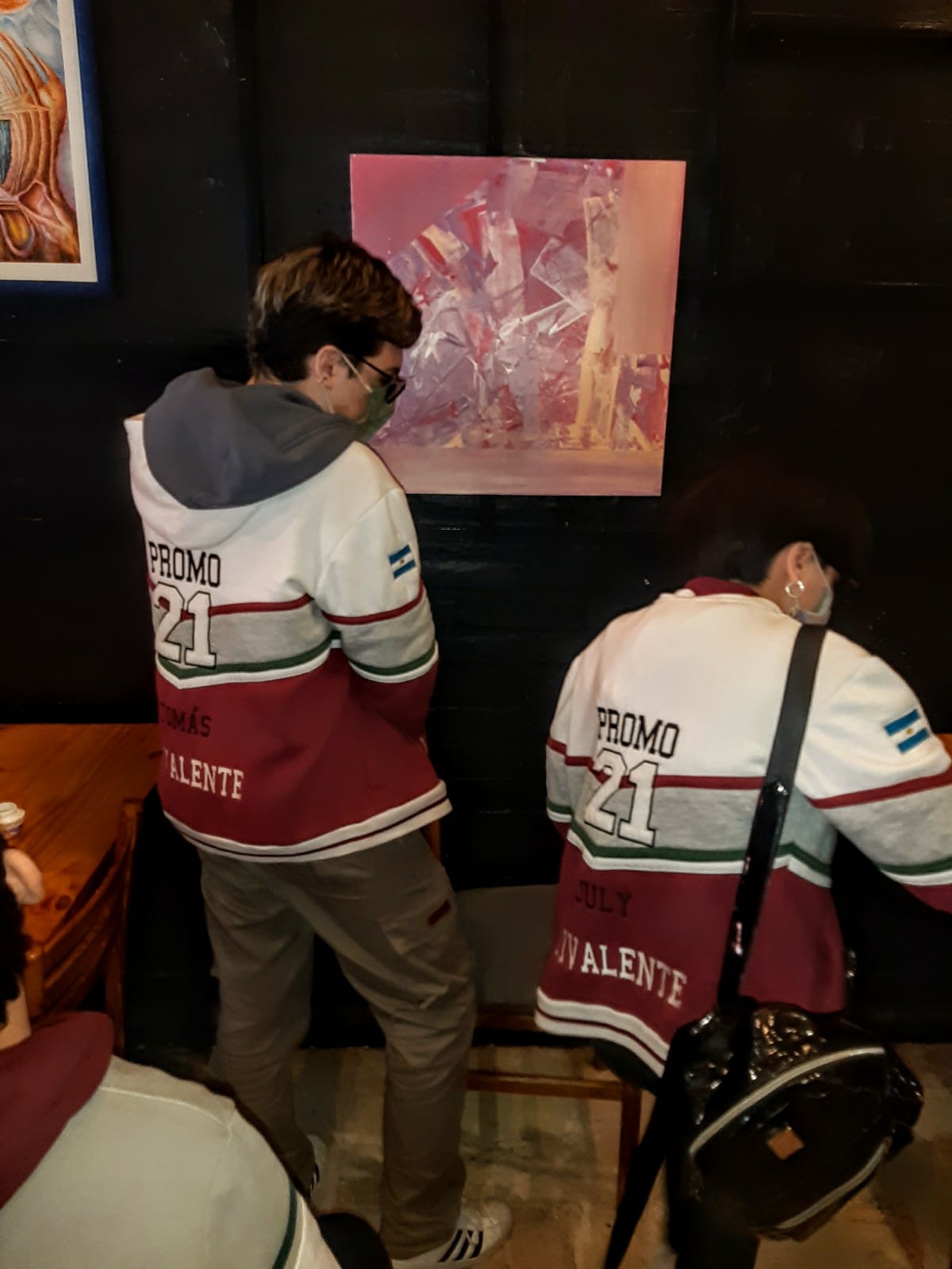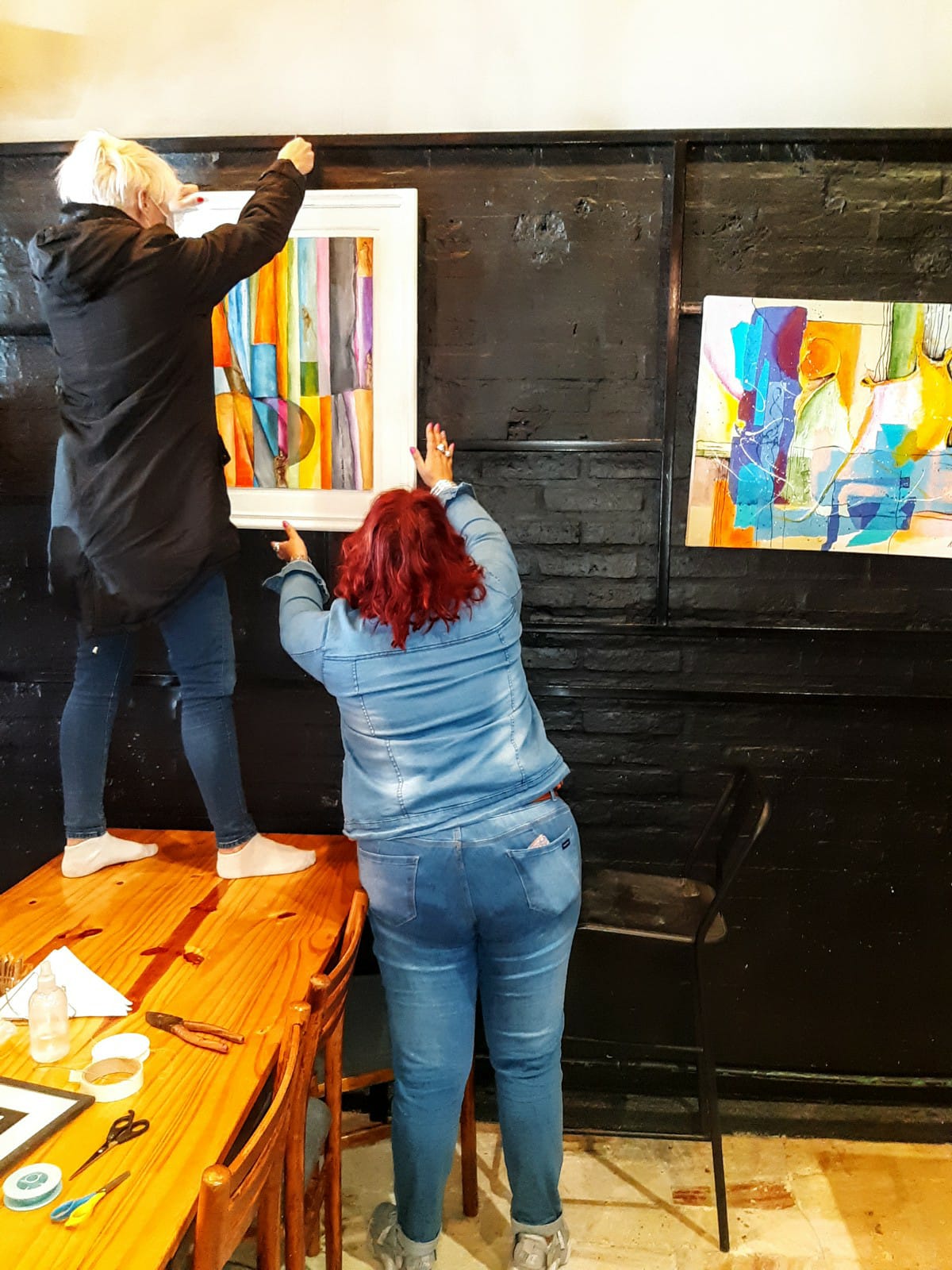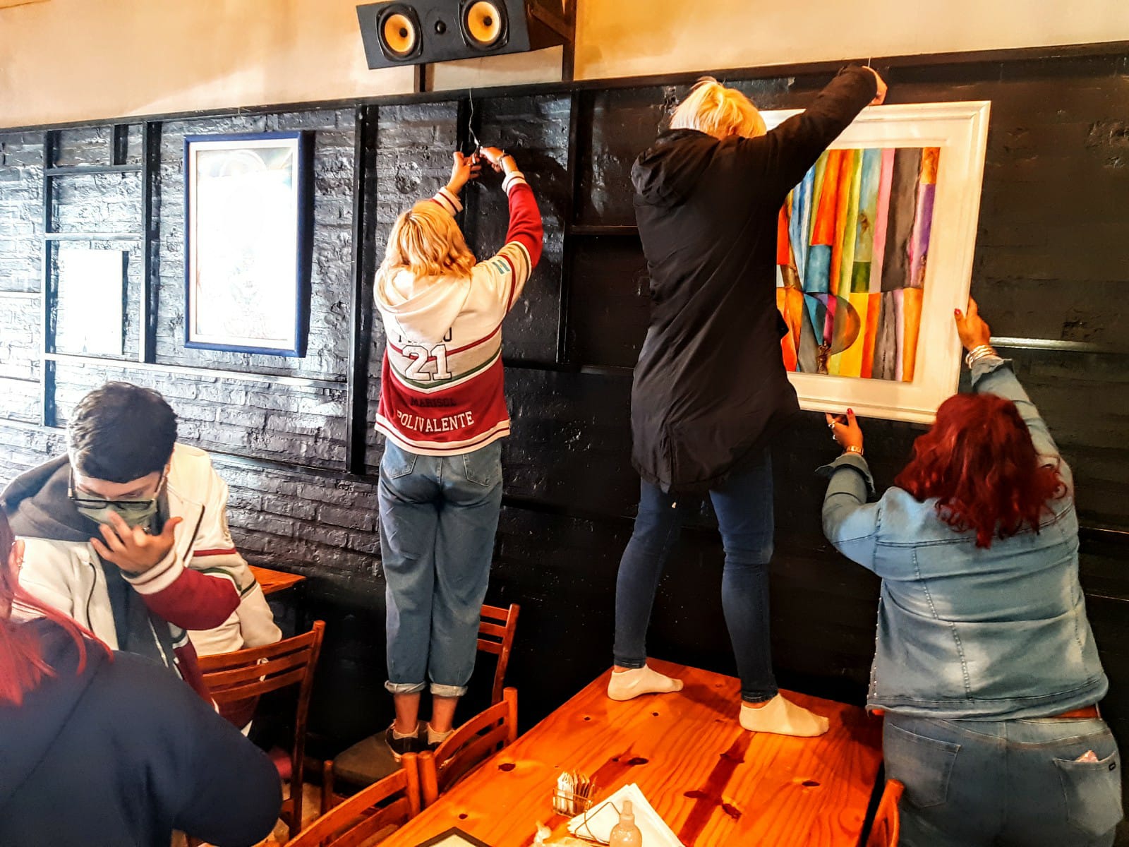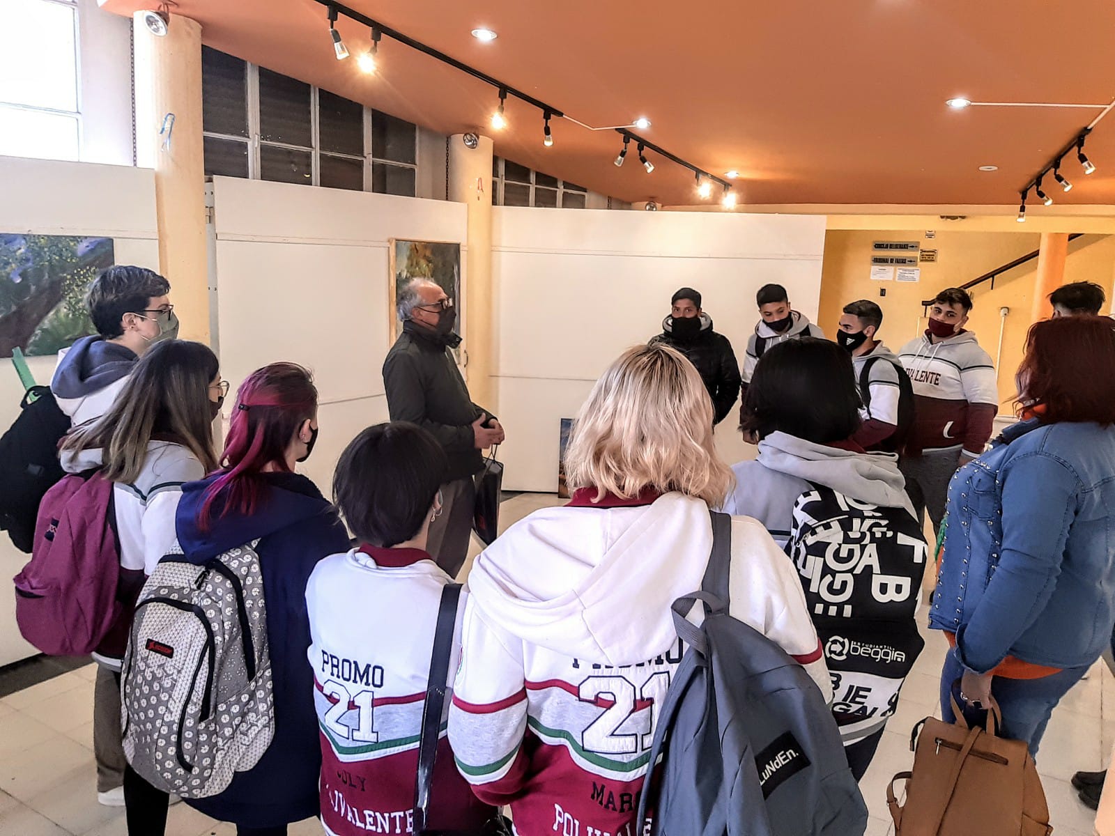 Los alumnos y docentes Cecilia Cassol y Celeste Piazzese, del Centro Polivalente de la cátedra “Práctica Profesional”, no solamente se constituyeron en curadores de la muestra, sino que además, se encargaron de la exhibición de las obras.