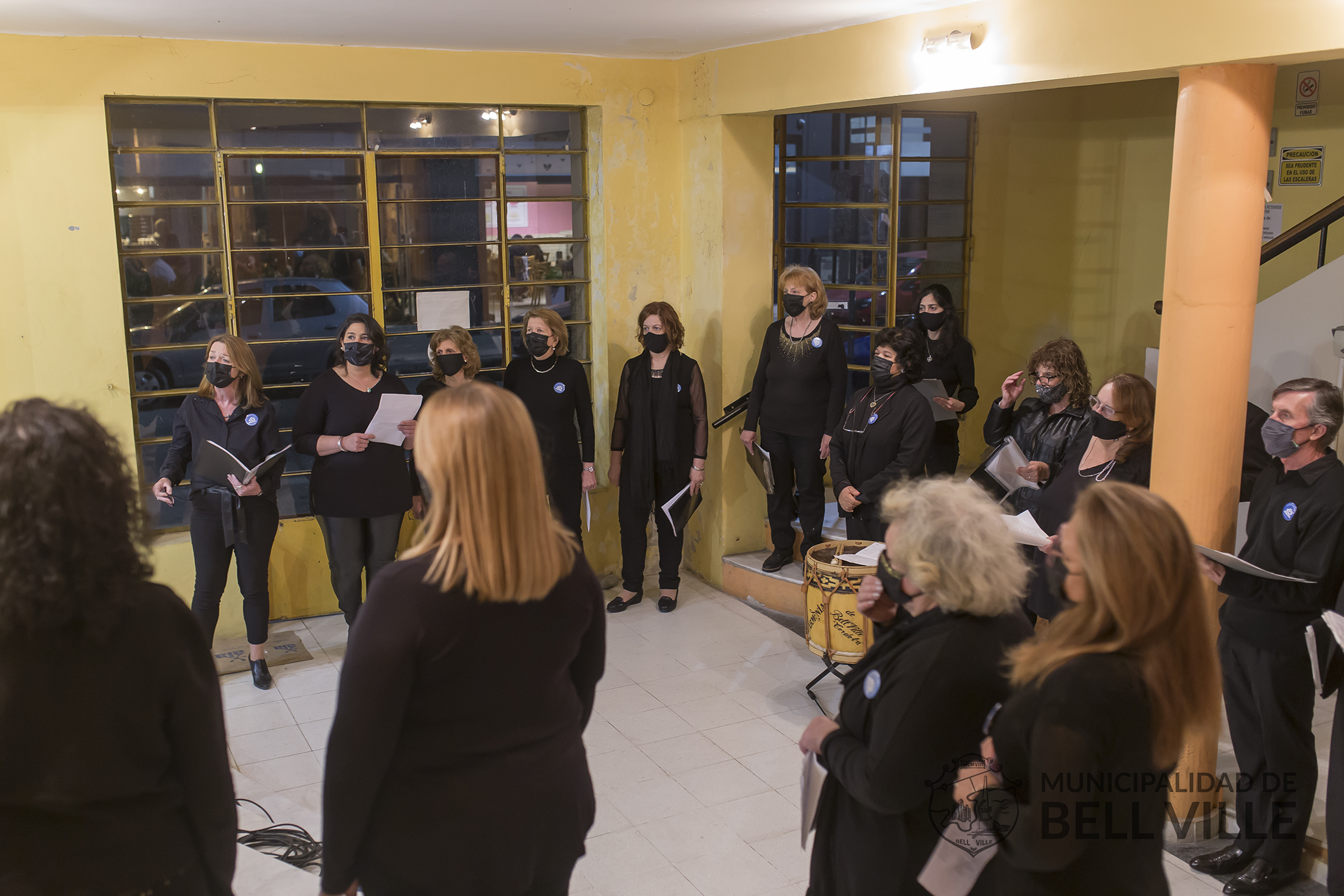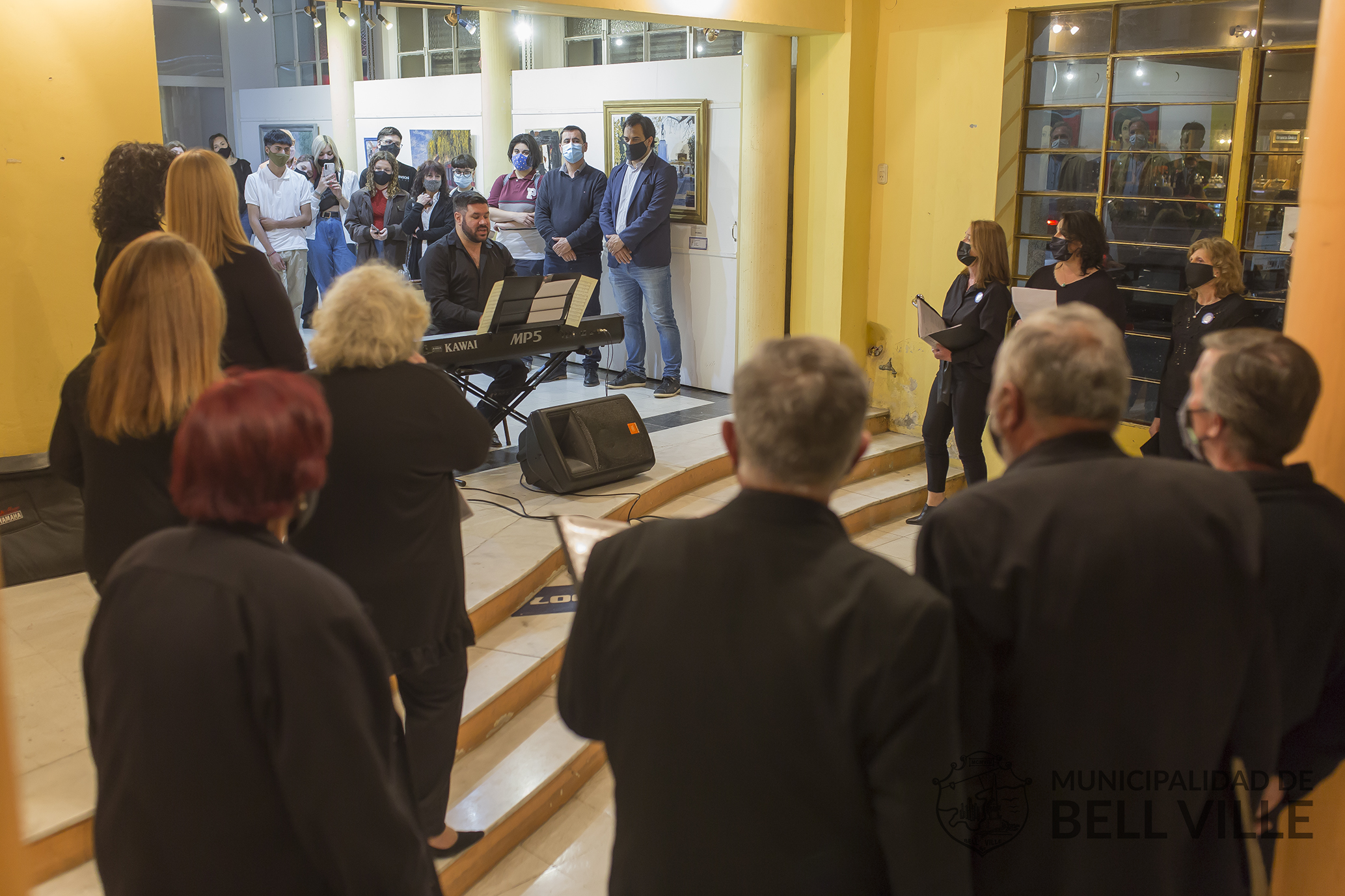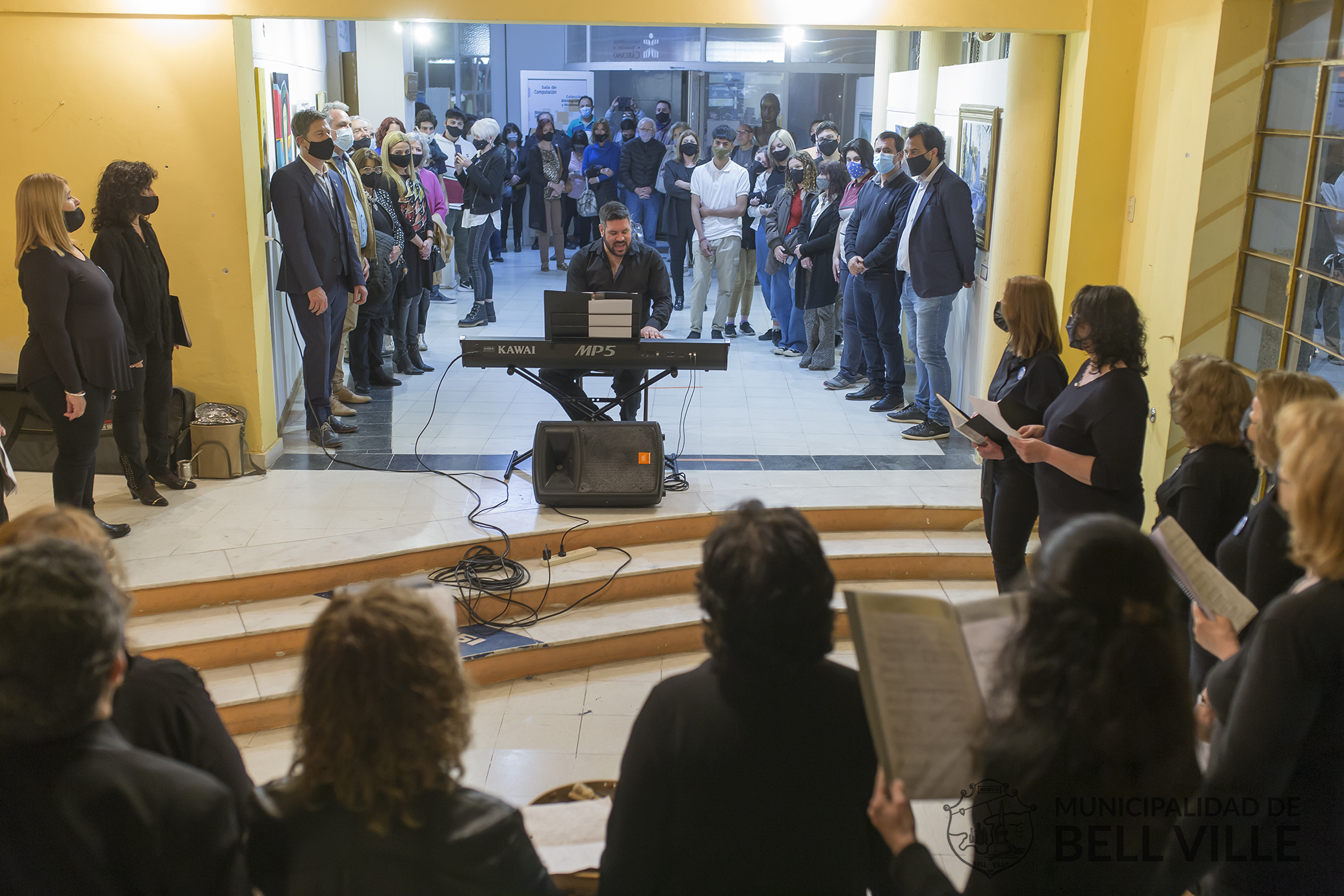 Posteriormente, en la sala “Leonardo Demaría” de la Biblioteca Popular “Ramón J. Cárcano” se disfrutó de la magnífica actuación del Coro Municipal “Armonía”, dirigido por el Prof. César Vasconi. Fueron muy aplaudidos las interpretaciones de Inconsciente Colectivo, Un vestido y un amor y Zamba de las dos lunas.