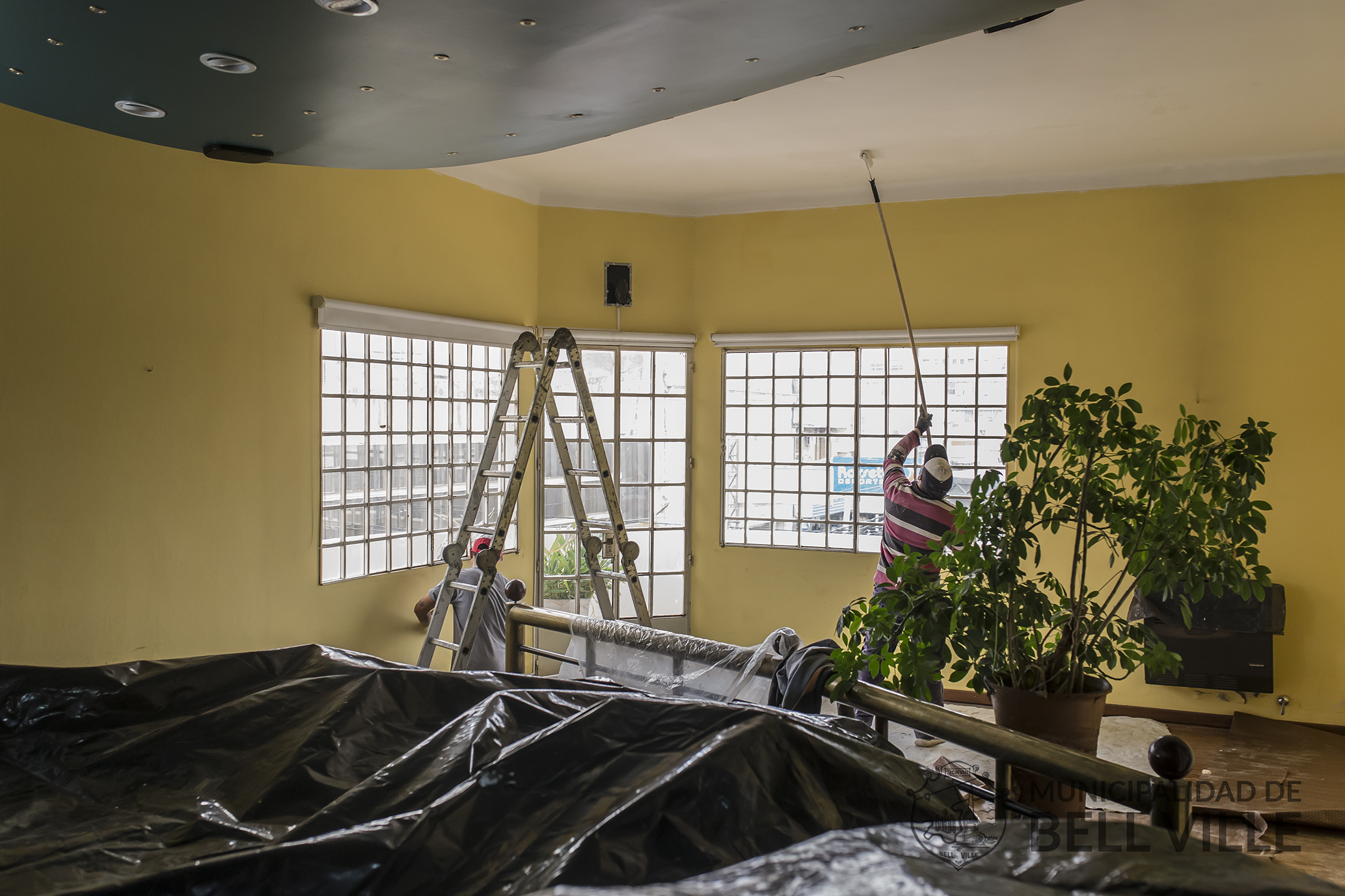 Con diversas intervenciones se avanza en la reparación edilicia del inmueble municipal de Córdoba y Sarmiento, sede del Concejo Deliberante, Juzgado Municipal de Faltas y Biblioteca Popular “Ramón J. Cárcano”.