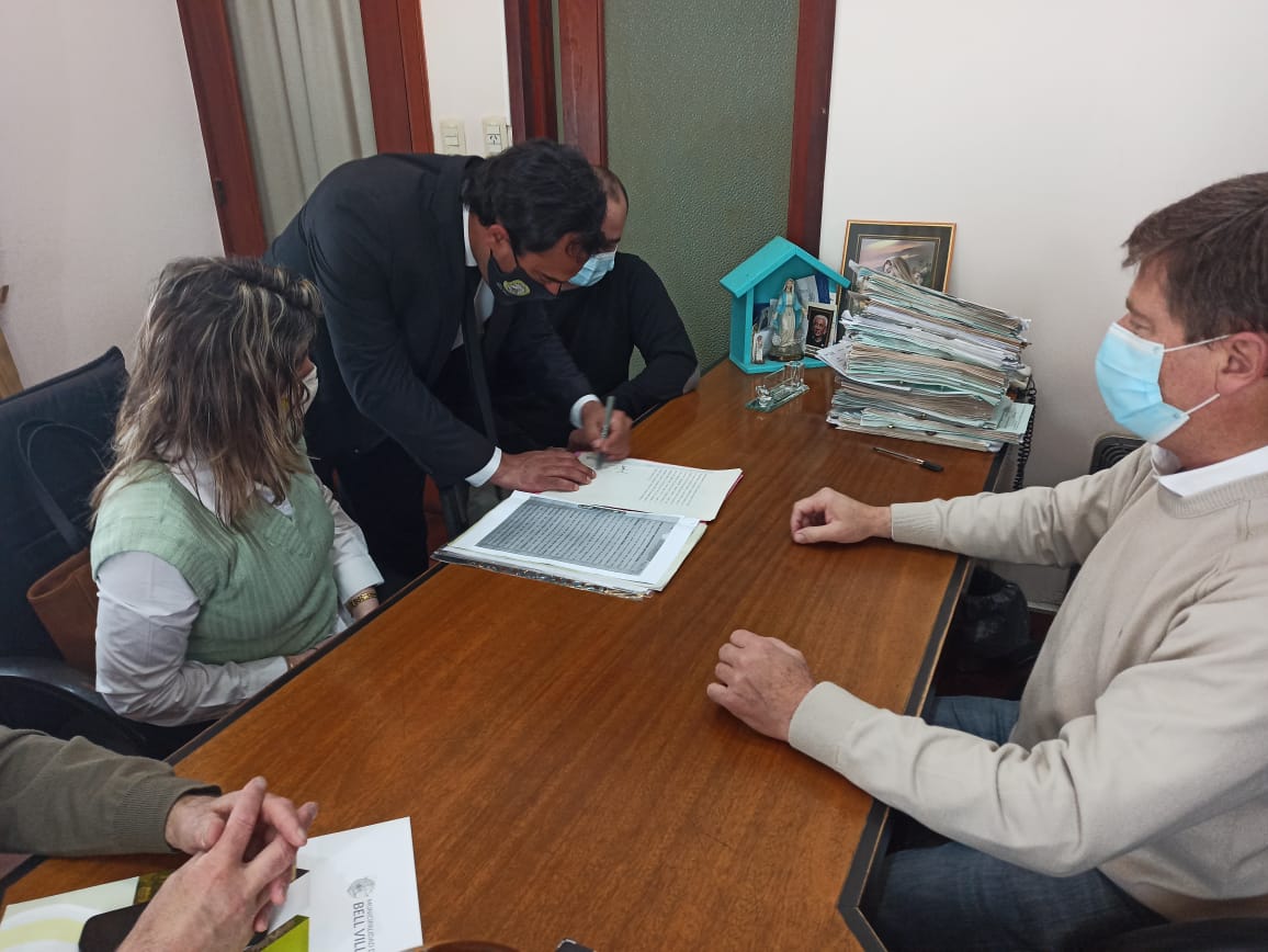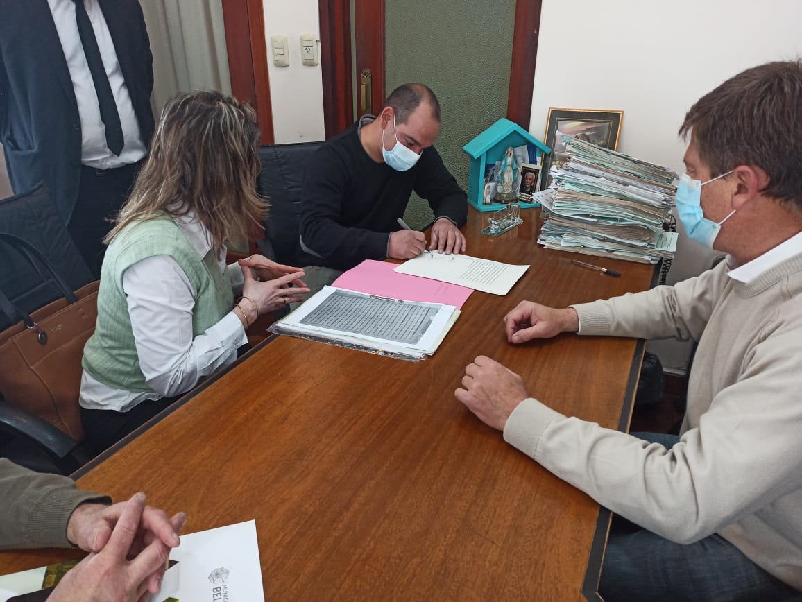 El intendente Carlos Briner, en presencia de la Escribana Pública Mónica Gastaldi firmó la documentación necesaria que permite la construcción de la 28° vivienda del plan cooperativo municipal conocido como PRO.COO.MU.VI.