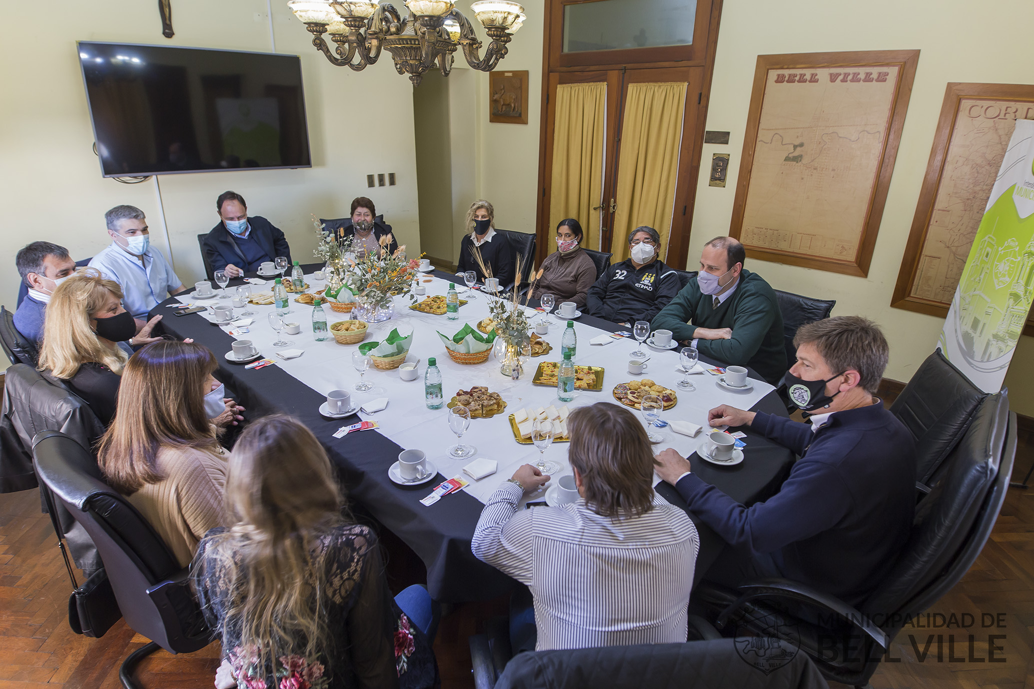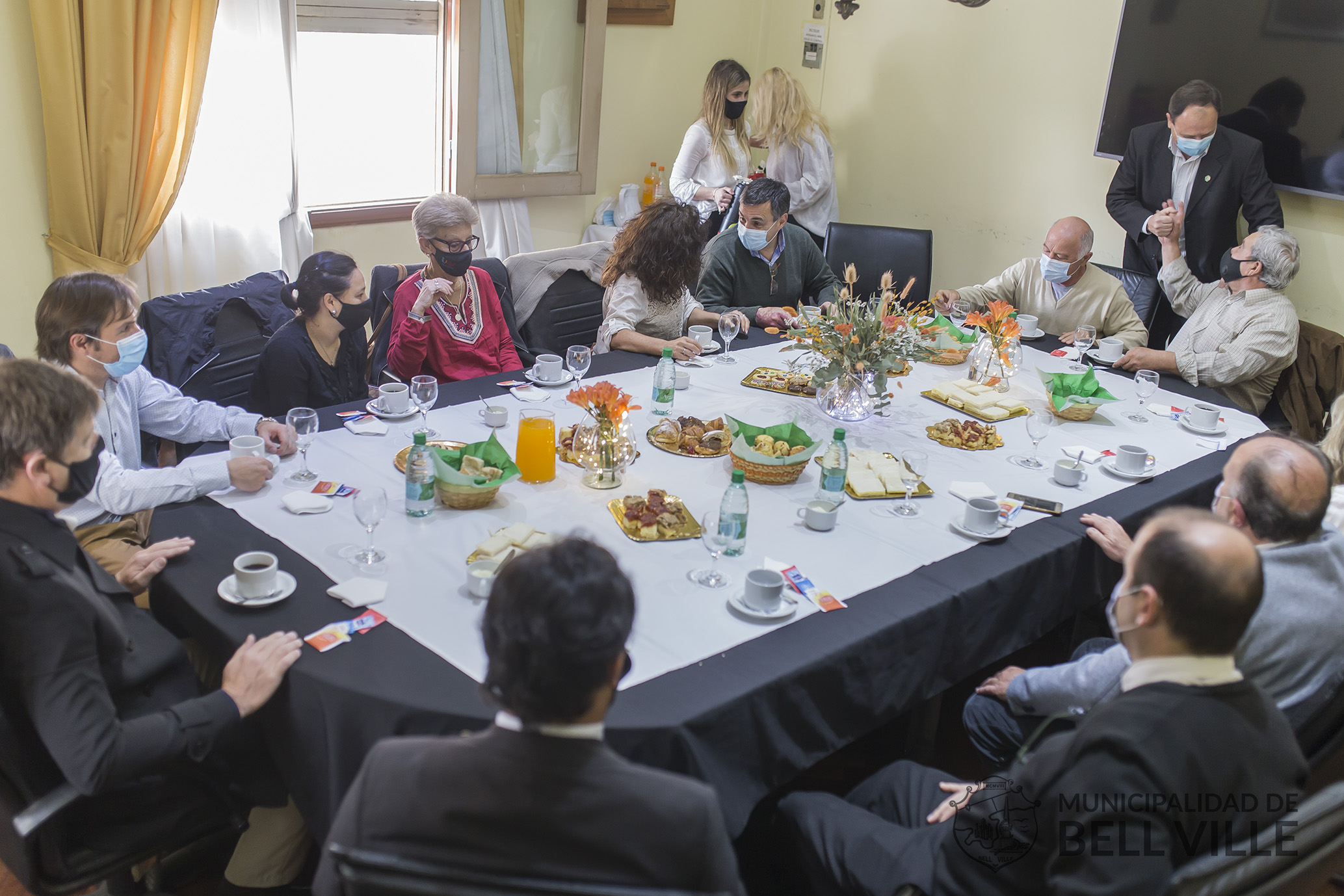 Del desayuno servido en el edificio municipal, también tomaron parte familiares de los agasajados.