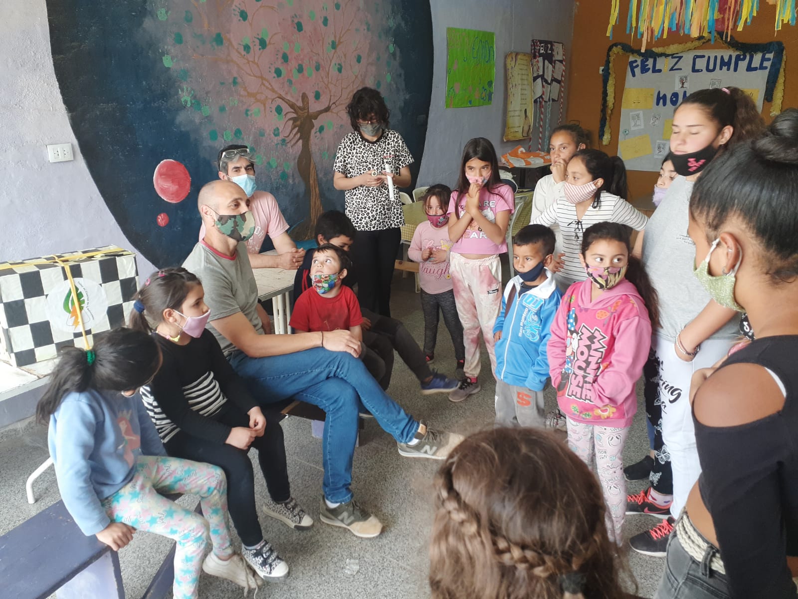 La Municipalidad, como política de estado, trabaja en el programa de los Núcleos Barriales con ese propósito, por lo que el pasado sábado, en el Merendero Teresa Lazo, se puso en marcha el primer taller de Ciencia de los Núcleos Culturales a cargo de los docentes Cristian Rossi (Química) Darío Ponzano (Física) y Lucrecia Huais, (Biología), tomando parte alrededor de 33 niños, aproximadamente.