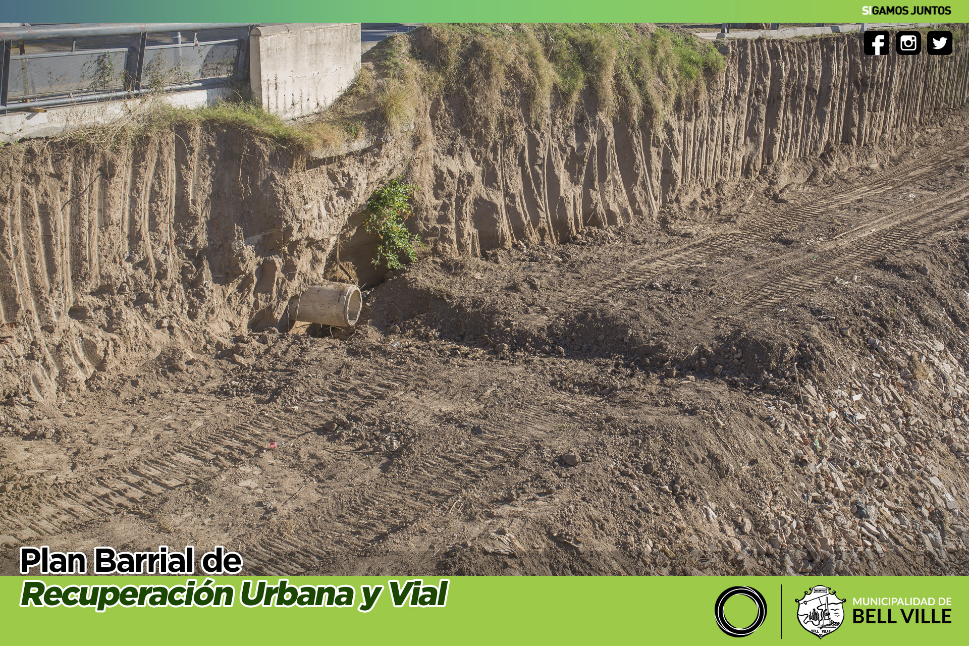 Se acumula material para asentar el nuevo caño que permitirá la descarga de agua de lluvia en el cauce del río Ctalamochita.