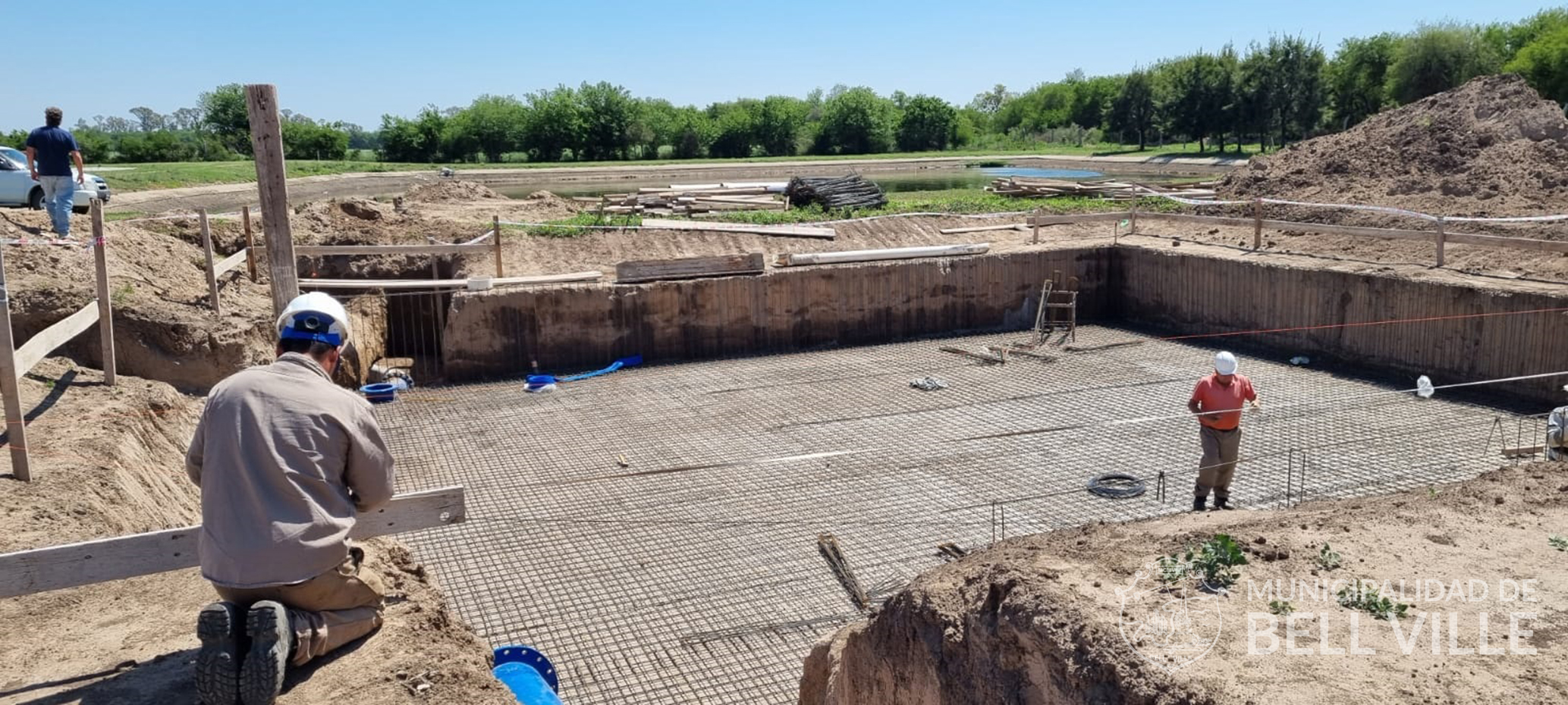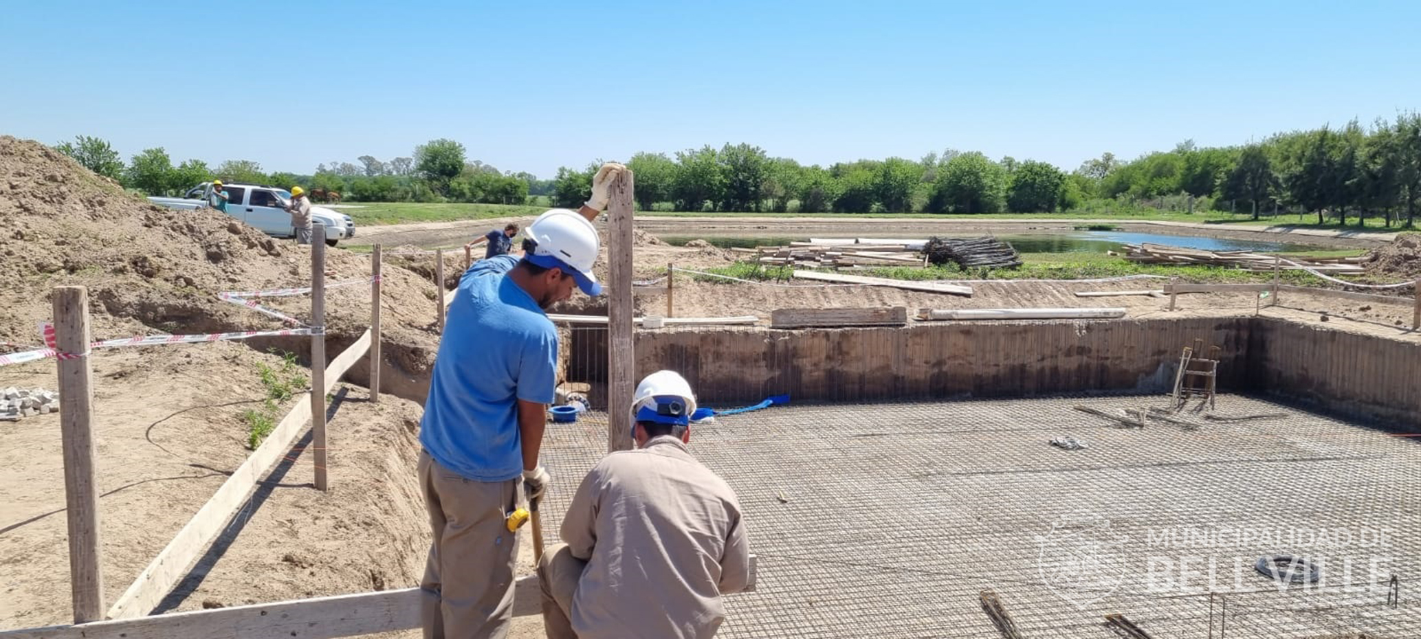 El Ing. Jorge Vaz Torres, gerente de Agua y Saneamiento, recorrió ayer junto a funcionarios municipales de la Cooperativa de Trabajado Sudeste Ltda., la obra de la futura cámara de clorado que se está construyendo en el predio de las lagunas sanitarias.