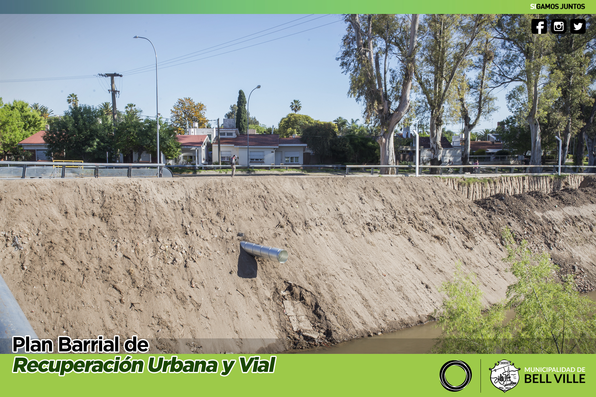Con un trabajo que incluyó un gran movimiento de tierra de una parte de la barranca del río Ctalamochita, contigua al puente Arturo Frondizi, finalizó la reparación del desagüe de barrio El Rosedal.