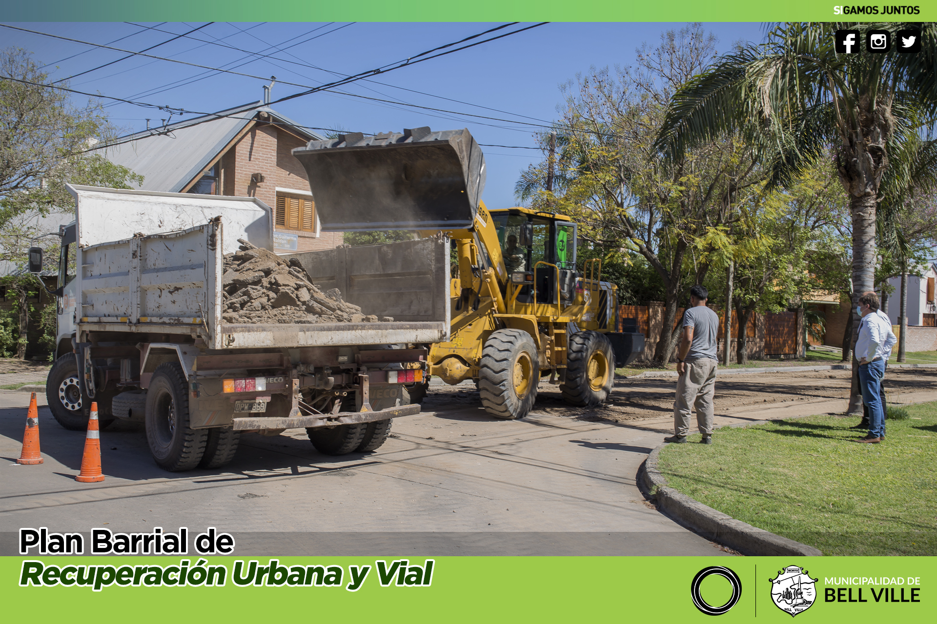 El intendente Carlos Briner y el secretario de Coordinación de Gabinete, Ernesto Borrageros, estuvieron presentes esta mañana en la remoción del asfalto en calle Roldán.