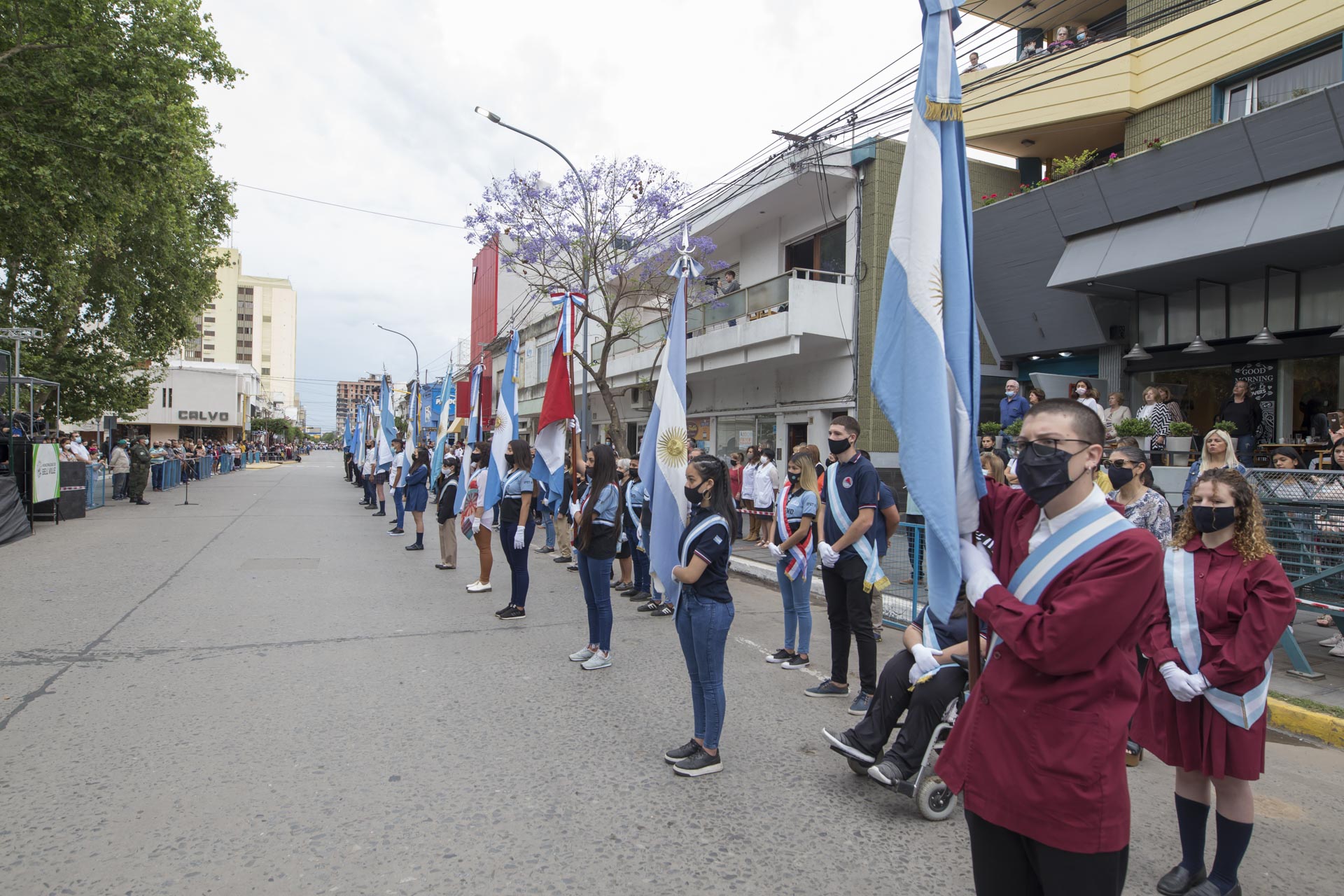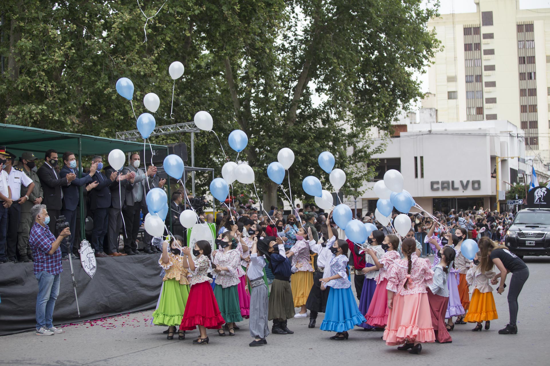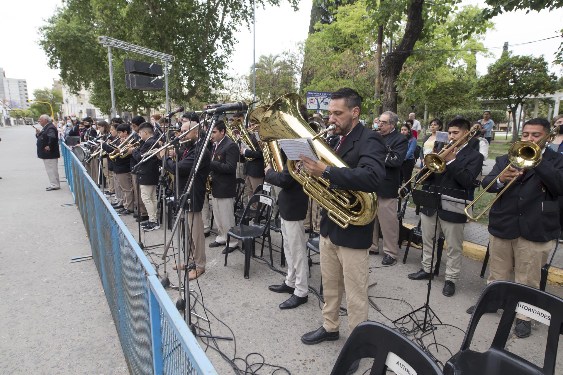 A la entonación del Himno Nacional, con el acompañamiento de la Banda Municipal “Ernesto Alfonso Bianchi” que dirige el maestro Juan Ferreyra, le sucedió una emocionante invocación religiosa del sacerdote Carlos Fillol, titular de la Parroquia de la Inmaculada Concepción quien recordó a los fallecidos por la pandemia y a todos aquellos que contribuyeron al crecimiento de la ciudad en estos casi 350 años de vida.