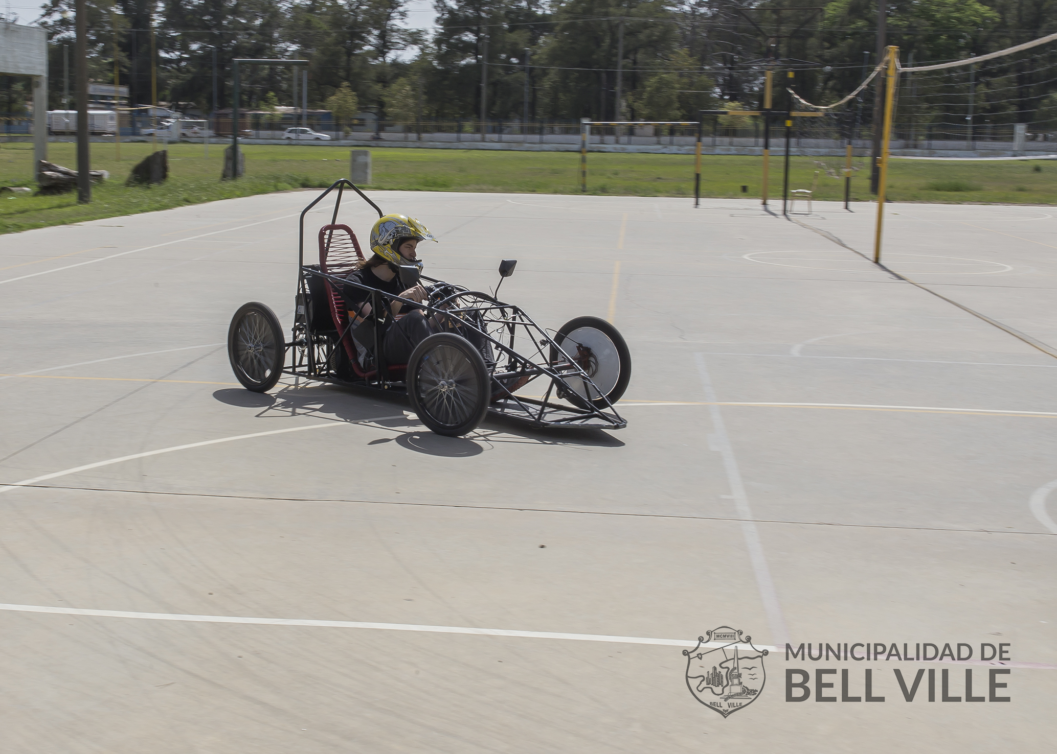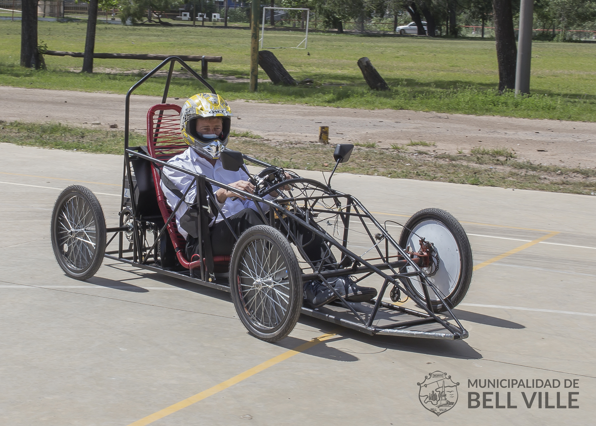 Finalmente, uno de los alumnos participantes, Manuel Galetto, dio algunas características del prototipo como cuatro ruedas de rodado 20” finas como para bicicleta, motor eléctrico, freno a disco delantero mecánico y uno trasero por emergencia, cuatro baterías de 12 volts y con un peso total acorde al proyecto.