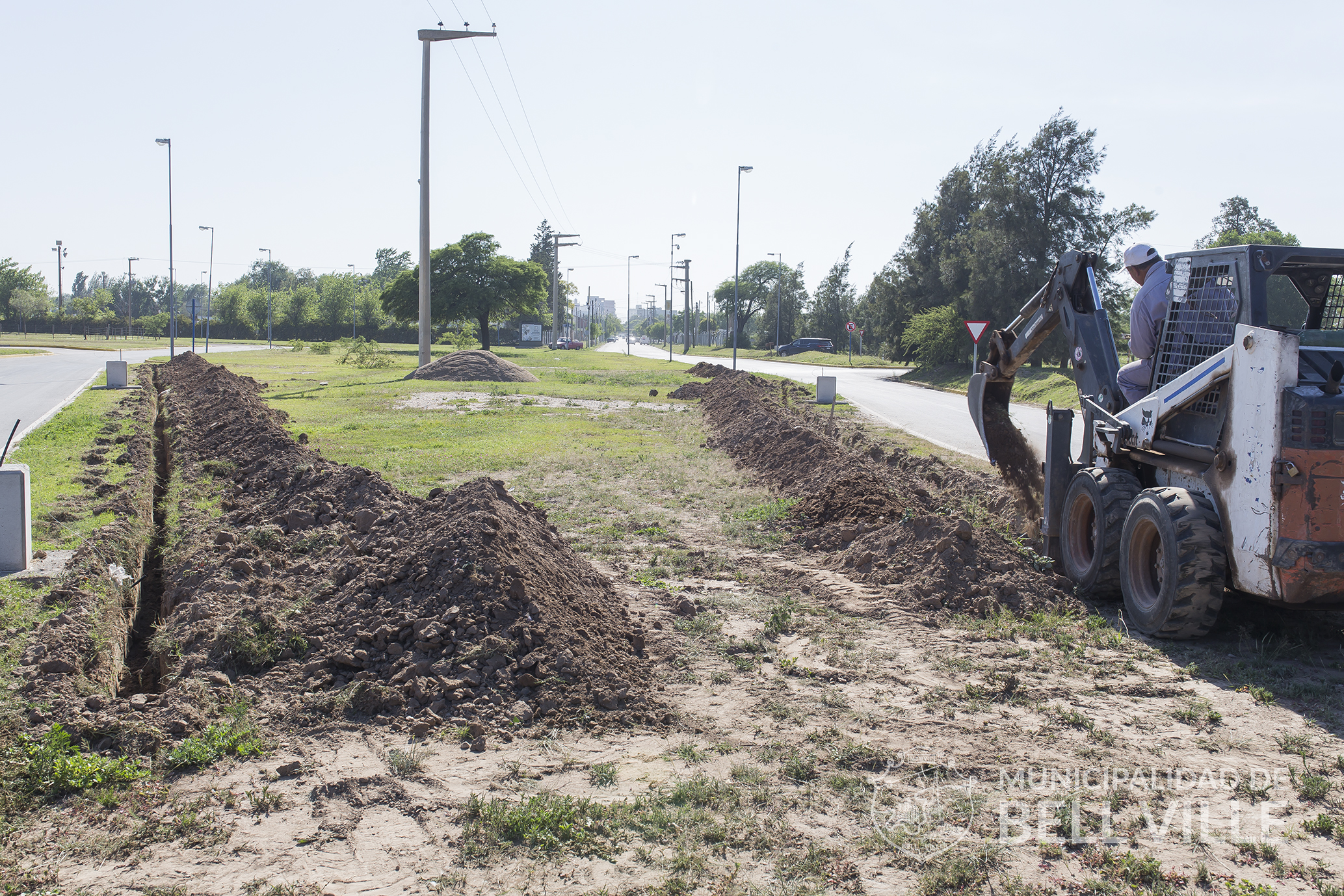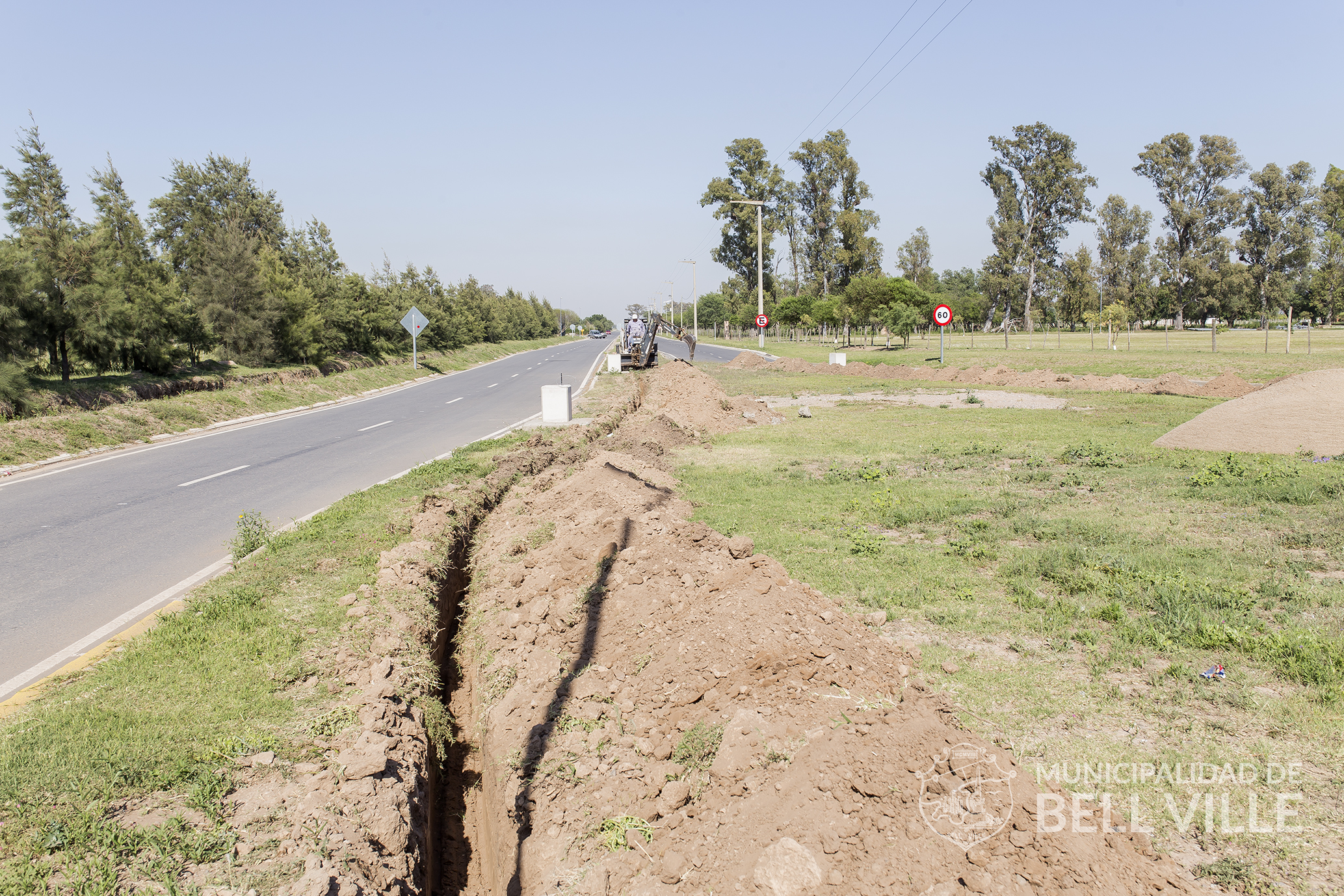 Comenzó la apertura de zanjas que permitirán el tendido subterráneo del cableado que permitirá la provisión de energía para el inminente alumbrado público del acceso Oeste a la ciudad por calle Córdoba, en el tramo entre la avenida de Circunvalación y calle Martín Malharro.