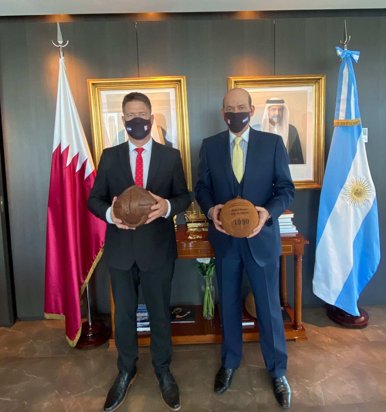 El equipo municipal encabezado por el intendente Carlos Briner, mantuvo un encuentro en el día de ayer con el embajador del Estado de Qatar en Argentina, S.E Battal Al Dosari, con el fin de aportar material bibliográfico y archivo fotográfico que permite fundamentar el pedido que la invención de la pelota de fútbol de boca y costura invisible, más el inflador Topoval, creaciones de tres bellvillenses, estén presentes en el museo creado el efecto para la Copa del Mundo a disputarse el año próximo en ese país.