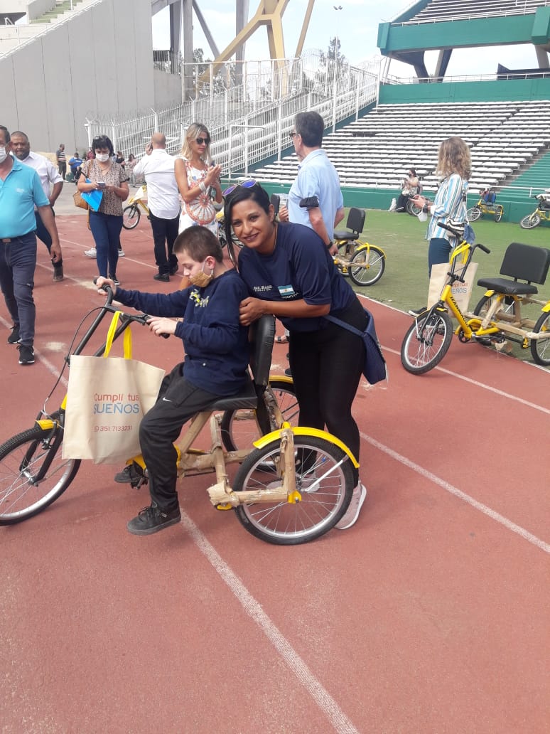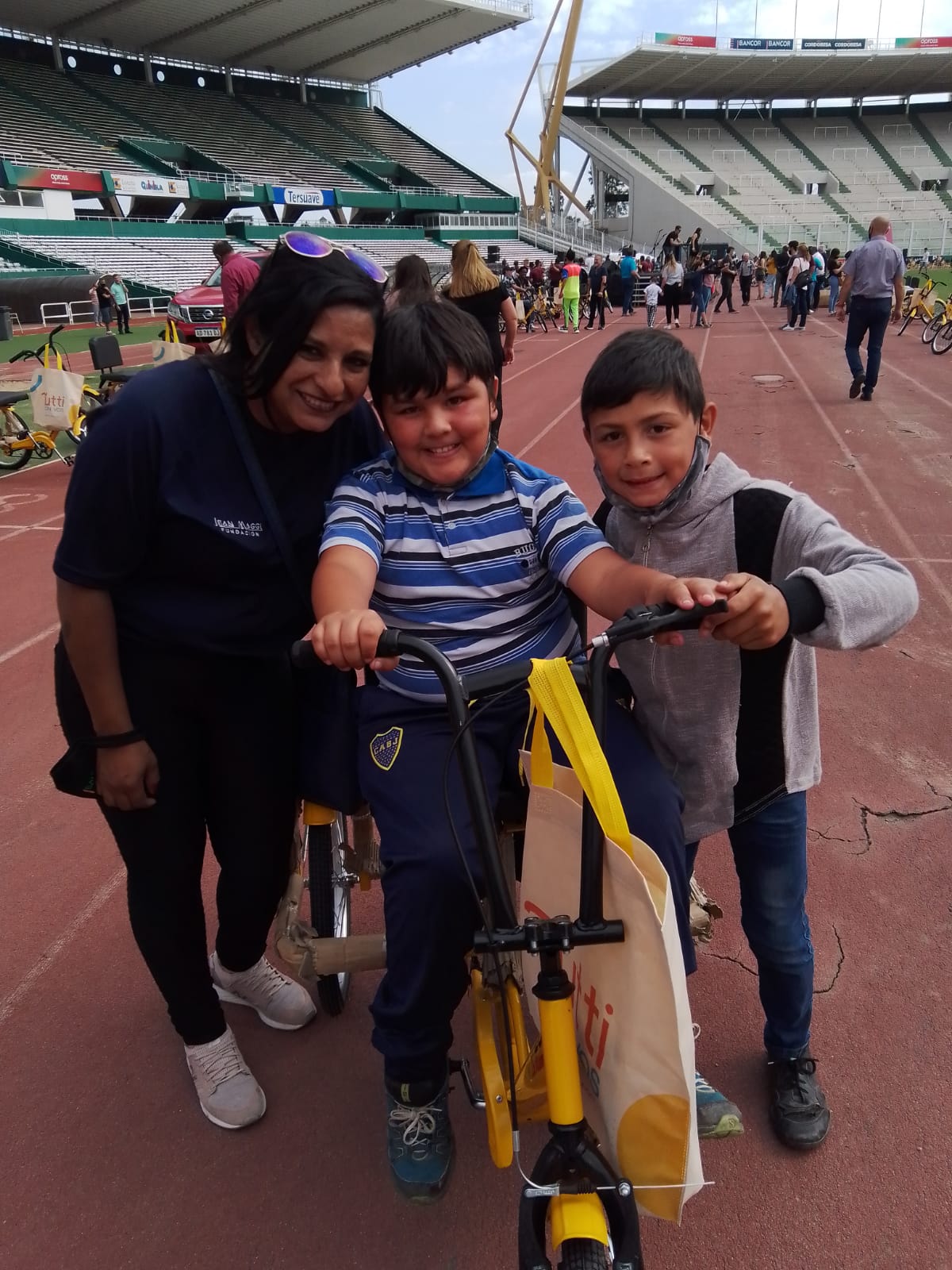 El viernes en el Estadio Kempes, la Fundación Jean Maggi entregó mil bicicletas adaptadas para niños y jóvenes con movilidad reducida, correspondiendo cuatro de ellas a niños y jóvenes de nuestra ciudad.