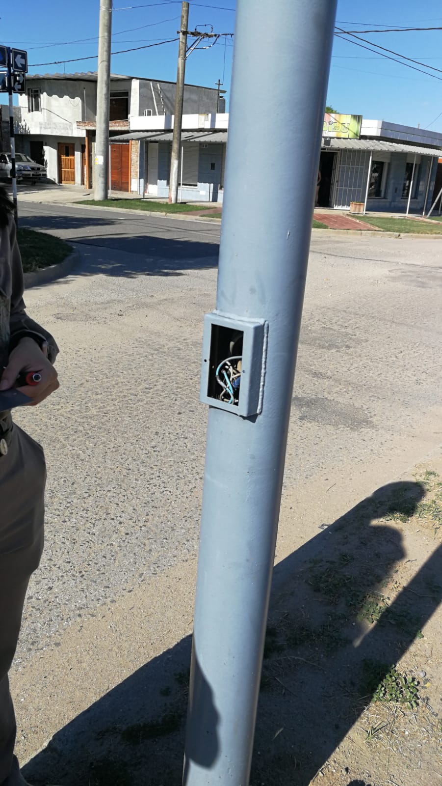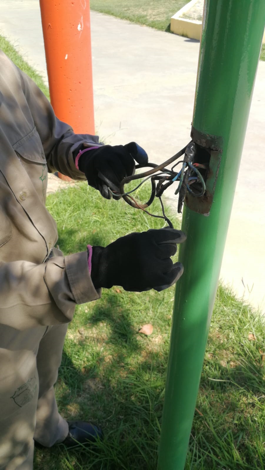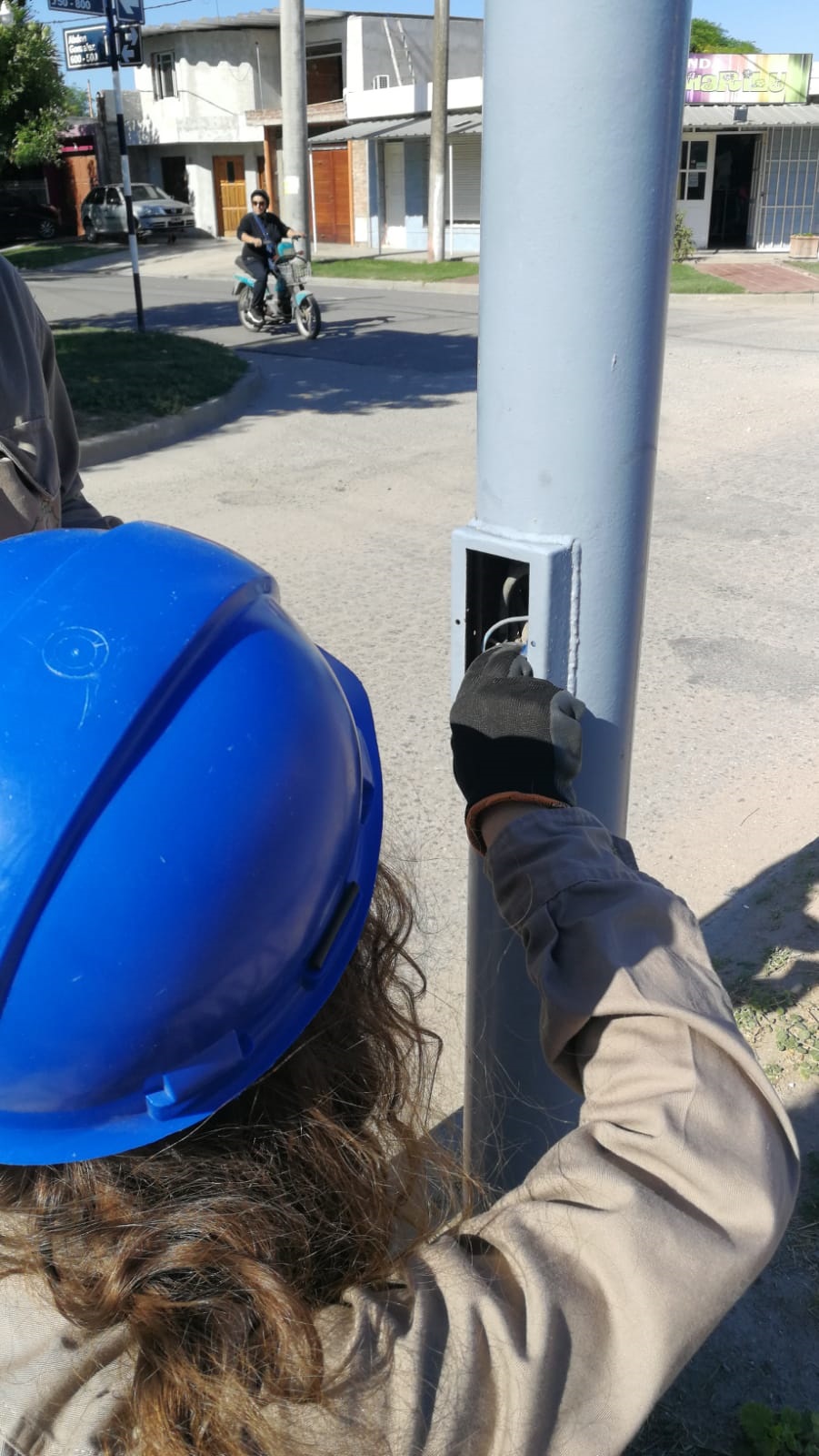 Con personal municipal de la Oficina de Seguridad de Eficiencia Eléctrica que encabeza el Ing. Lorenzo Villagrán, se está trabajando en  tapas de las columnas de iluminación de bulevar Illia y Campos del Oeste a fin de resguardar la seguridad en una primera instancia.