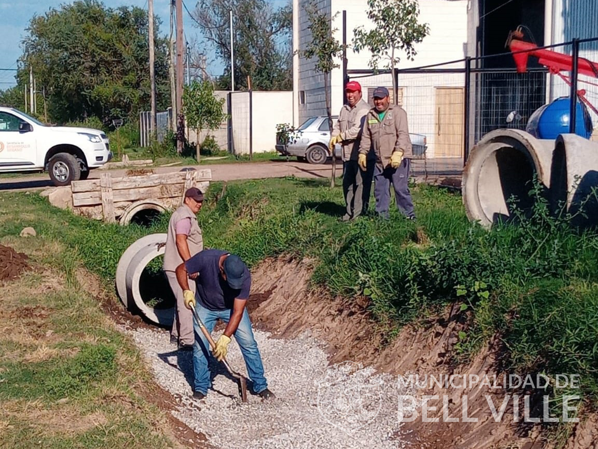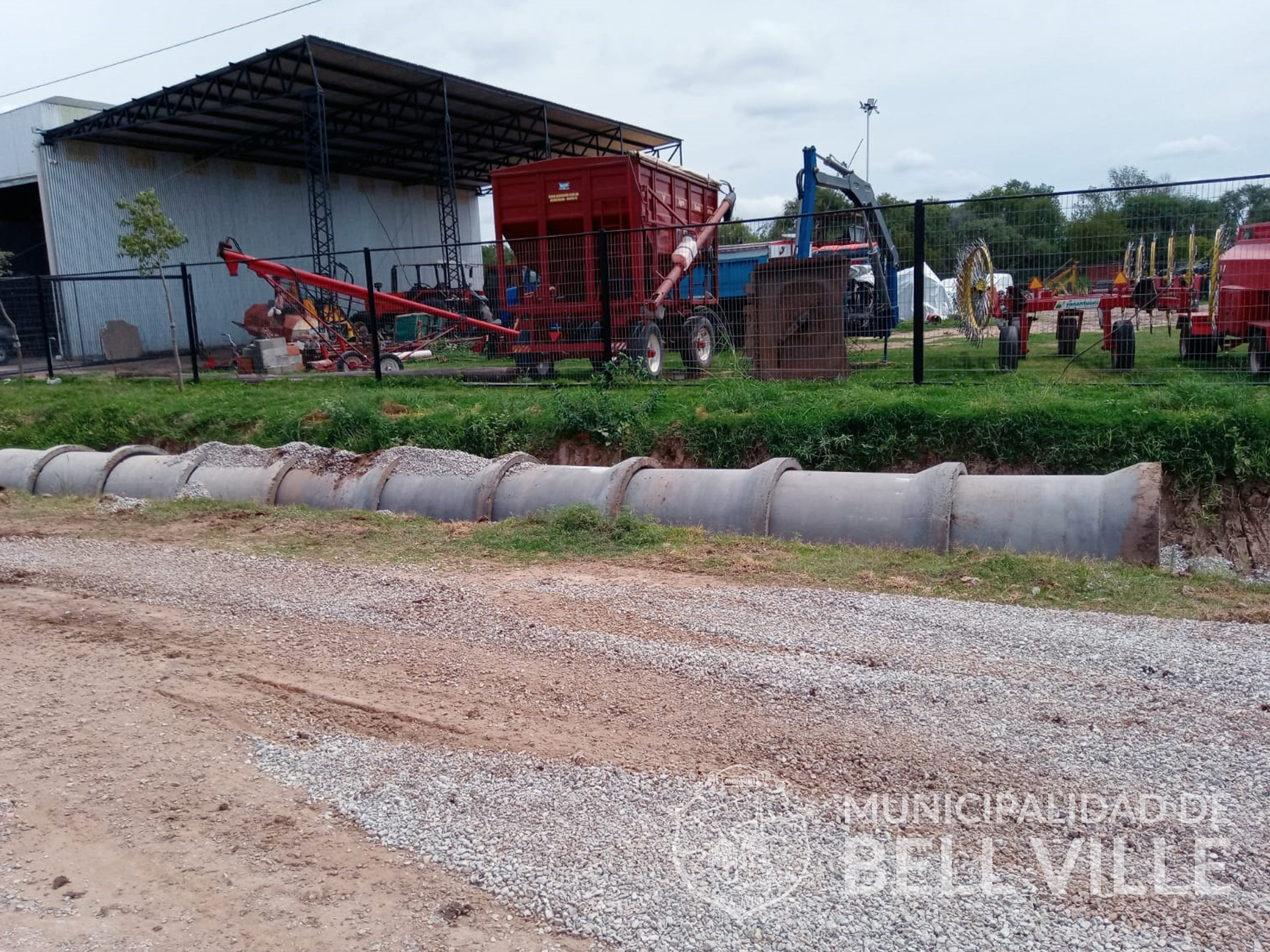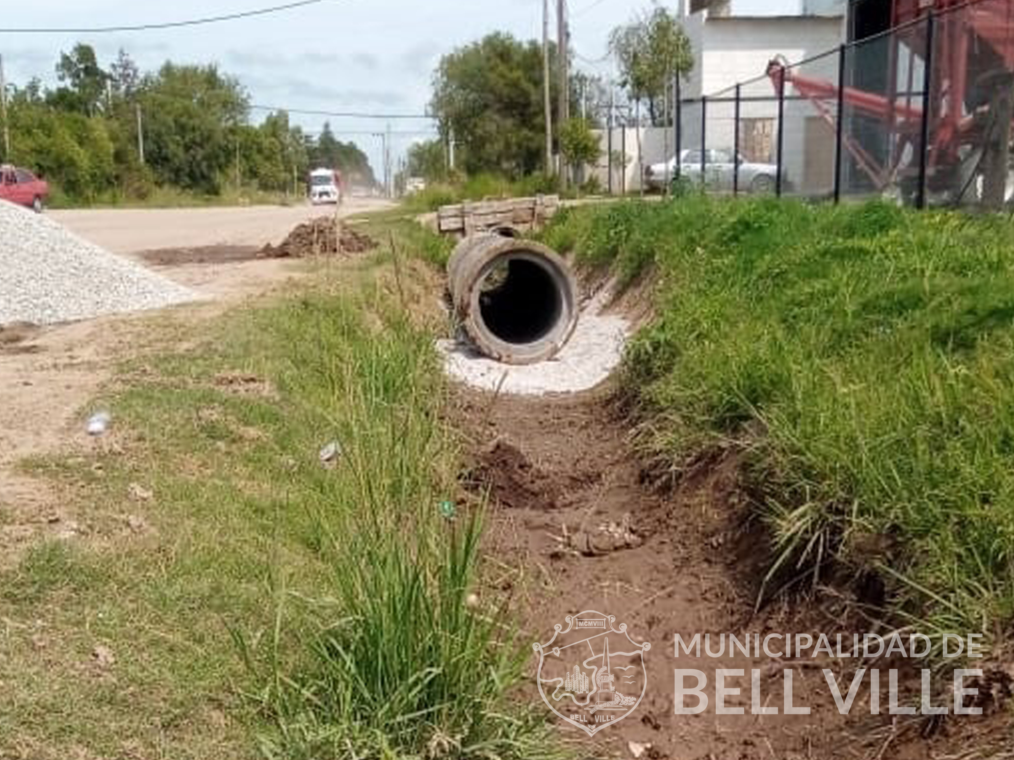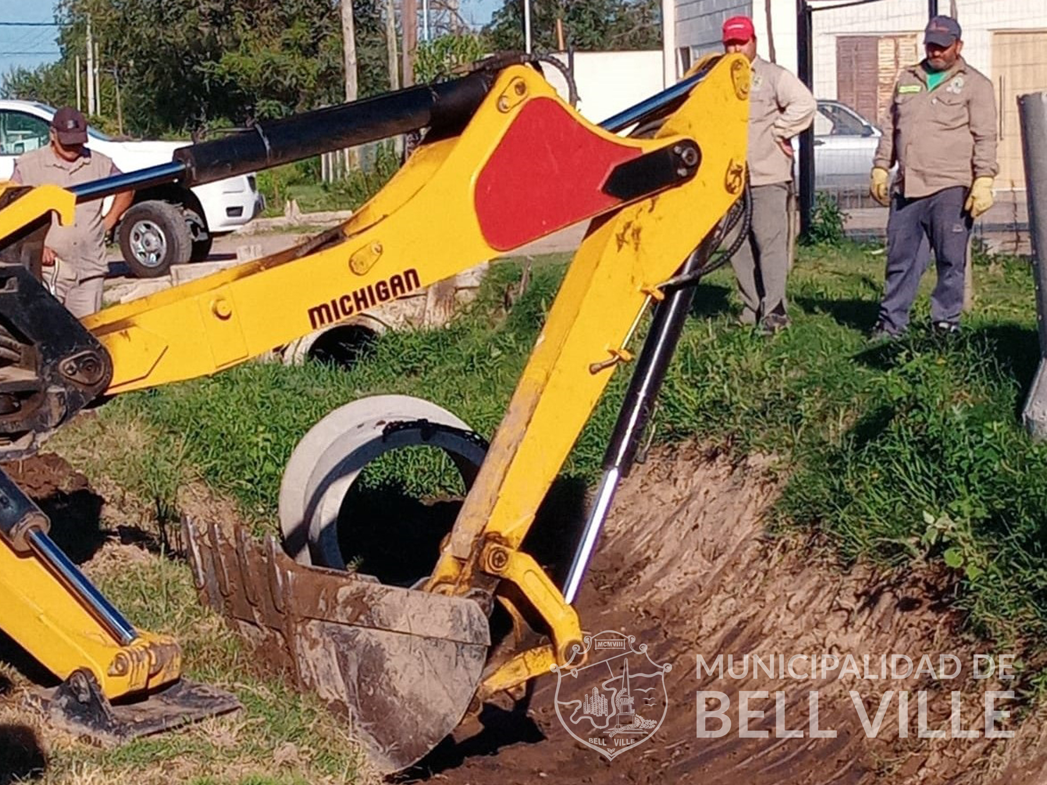 Mediante el aporte de los tubos correspondientes por parte de un vecino, el municipio aportó el resto del material empleado, mano de obra y maquinaria para instalar un sistema de alcantarillado en el canal de desagüe paralelo al bulevar Unión.