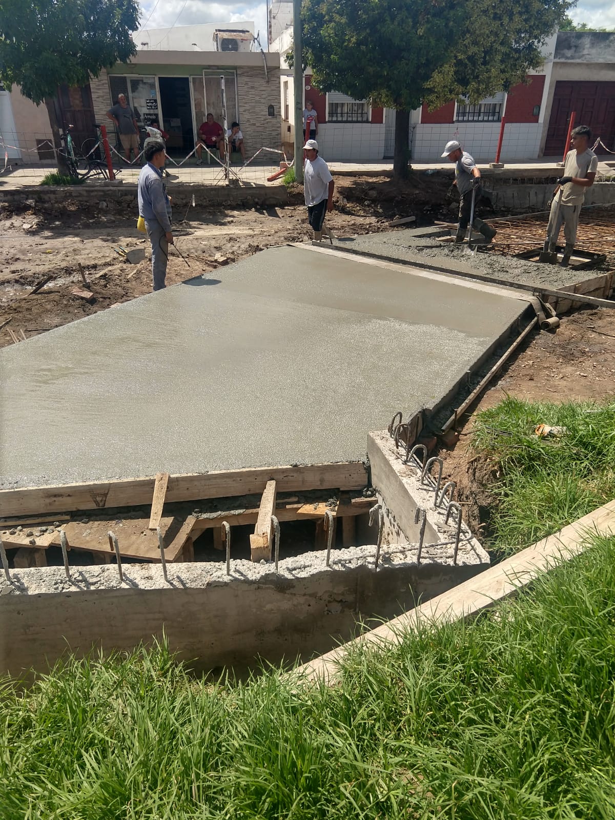 La empresa a cargo de su construcción comenzó el hormigonado de la parte superior de los canales de desagües que se están construyendo en el sector de unión de los bulevares Alcorta, Illia y Maipú.