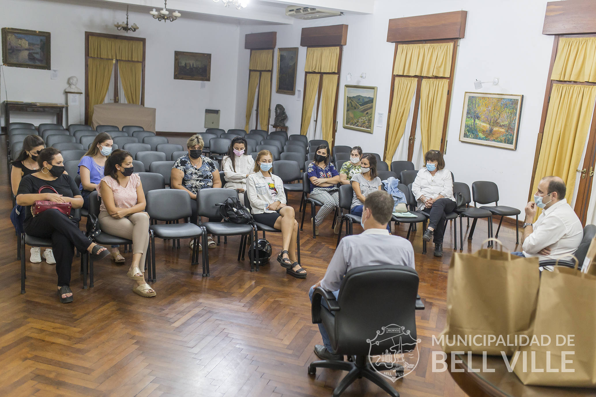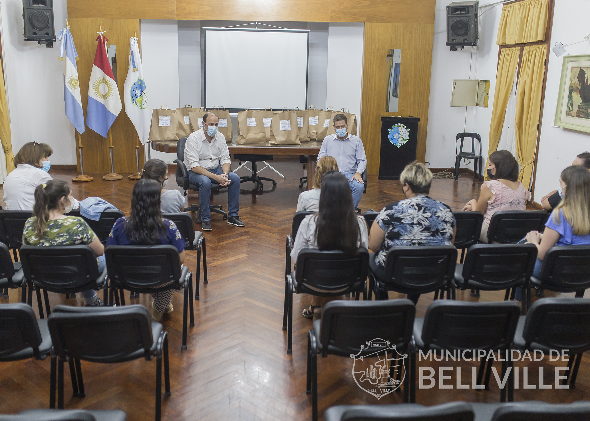 En el salón Walter de Navazio, los once docentes responsables de las clases de apoyo escolar del Programa Núcleos Barriales, recibieron el material necesario a utilizar con alumnos de los niveles Primario y Secundario, que gratuitamente ofrece la Municipalidad, en trabajo coordinado con los centros educativos.