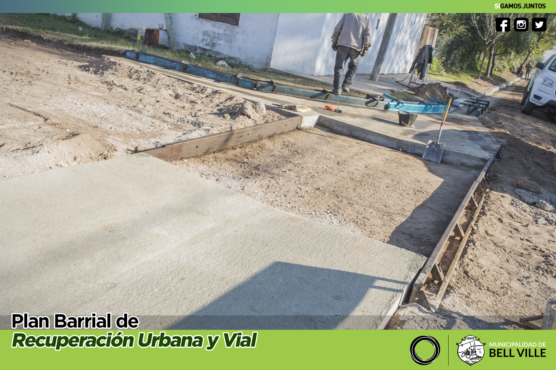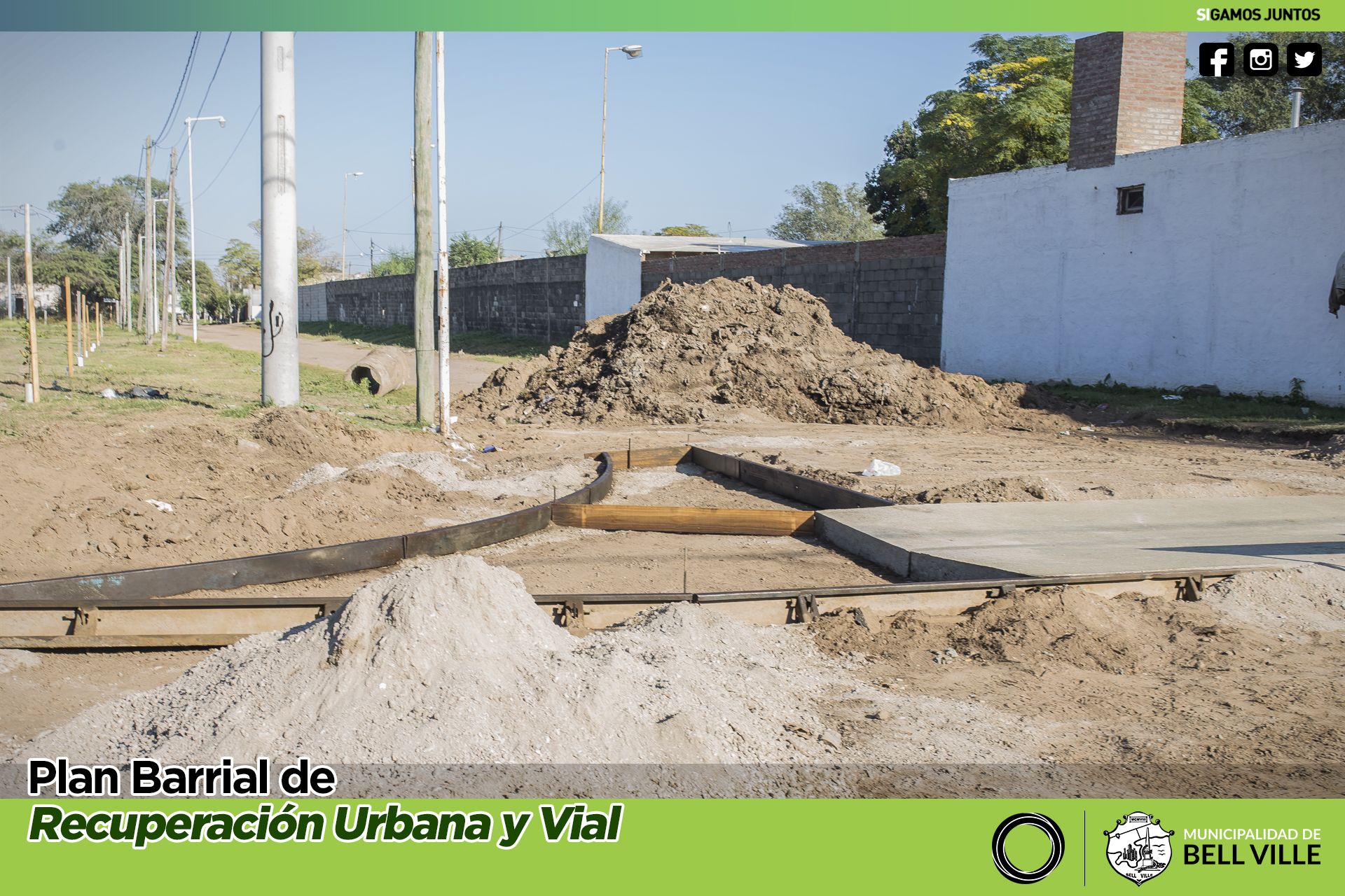 Continua el nivelado y rellenado con hormigón de los moldes correspondientes a la obra de cordón cuneta en calle Urquiza.