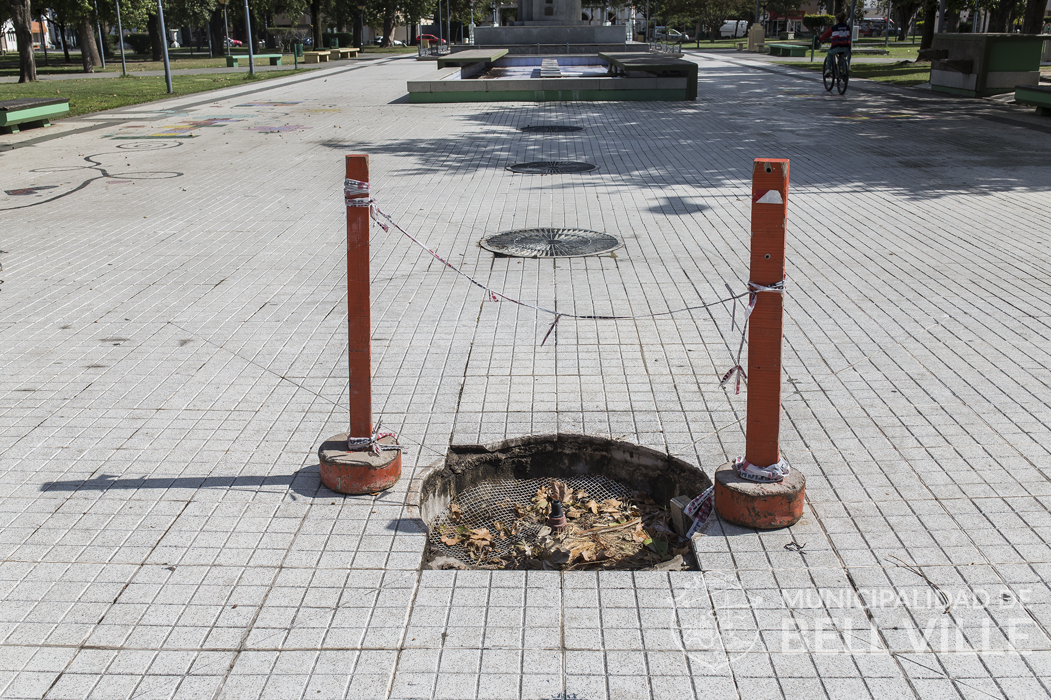 De igual manera, en la Plaza 25 de Mayo sustrajeron una reja redonda de gran peso de un metro de diámetro.