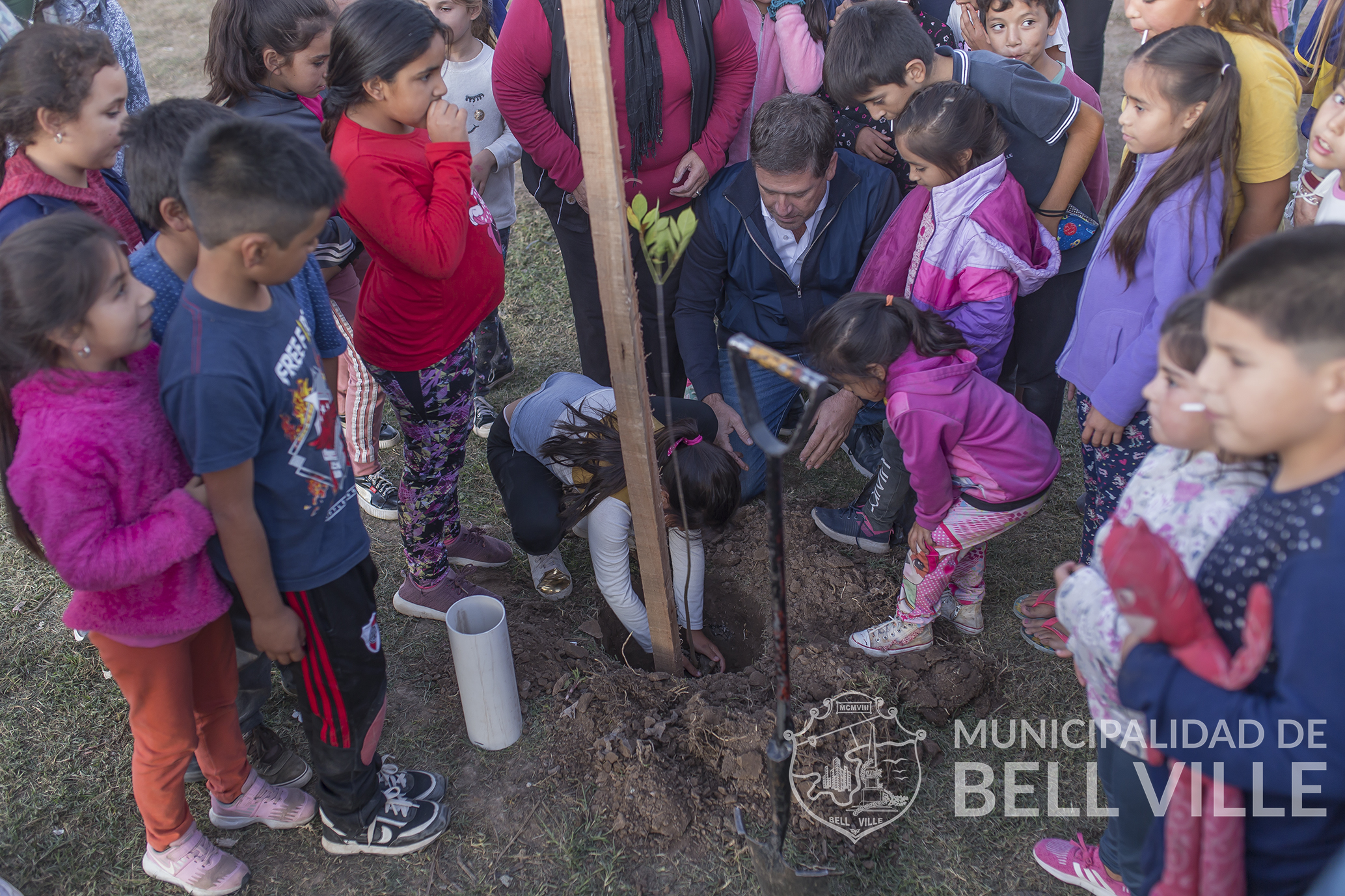 En el transcurso de la presentación, el intendente junto a niños y vecinos plantaron dos árboles del Vivero Municipal con el propósito de alentar la reforestación del espacio y el cuidado de los árboles.