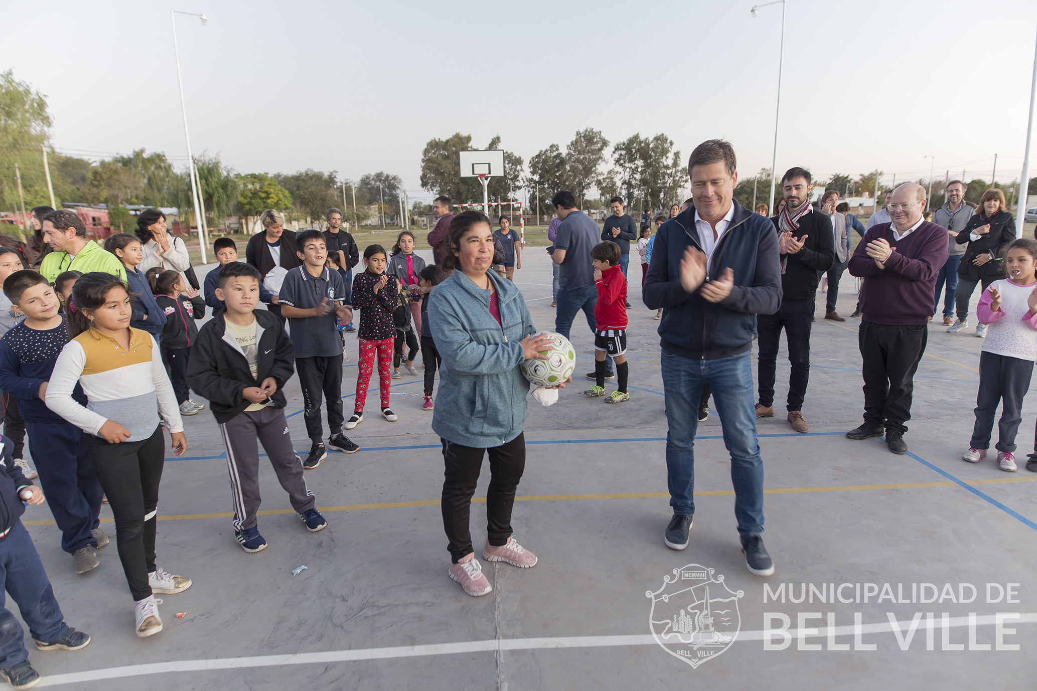 Tras el corte de cintas, el jefe municipal, ayudado por los pequeños de los Núcleos Barriales dieron el puntapié inicial, marcando el inicio del estreno de ese espacio pensado para los vecinos.