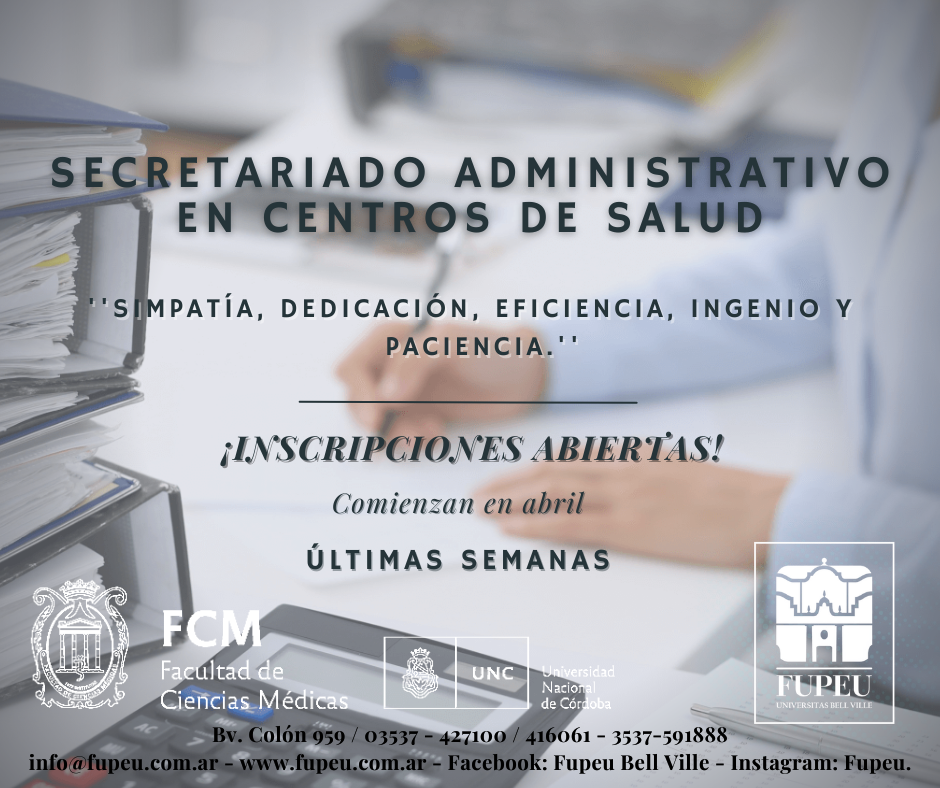 Por otra parte, recuerda que aún hay cupos disponibles para sumarse a los cursos de la Facultad de Ciencias Médicas de la Universidad Nacional de Córdoba, en los siguientes rubros: Acompañante Terapéutico, Secretariado Administrativo en Centros de Salud y Oratoria con Herramientas de Coaching.