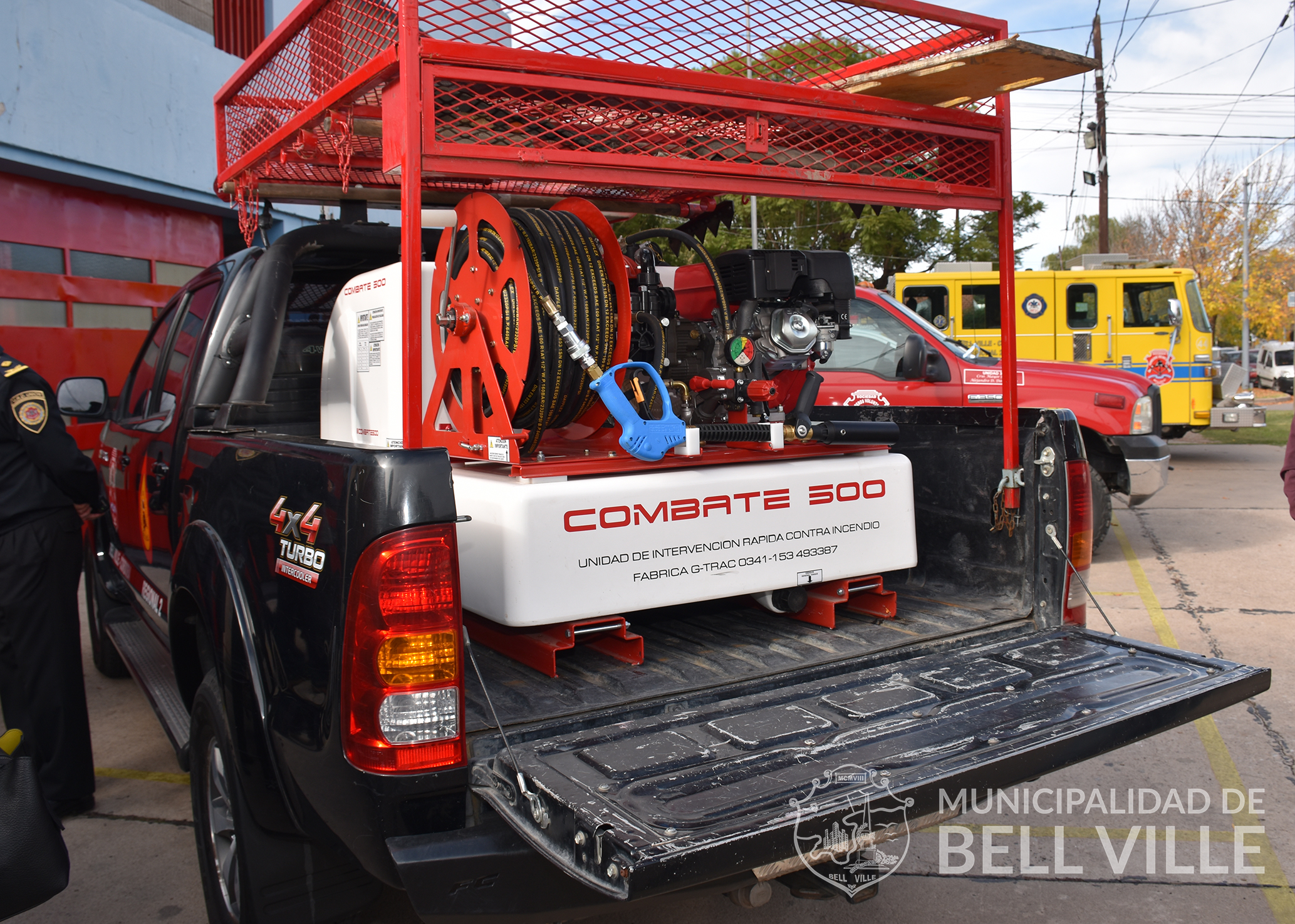 Se trata de un kit forestal de ataque rápido con una capacidad de 500 litros de agua, una bomba de alta presión y dosificador de espuma montado ya en una camioneta del cuartel local; cascos, mochilas (con una capacidad de 20 litros cada una), linternas y antiparras para intervenciones en incendios forestales y ataques rápidos.