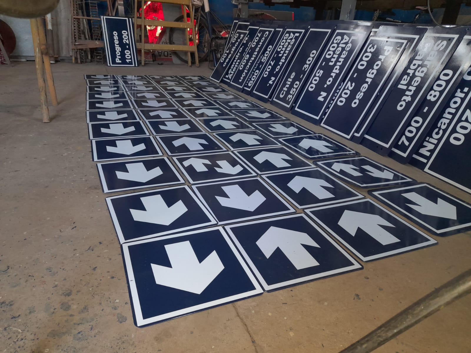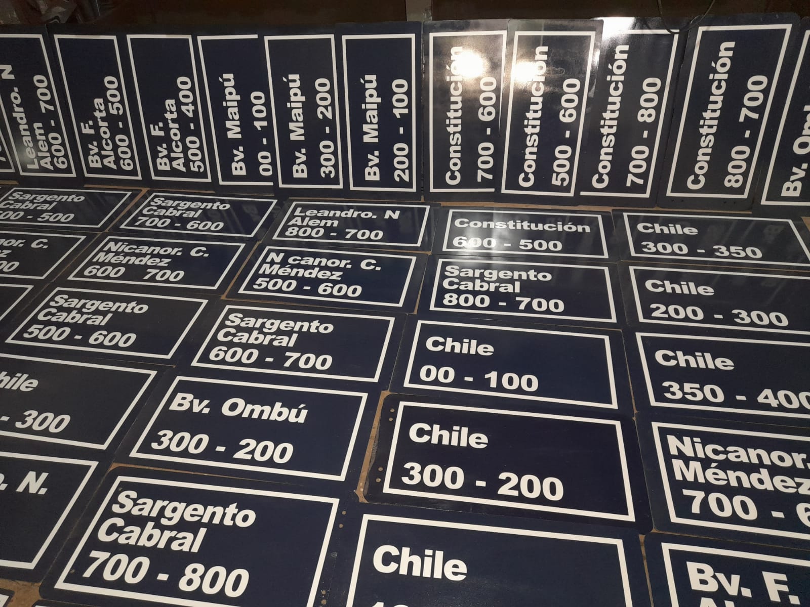El pintado de los postes metálicos y las pantallas que poseen la citada información, son confeccionadas por el mismo Taller Vial del municipio.