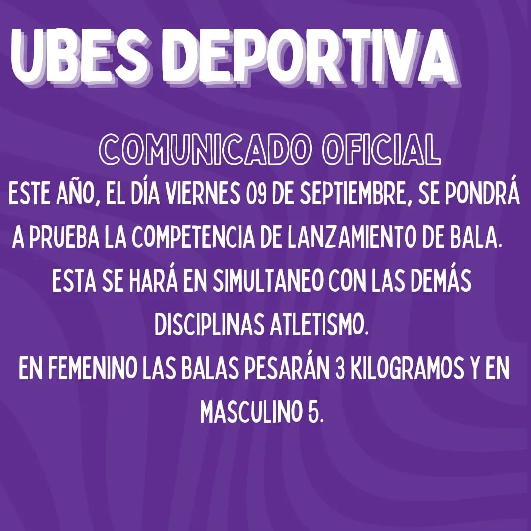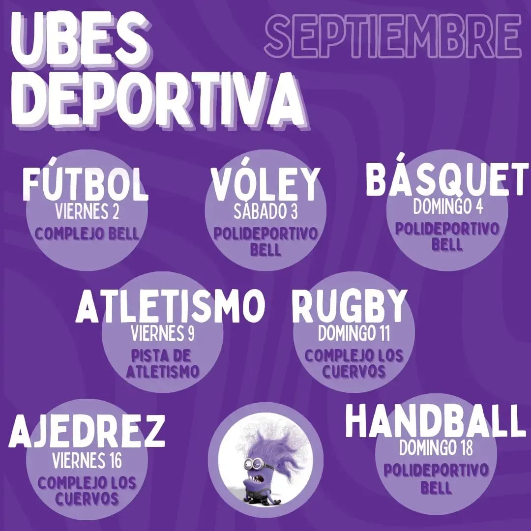 En tanto, la UBES Deportiva se disputará entre el viernes 2 y el domingo 18 en distintos lugares según la disciplina: Club Bell, Pista de Atletismo y Los Cuervos Rugby Club.