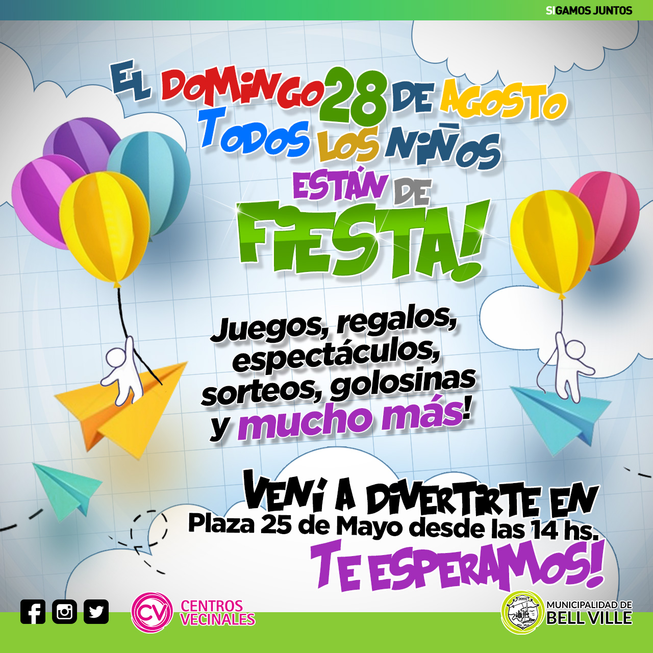 En conferencia de prensa, las responsables de las áreas de Centros Vecinales y Núcleos Barriales Culturales, Melva Sartor y Josefina Garrone, respectivamente, anunciaron que el próximo domingo 28 de agosto en la plaza 25 de Mayo, desde las 14:00, la niñez bellvillense tendrá su fiesta con entrada libre y gratuita.