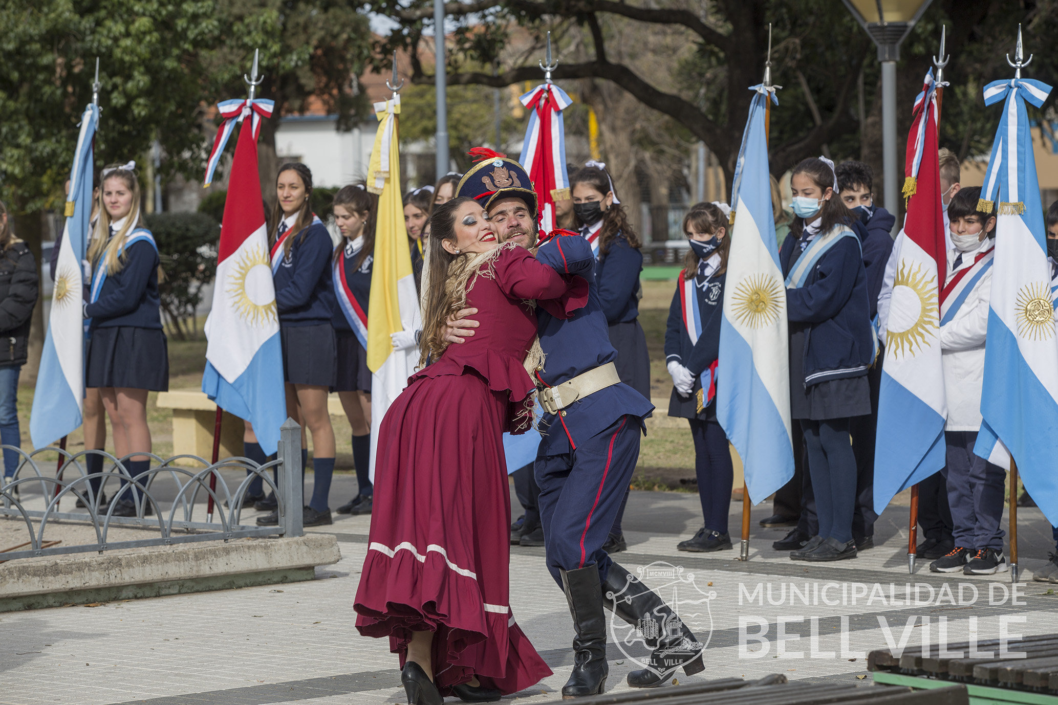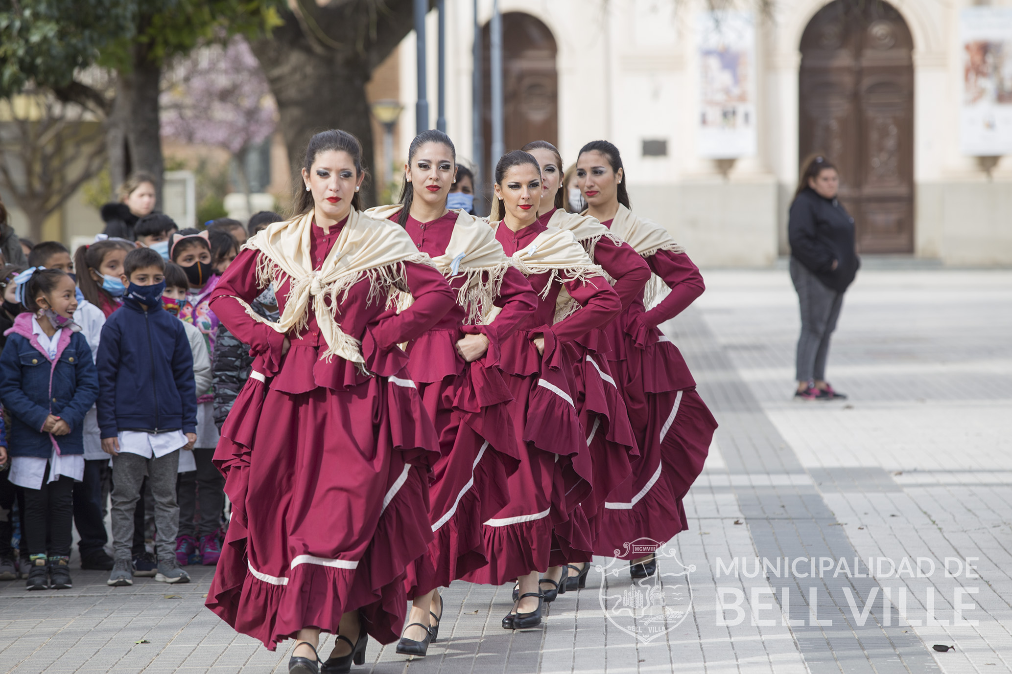 En los números artísticos alegóricos, se pudo apreciar una presentación de integrantes de la Escuela de Danzas Nativas y Ballet Pampa y Senda, quienes bajo la dirección de Adriana Brunori y Abel Cerrutti, revivieron parte del muy aplaudido espectáculo denominado “Independencia”, en el cuadro alusivo al Gral. Don José de San Martín.