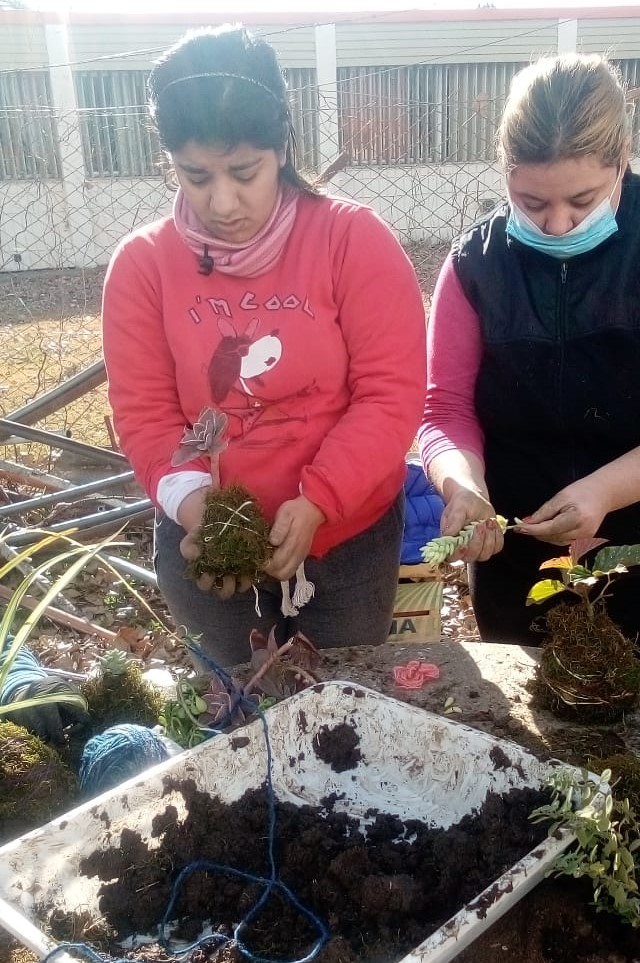 En los encuentros se van desarrollando conocimientos sobre plantación y conservación de diversas especies, como así también los métodos para elaborar kokedamas y masetas con material reciclado.