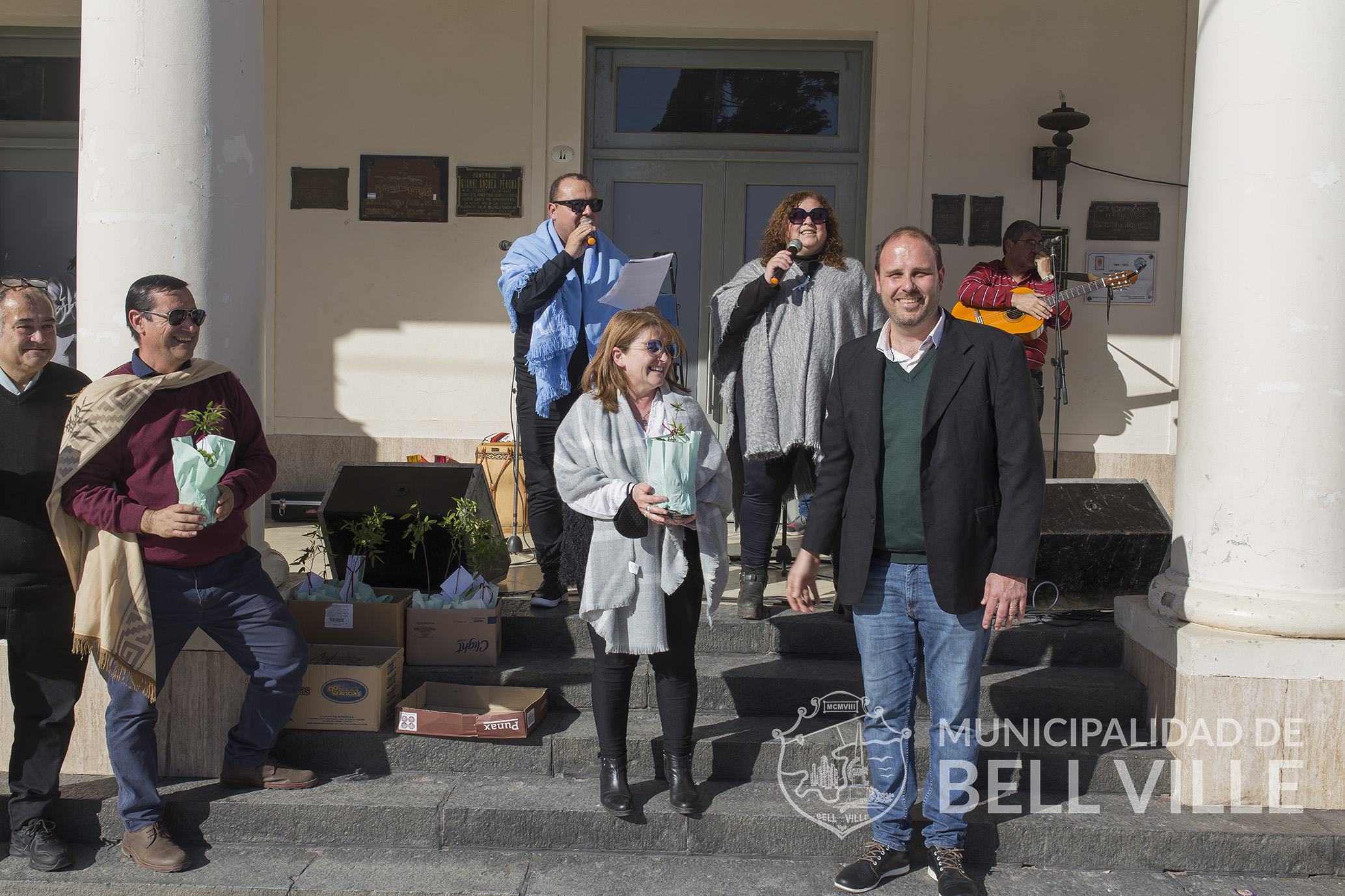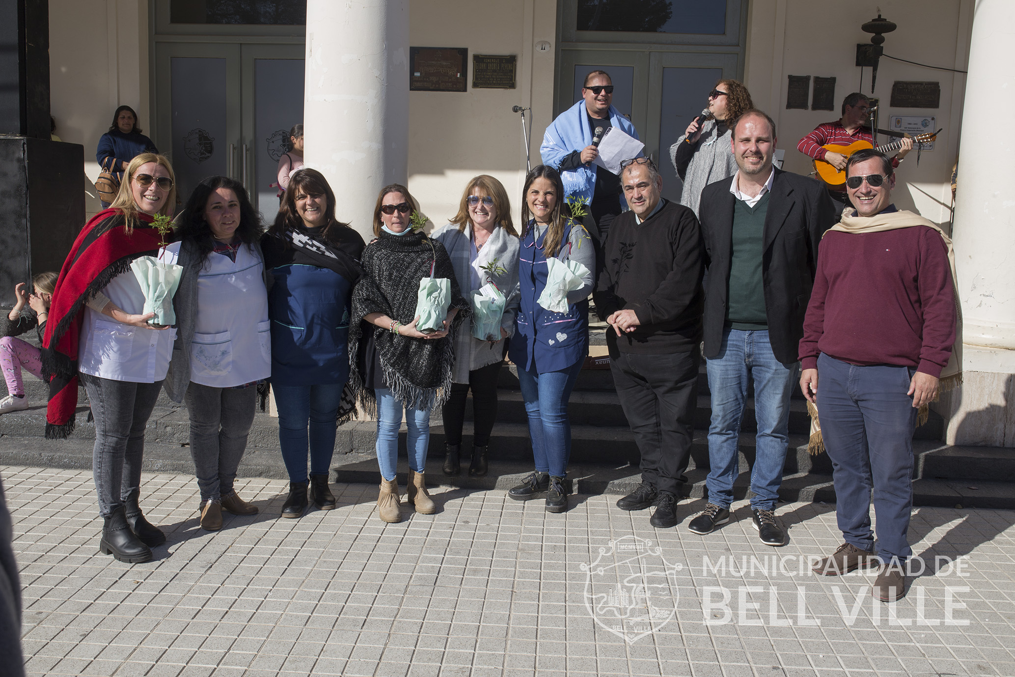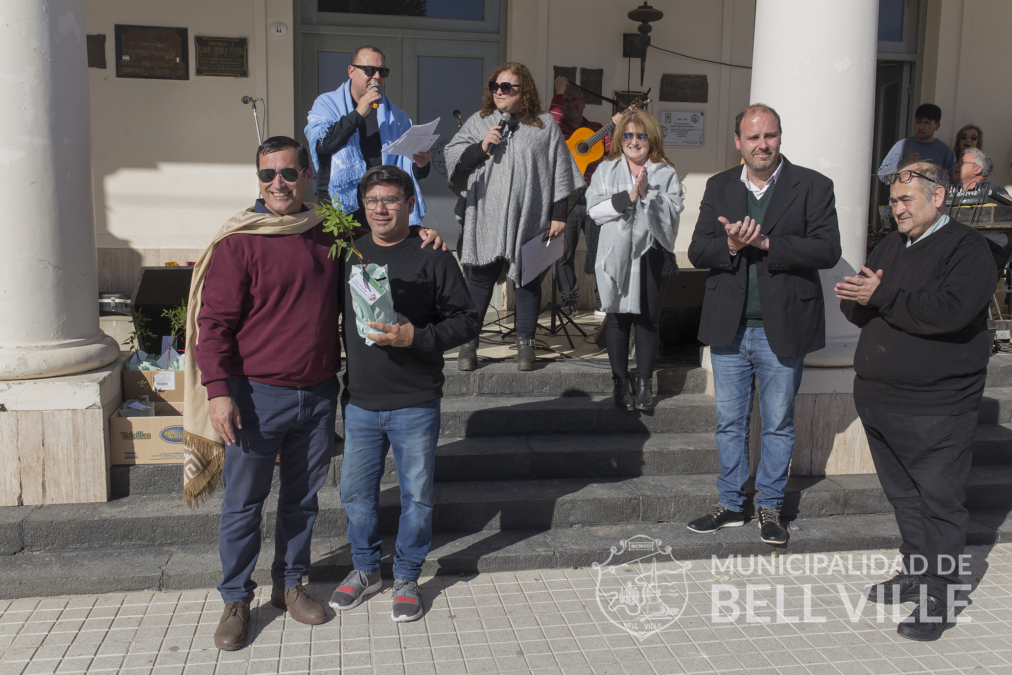 El desfile concluyó frente al edificio municipal donde se cumplió el acto alusivo, el que fue encabezado por autoridades municipales, representadas por el secretario de Coordinación de Gabinete Ernesto Borrageros y la titular de Educación y Cultura, Susana Bichsel, los directivos del Centro Superior Polivalente de Arte “Martín Malharro”, directora Fabiana Villalba y el vicedirector, Mauro Antuña, quienes entregaron como presente a cada una de las instituciones mencionadas, un ejemplar de Sen del Campo, provisto por el Vivero Municipal “Margarita Malharro de Torres”.