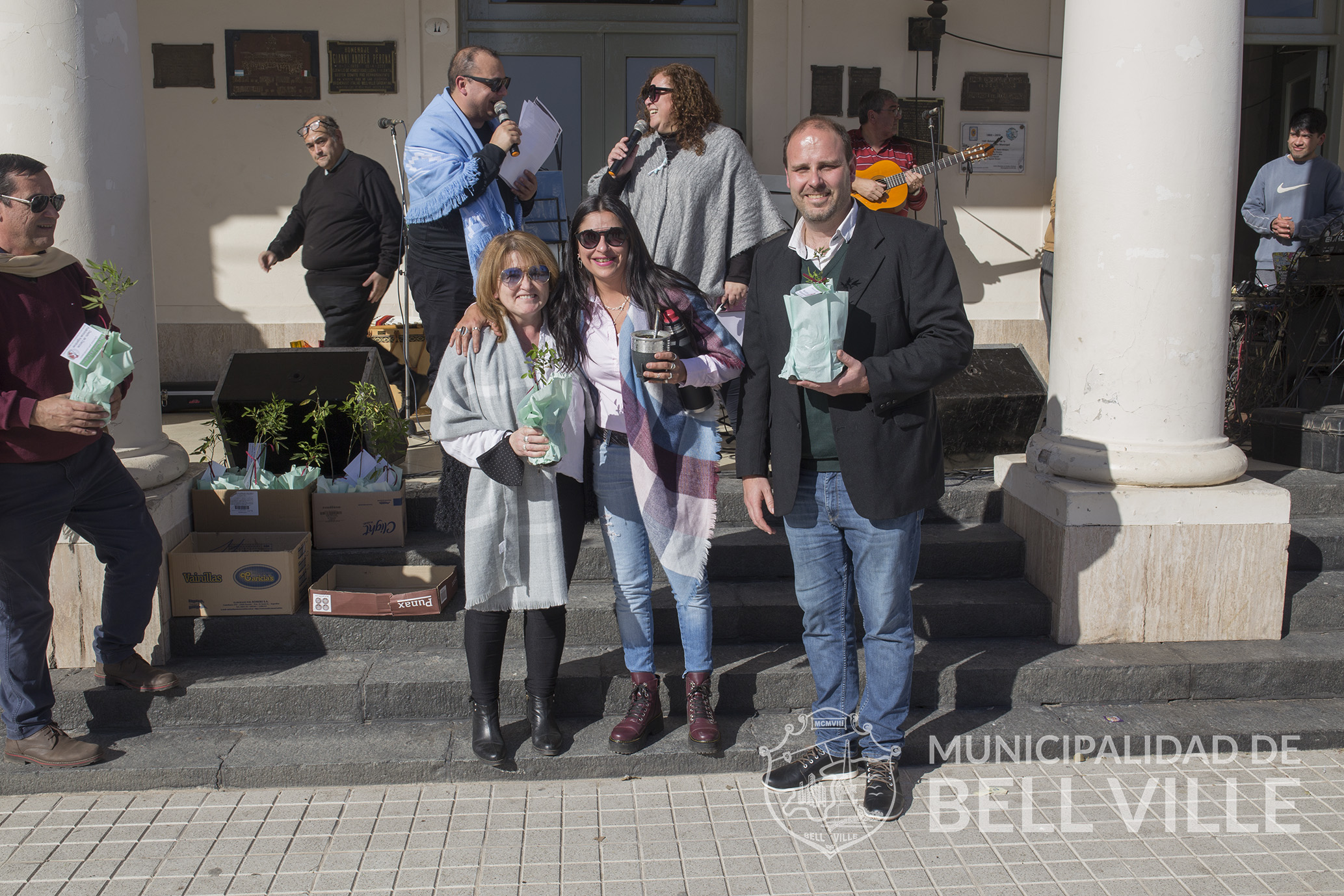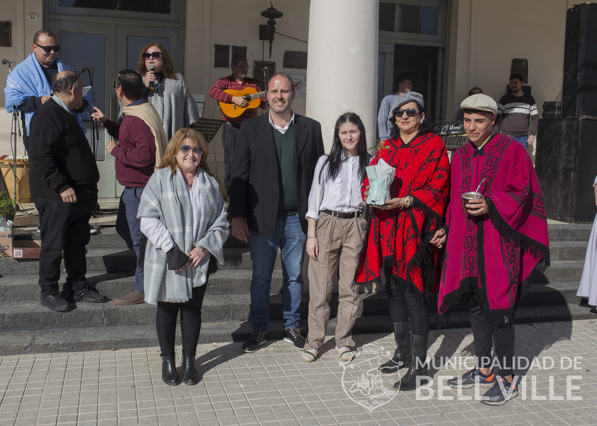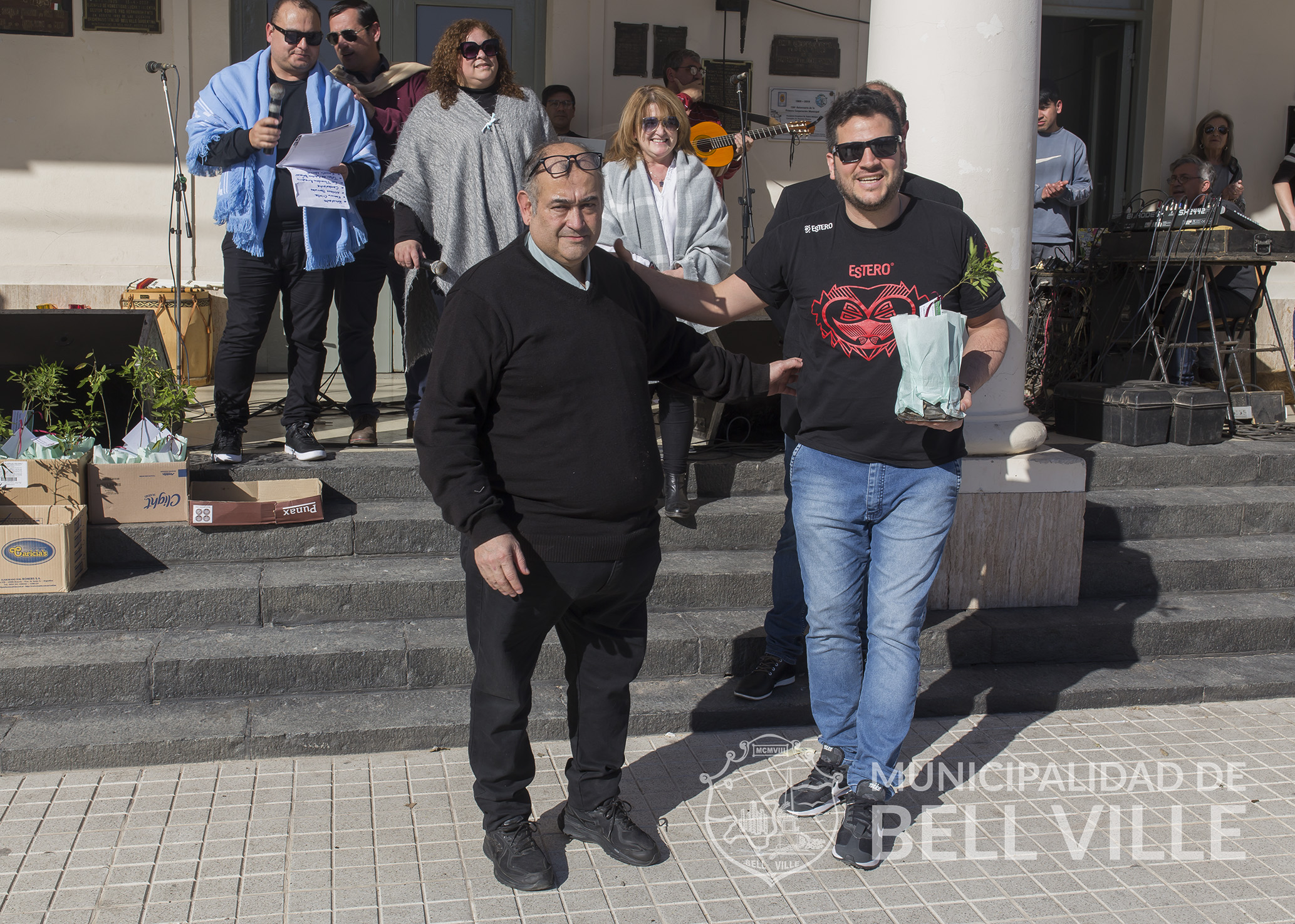 El desfile concluyó frente al edificio municipal donde se cumplió el acto alusivo, el que fue encabezado por autoridades municipales, representadas por el secretario de Coordinación de Gabinete Ernesto Borrageros y la titular de Educación y Cultura, Susana Bichsel, los directivos del Centro Superior Polivalente de Arte “Martín Malharro”, directora Fabiana Villalba y el vicedirector, Mauro Antuña, quienes entregaron como presente a cada una de las instituciones mencionadas, un ejemplar de Sen del Campo, provisto por el Vivero Municipal “Margarita Malharro de Torres”.
