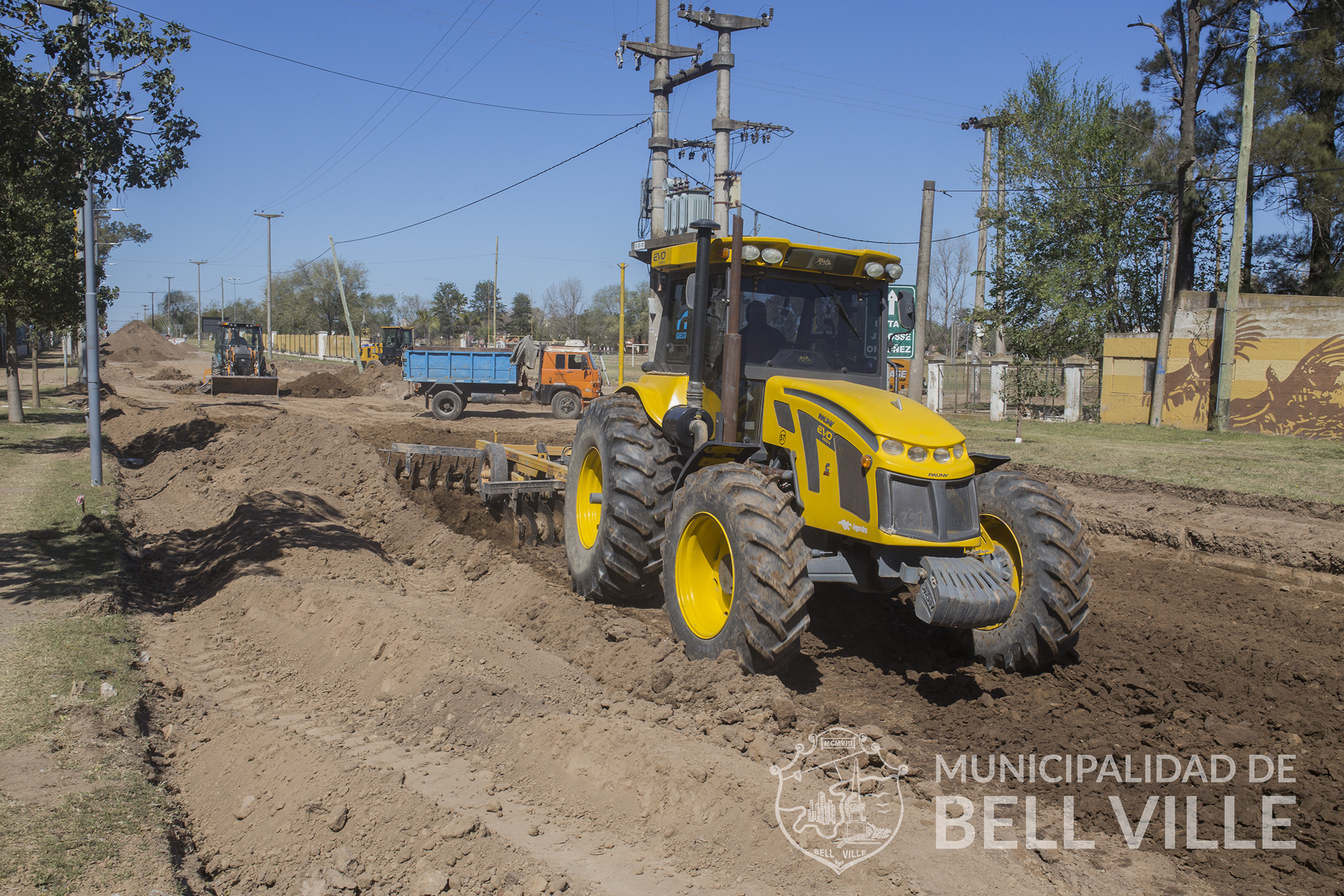 Ahora se trabaja sobre el bulevar Ascasubi, más específicamente en la sub base donde se construirá la rotonda. Se produce con maquinarias el movimiento de suelos para luego cumplir una intervención similar a la calle Ortiz Herrera.