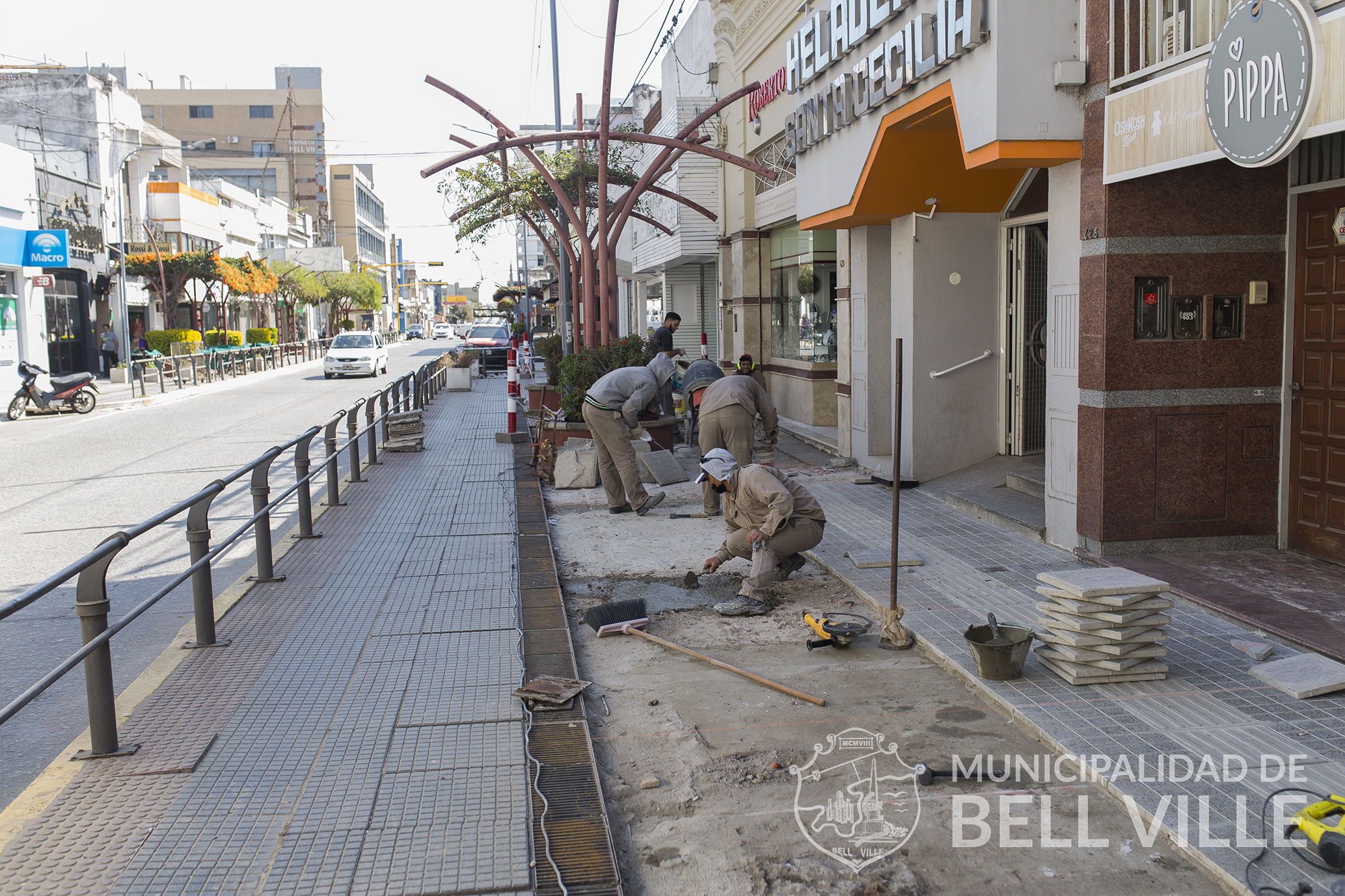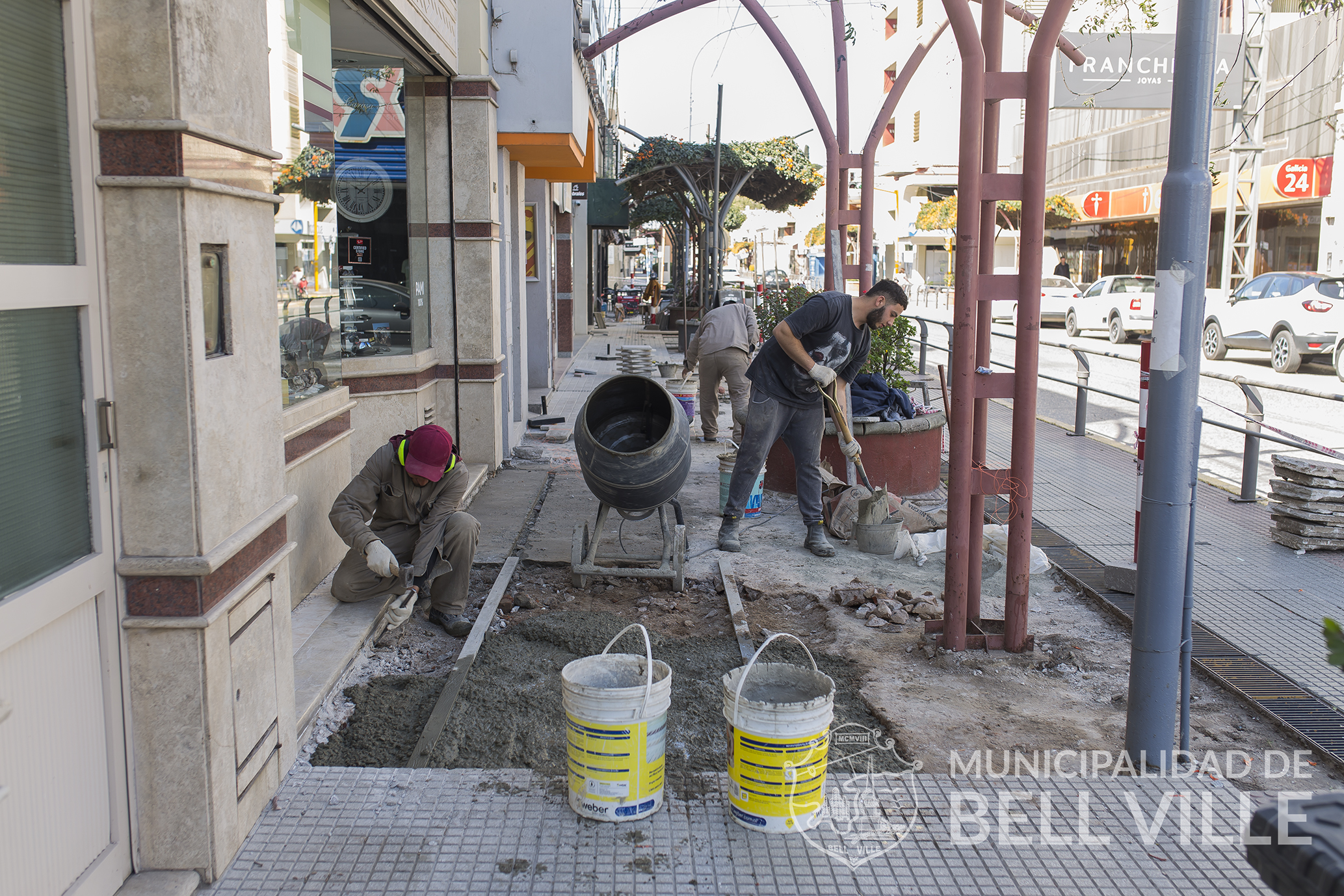 Se estima que los trabajos que se realizan sobre las veredas de calle Córdoba, Entre San Martín-Sáenz Peña y Rivadavia-Sarmiento, en el marco del Centro Comercial a Cielo Abierto, tiene un avance de obra del 30%.