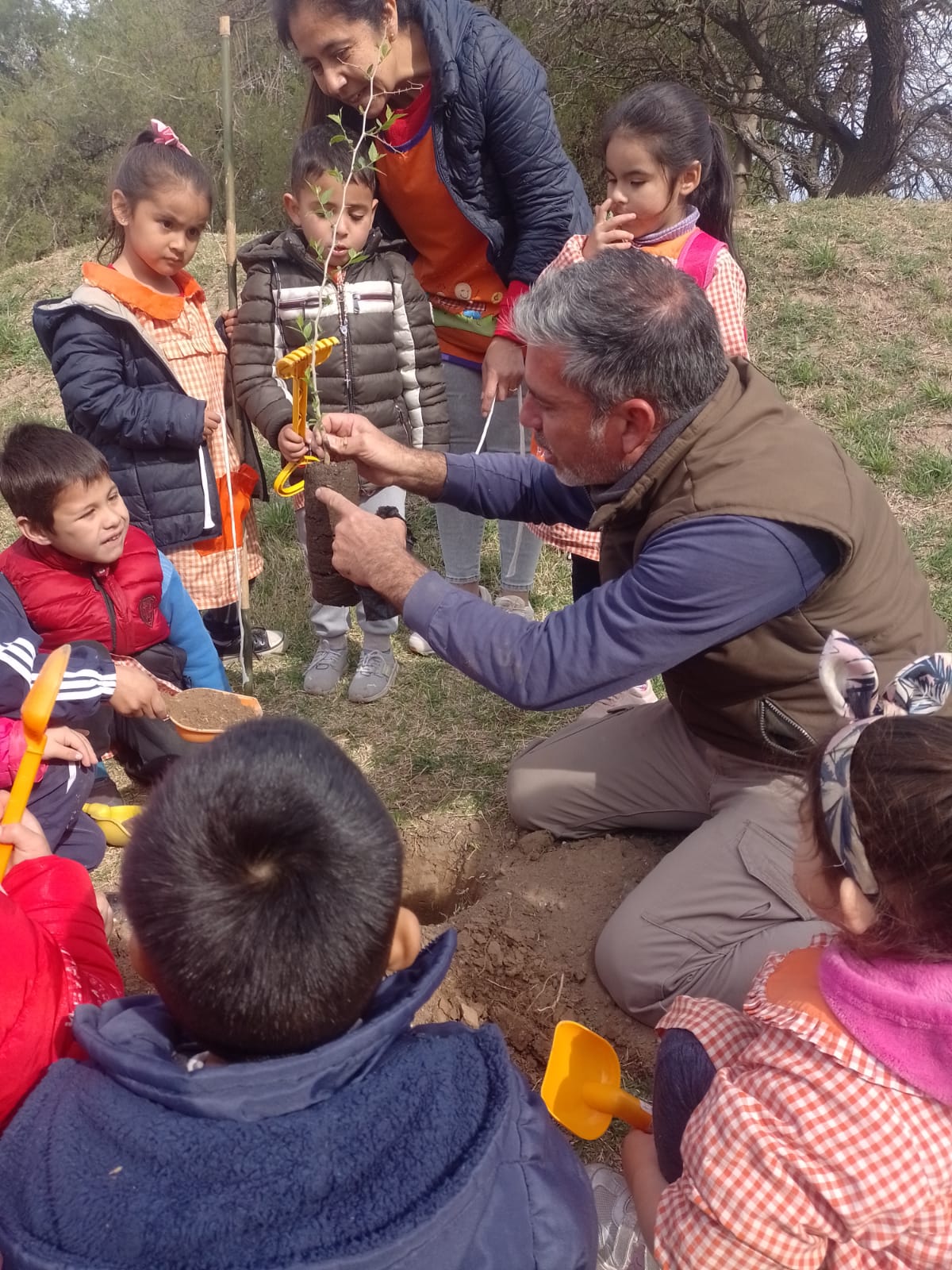 Con la intervención de la salita de 4 años del Jardín de Infantes “Ponciano Vivanco”, pusieron en marcha el programa interinstitucional organizado por la Municipalidad, EcoAcción y Comisión Ejecutiva de la Reserva Natural Parque Francisco Tau, para reforestar ese espacio verde.