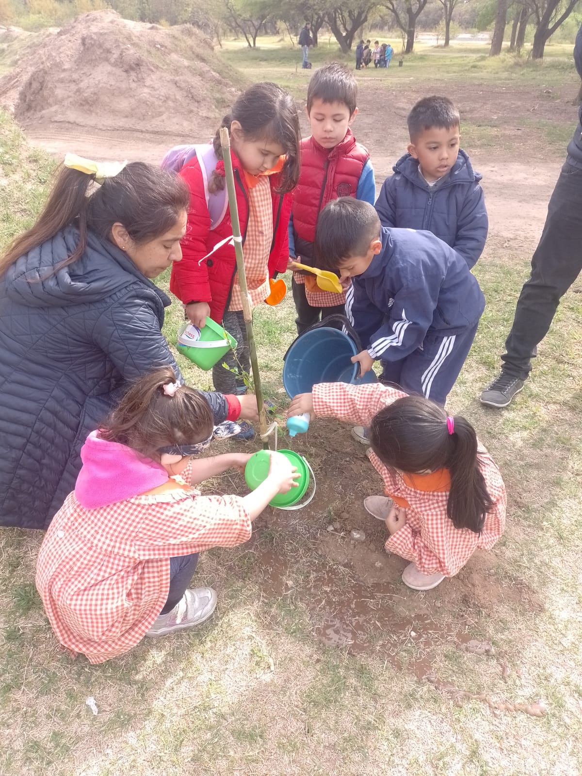 Los jardineritos recibieron una charla didáctica sobre plantación y valiéndose de los juegos de palitas, rastrillos y baldes que traían los niños para la actividad. Las docentes que los acompañaron, también se sumaron a la actividad.