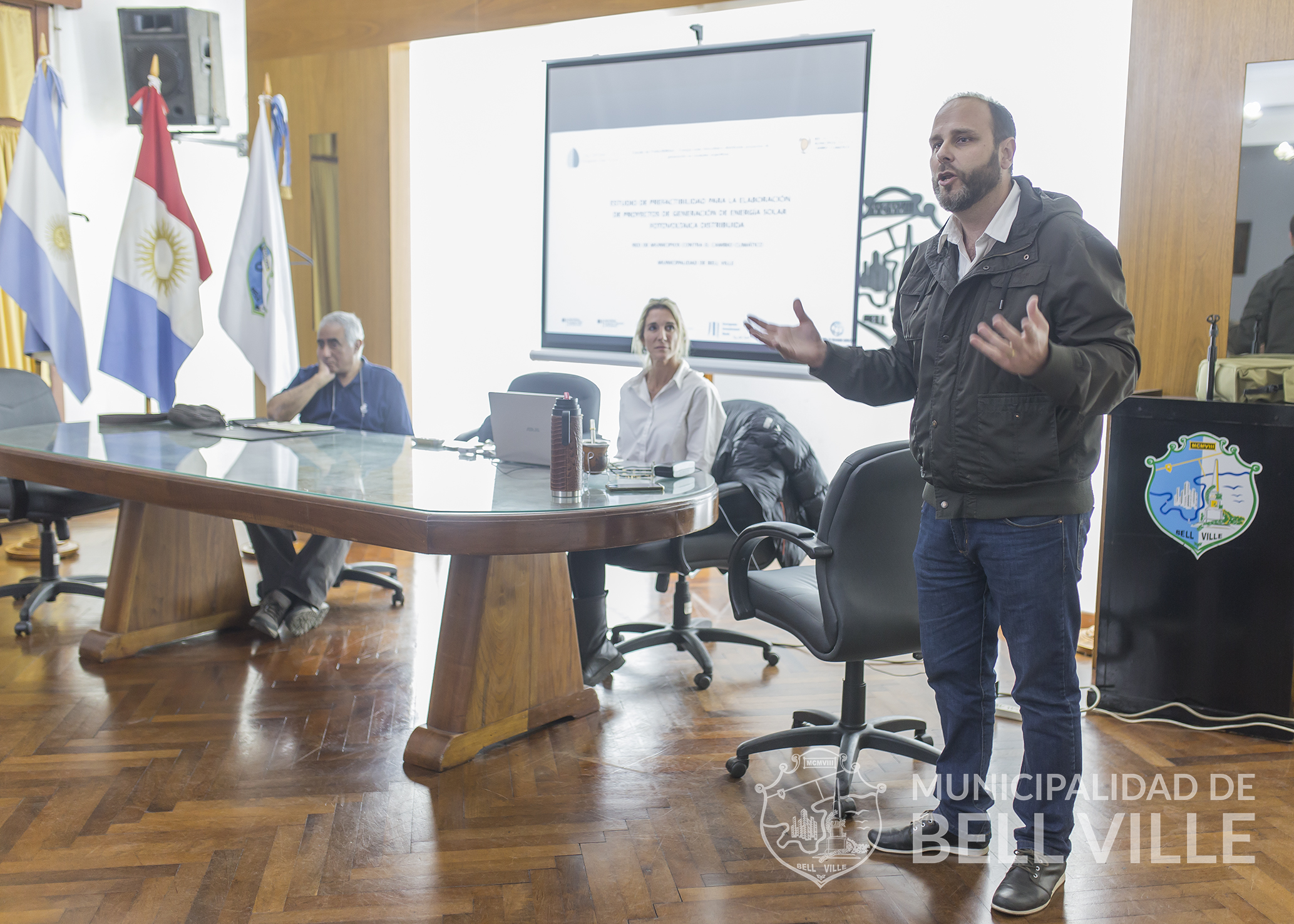 Pertenece a la empresa Franchi & Asociados contratada por la Red Argentina frente al Cambio Climático para este encuentro destinado a los vecinos para informarles sobre los alcances del análisis de pre viabilidad sobre la instalación de un parque solar de generación de energía solar fotovoltaica en nuestra ciudad en el marco del proyecto “Generación de energía solar fotovoltaica en municipios de Argentina” impulsado por la RAMCC a través del fondo global “GAP FOUND” que se implementará con el apoyo del Banco Europeo de Inversiones (BEI) y la Sociedad Alemana para la Cooperación internacional (GIZ).