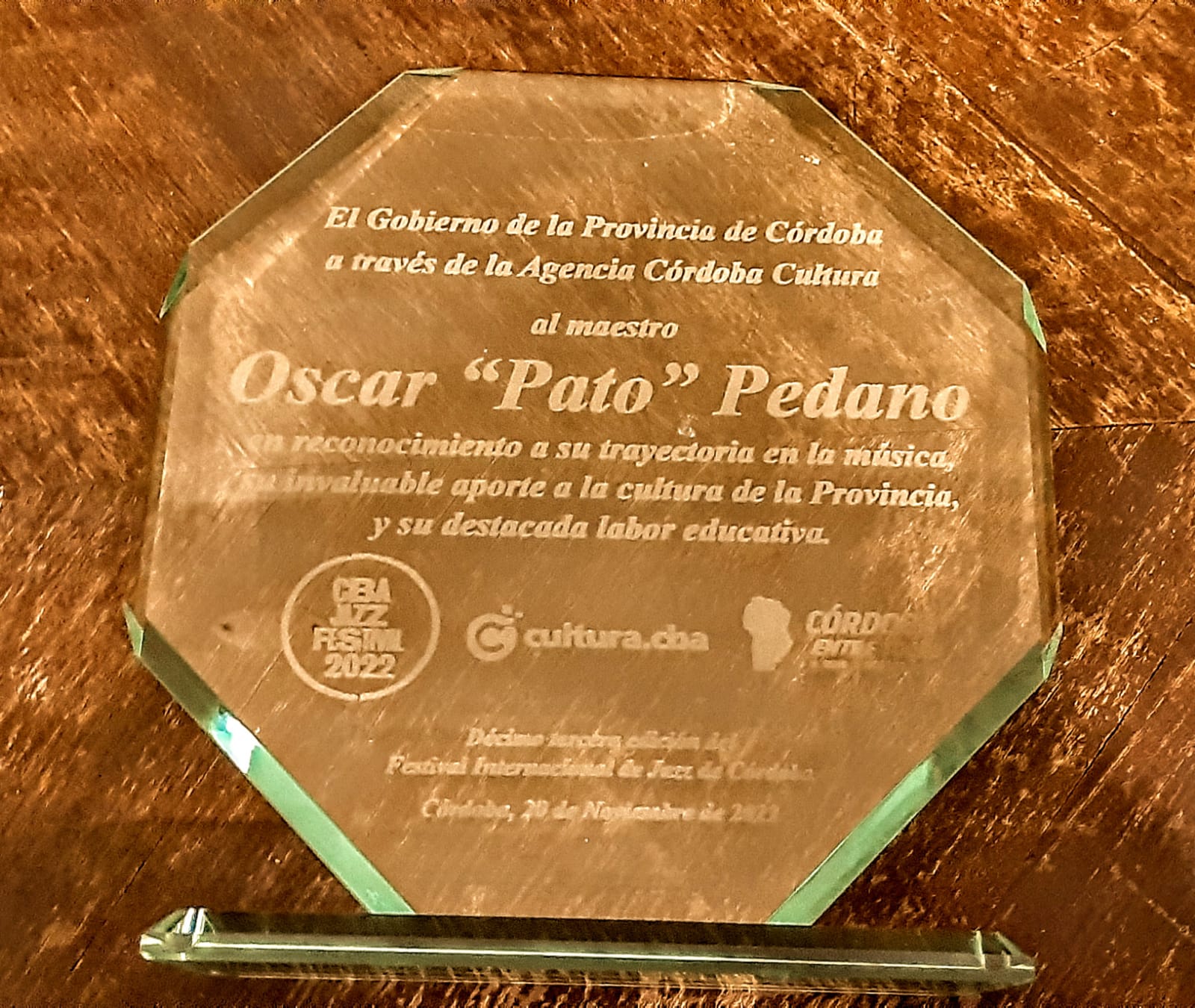 La plaqueta de reconocimiento del Gobierno de Córdoba, Agencia Córdoba Cultura y Córdoba Jazz Festival 2022, destaca “el reconocimiento a su trayectoria en la música, su invaluable aporte a la cultura de la Provincia y su destacada labor educativa”.