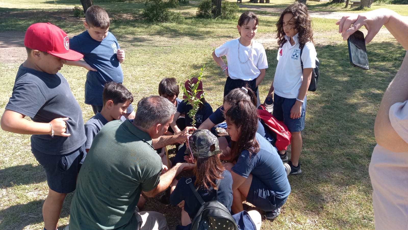 Alrededor de 40 alumnos de 4º Grado de la Escuela Provincia del Neuquén, participaron de la plantación de árboles en un sector de la Reserva Natural del Parque Francisco Tau, ubicado entre calle Cr. Aquino y Vivero Municipal.